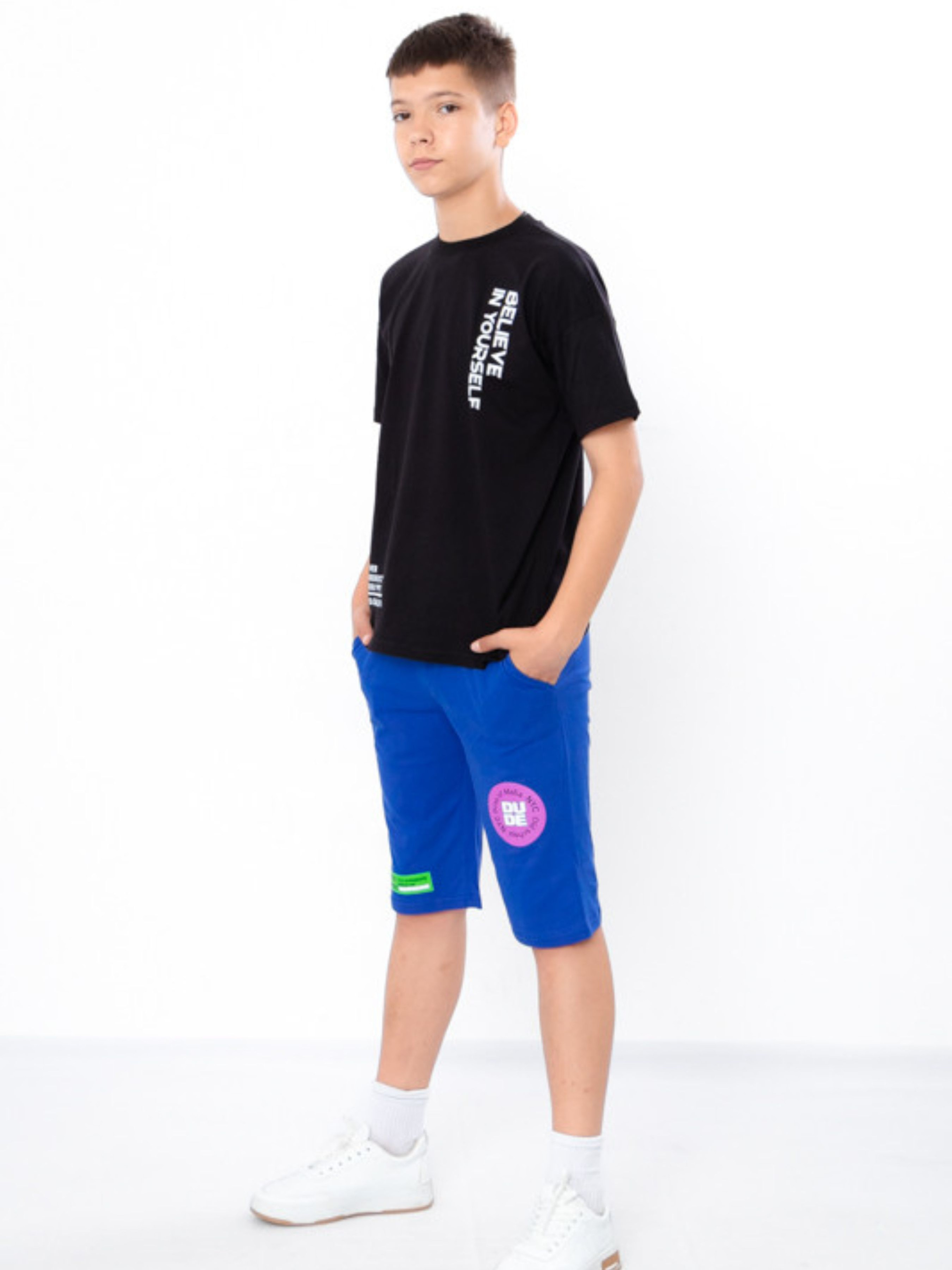 Полотно: кулір однотонний Склад полотна: Хлопок Зріст: 134-170 Представляємо неймовірні бріджи для хлопчика - ідеальний вибір для маленького модника! Ці бріджи зачаровують своїм модним дизайном та високою якістю пошиву. Виготовлені з якісних матеріалів вони забезпечать комфорт та стильний вигляд у будь-якій ситуації. Бріджи - це універсальний варіант для школи святкових заходів та повсякденного використання.