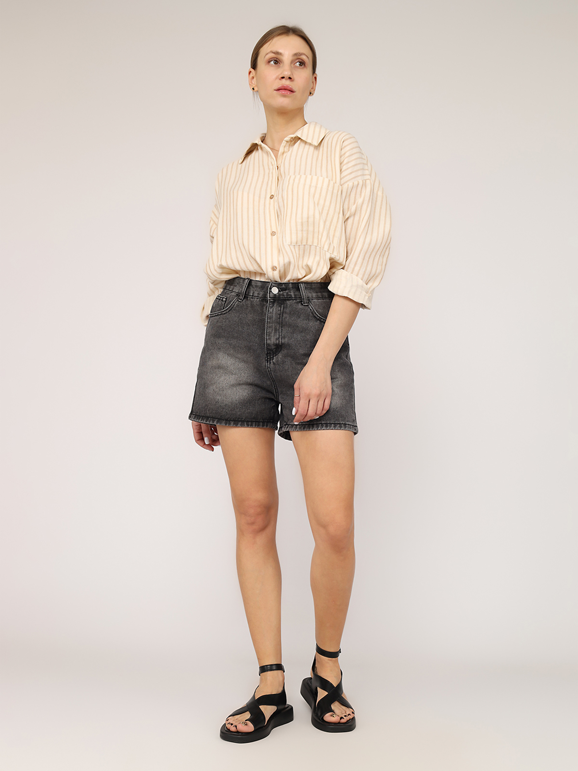 Шорты джинсовые женские - это идеальный выбор для тех, кто ценит комфорт и стиль в повседневной жизни. Благодаря своему непринужденному крою, они подчеркивают естественную красоту и добавляют легкости каждому образу. Этот элемент гардероба станет вашим любимым компаньоном в теплую погоду - от прогулок по городу до отдыха на природе. Джинсовая текстура придает шортам особый шарм, а их универсальность позволяет комбинировать их с легкими топами, рубашками или oversize-футболками. Создайте свой уникальный стиль - от расслабленного casual до трендового уличного образа. Джинсовые шорты - это не просто одежда, а способ выразить свою индивидуальность и почувствовать себя свободно и уверенно в любой ситуации! Особенности изделия: Цвет: серый. Материал изготовления: джинс. Состав: 90% хлопок, 10% полиэстер. Крой: прямой. Сезон: демисезон. Параметры модели: Рост: 170 сантиметров. Размер на модели: 46. Страна производитель: Китай.