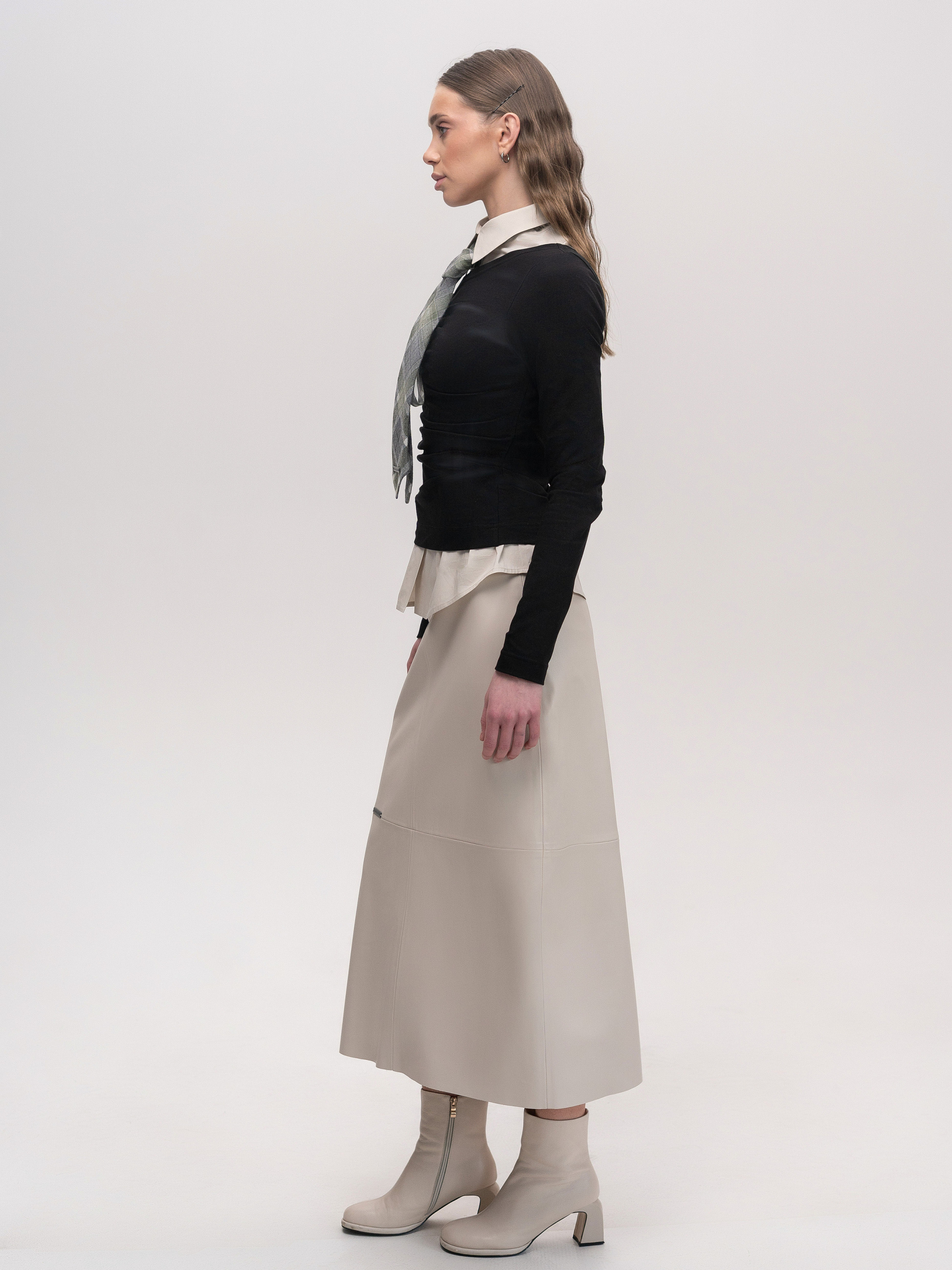 Стильная миди-юбка А-силуэта, изготовленная из мягкой экокожи. Благодаря своему крою она подчеркивает фигуру, обеспечивая комфортную посадку ниже талии, что создает современный и изысканный силуэт. Застежка на молнию сзади, что обеспечивает удобство в носке и придает лаконичность дизайну. Функциональные карманы сзади делают модель практичной и придают акцент на деталях. Эта юбка прекрасно сочетается с рубашками, свитерами и жакетами, позволяя создавать стильные образы как для повседневной носки, так и для особых случаев. Параметры изделия: Длина по спинке: 84 см Рост модели: 175 см, размер XS Сезон: Весна/Лето/Осень Состав: 50% Полиуретан, 50% Полиэстер Уход за изделием: Стирка: • Машинная стирка разрешена. • При необходимости можно протирать мягкой губкой с теплой водой и мягким моющим средством.Сушка: • Не используйте машинную сушку. Глажка: • Гладить только через тонкую ткань или в режиме синтетических материалов. • Избегайте высоких температур, чтобы не повредить материал. Хранение: • Избегать контакта с острыми предметами во избежание царапин на экокожи. • Светлую экокожу не храните рядом с темными изделиями во избежание возможных следов или изменения цвета.