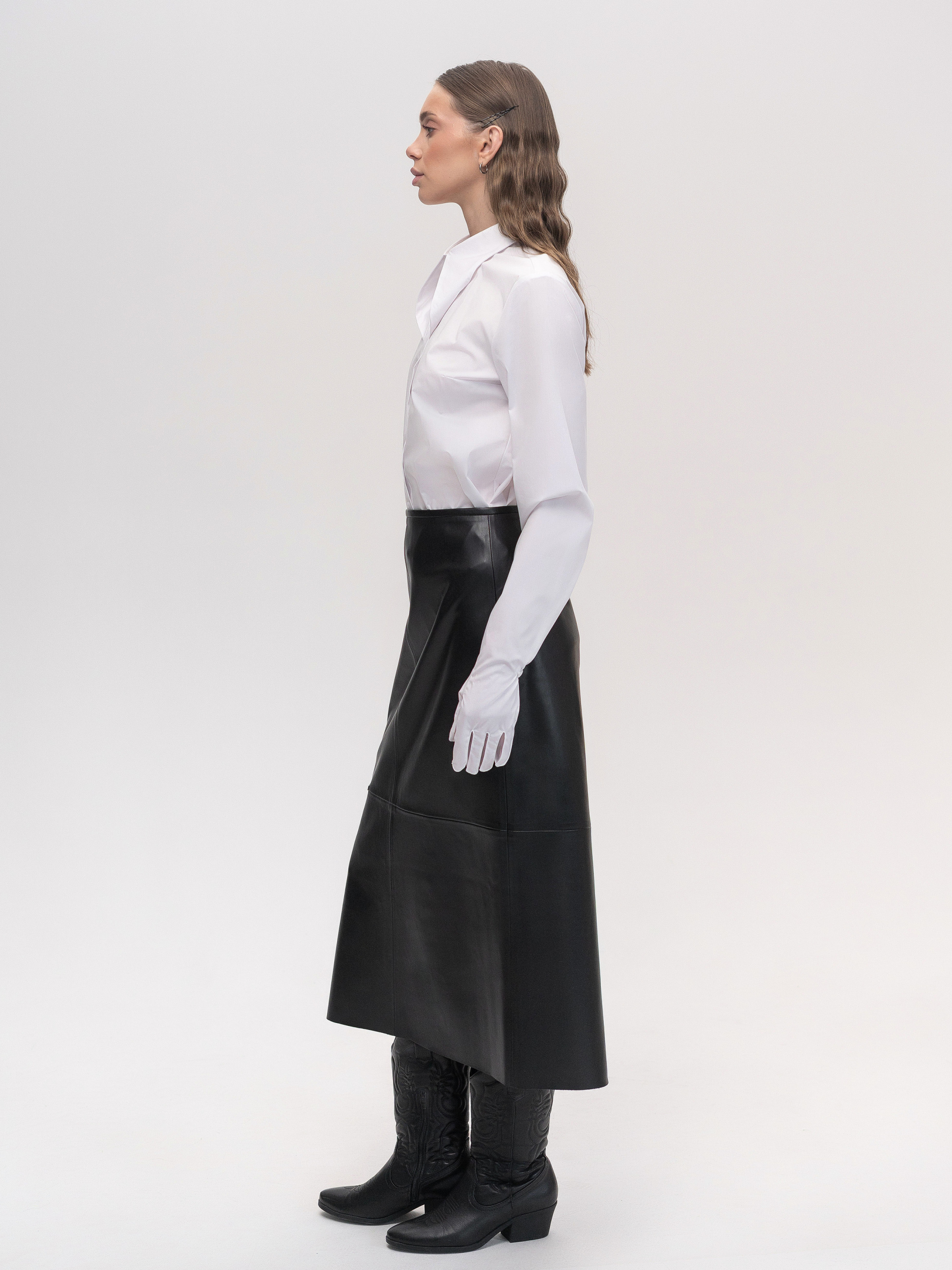 Стильная миди-юбка А-силуэта, изготовленная из мягкой экокожи. Благодаря своему крою она подчеркивает фигуру, обеспечивая комфортную посадку ниже талии, что создает современный и изысканный силуэт. Застежка на молнию сзади, что обеспечивает удобство в носке и придает лаконичность дизайну. Функциональные карманы сзади делают модель практичной и придают акцент на деталях. Эта юбка прекрасно сочетается с рубашками, свитерами и жакетами, позволяя создавать стильные образы как для повседневной носки, так и для особых случаев. Параметры изделия: Длина по спинке: 84 см Рост модели: 175 см, размер XS Сезон: Весна/Лето/Осень Состав: 50% Полиуретан, 50% Полиэстер Уход за изделием: Стирка: • Машинная стирка разрешена. • При необходимости можно протирать мягкой губкой с теплой водой и мягким моющим средством.Сушка: • Не используйте машинную сушку. Глажка: • Гладить только через тонкую ткань или в режиме синтетических материалов. • Избегайте высоких температур, чтобы не повредить материал. Хранение: • Избегать контакта с острыми предметами во избежание царапин на экокожи. • Светлую экокожу не храните рядом с темными изделиями во избежание возможных следов или изменения цвета.