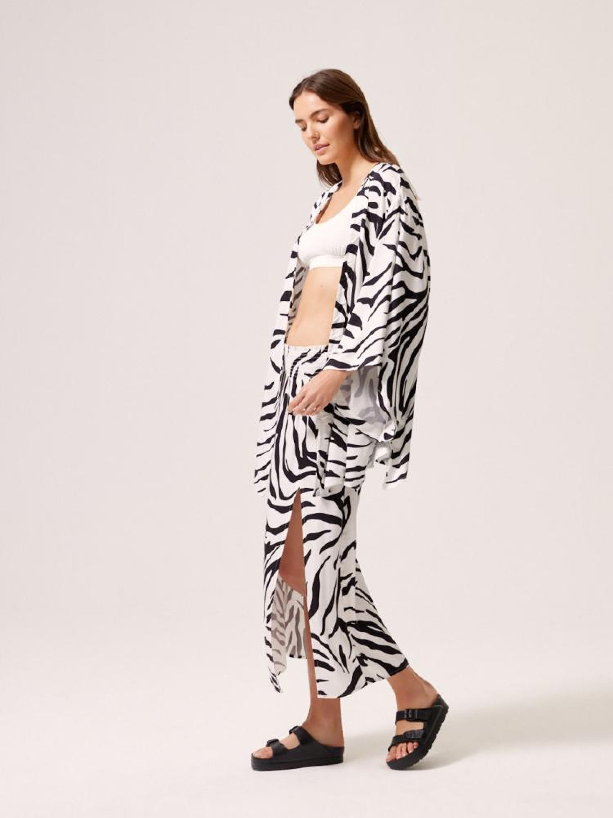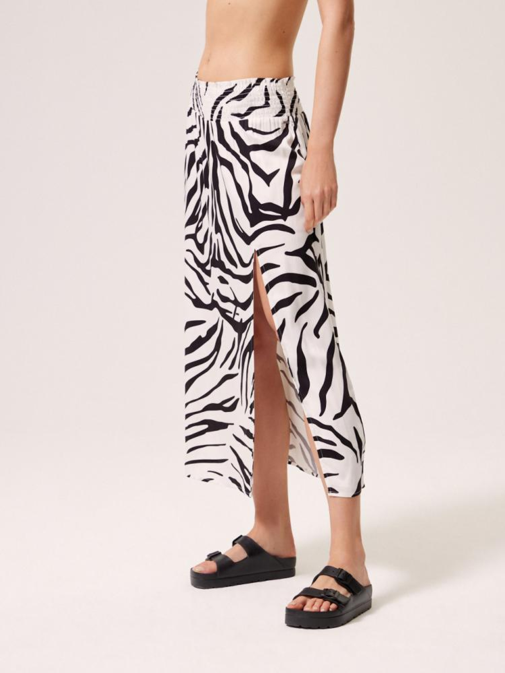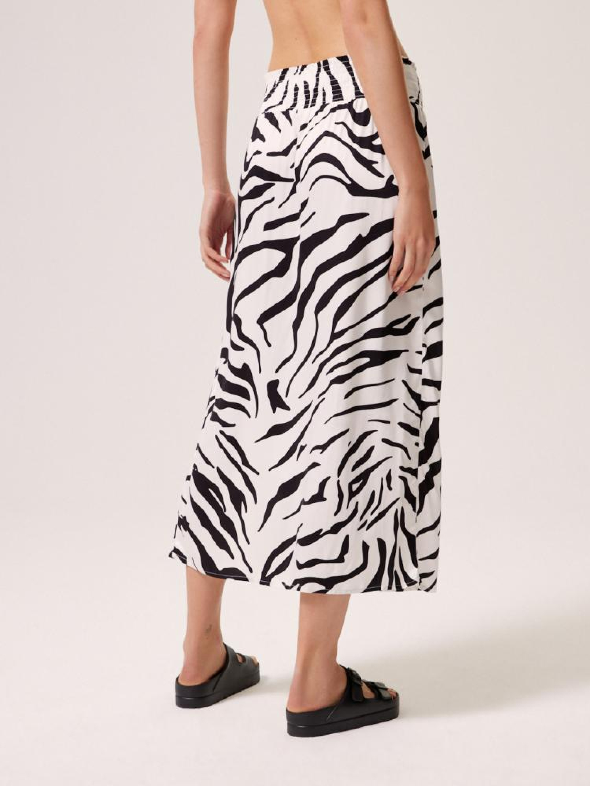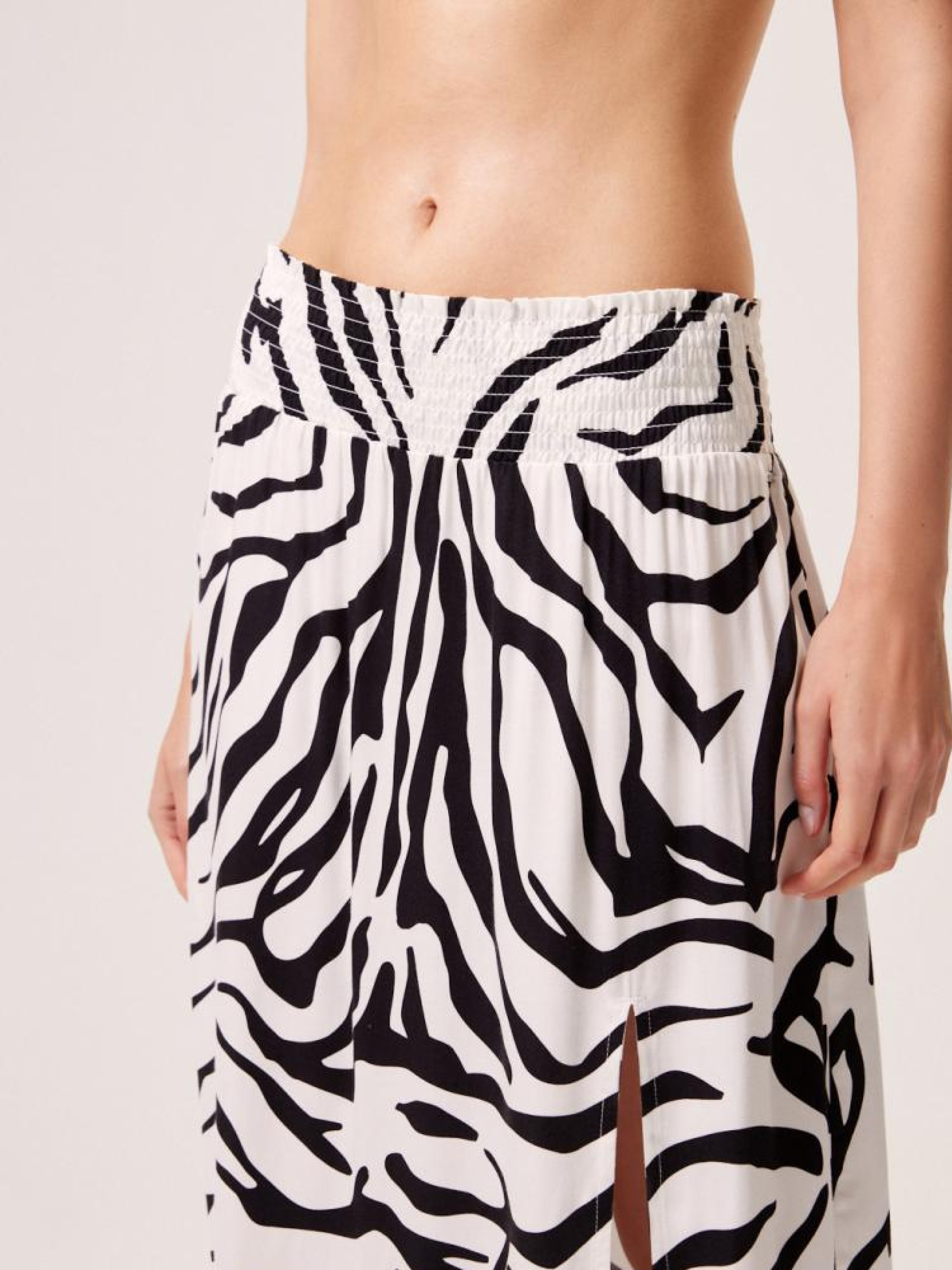 Юбка LENCA 10044353 Летняя юбка из вискозы: - эластичная талия, - длина до середины икры, - разрез спереди, - ткань мягко драпируется и чрезвычайно удобна в ношении, - повседневный и праздничный стиль, - животный узор, - доступен в черно-белом цвете. Сезон: Весна/Лето 2024 Состав: 100% вискоза Уход: - стирка при максимум 30 °С - не отбеливать - не сушить в сушильной машине - гладить максимум при темп. 150 °С - не химчистка Размер на модели - S Рост модели - 180 см