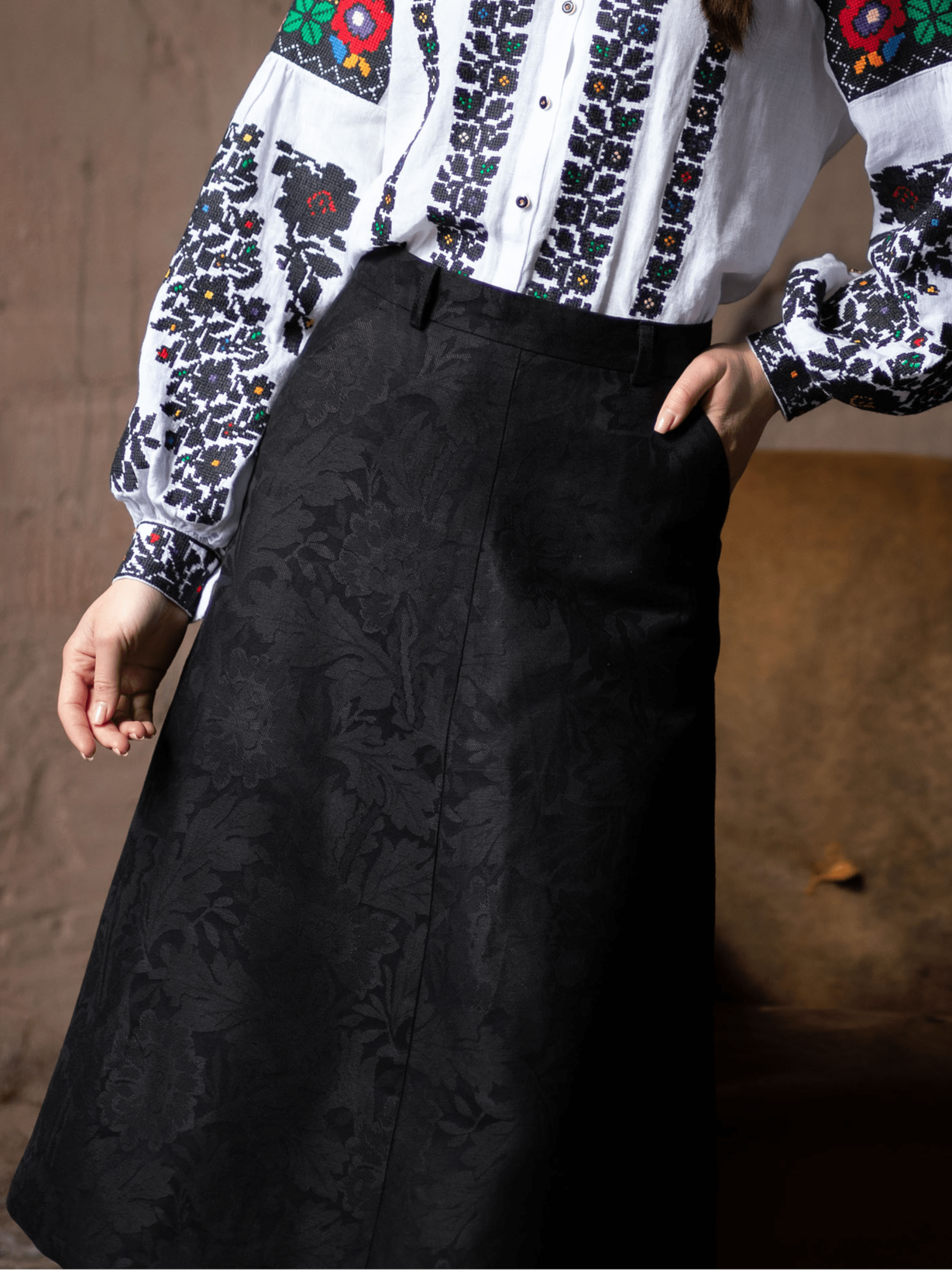 Склад: 50%Льон 50%Бавовна Стильна жакардова спідниця довжиною міді – це універсальна річ, яка підкреслює вишуканий смак і сміливий характер власниці. Трапецеподібна спідниця підійде власницям різних типів фігури, вона приємна на дотик, адже в складі містить натуральні волокна – 50% льону та 50% бавовни. Рослинний орнамент на таємничому тлі додає виробу особливого акценту, а практичні кишені створені з турботою про ваш комфорт та зручність у повсякденному використанні. Жакардова спідниця гармонійно поєднуватиметься як із класичним стилем, так із casual. Едельвіка також створила дивовижні жакети та жилетки з жакардових тканин, ви можете комбінувати їх із цією спідницею та завжди виглядати розкішно.