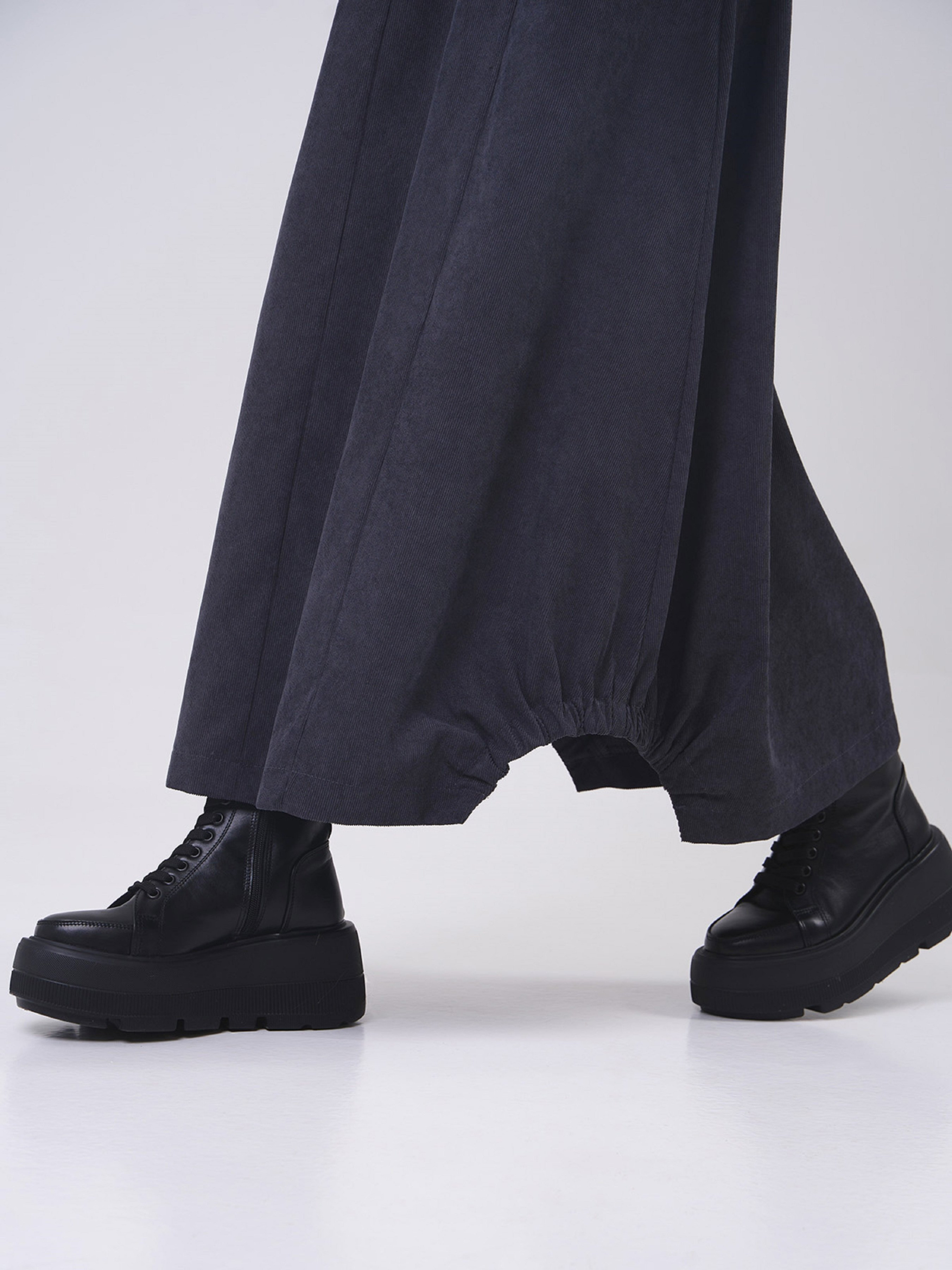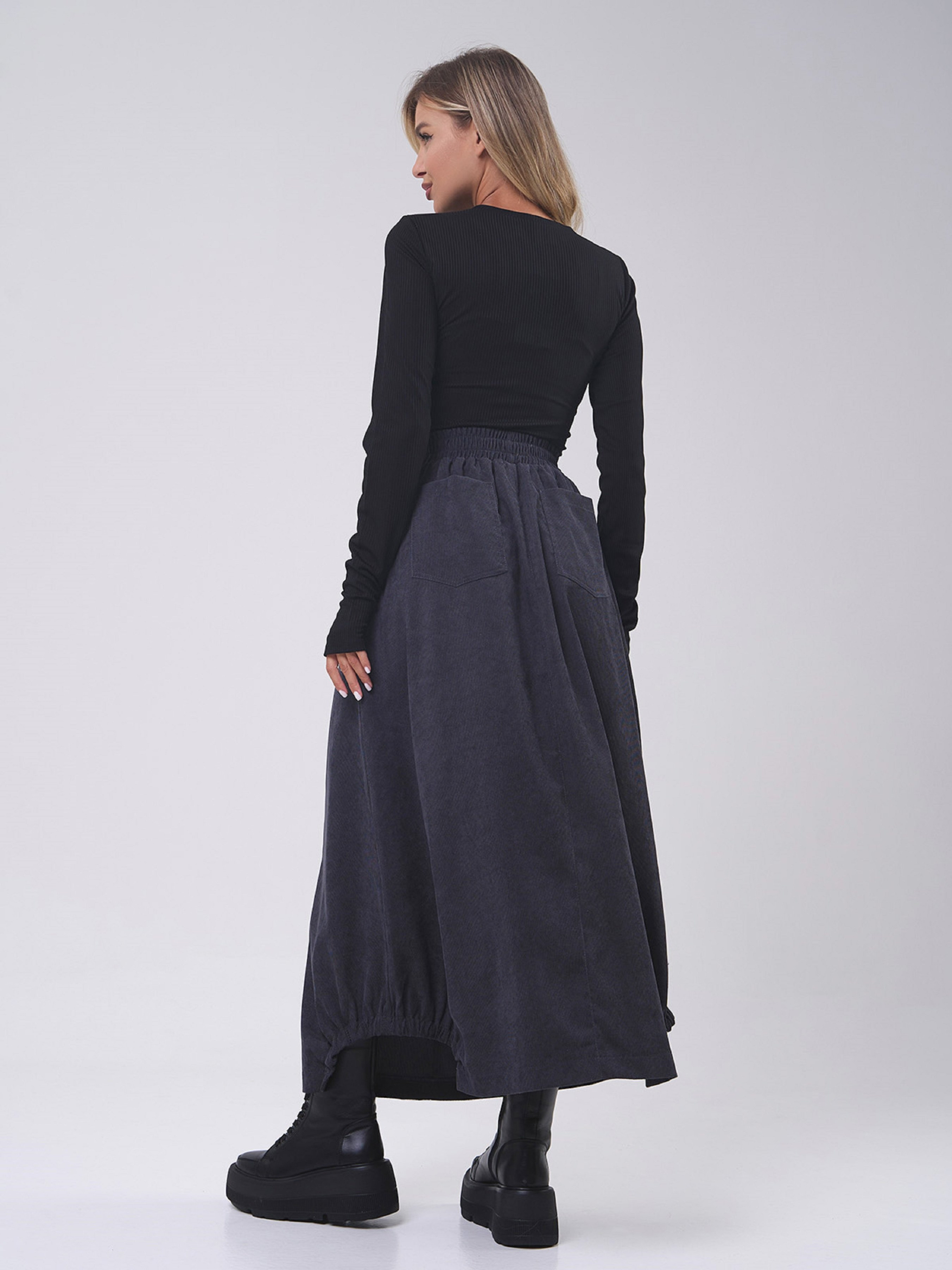 Асимметричная ретро юбка из серого вельвета с карманами и поясной резинкой. Модель с декоративными пуговками и высокой посадкой на талии. Юбка макси длины с боковыми вставками на подоле. Полуобхват: Талия: S (30-51), M (32-54), L (33-55), XL (35-58), XXL (38-61), 3XL (37-63), Бедра: S (56), M (59), L (61), XL (63), XXL (66), 3XL (67), Длина изделия - 93, Ткань: Низкой эластичности.