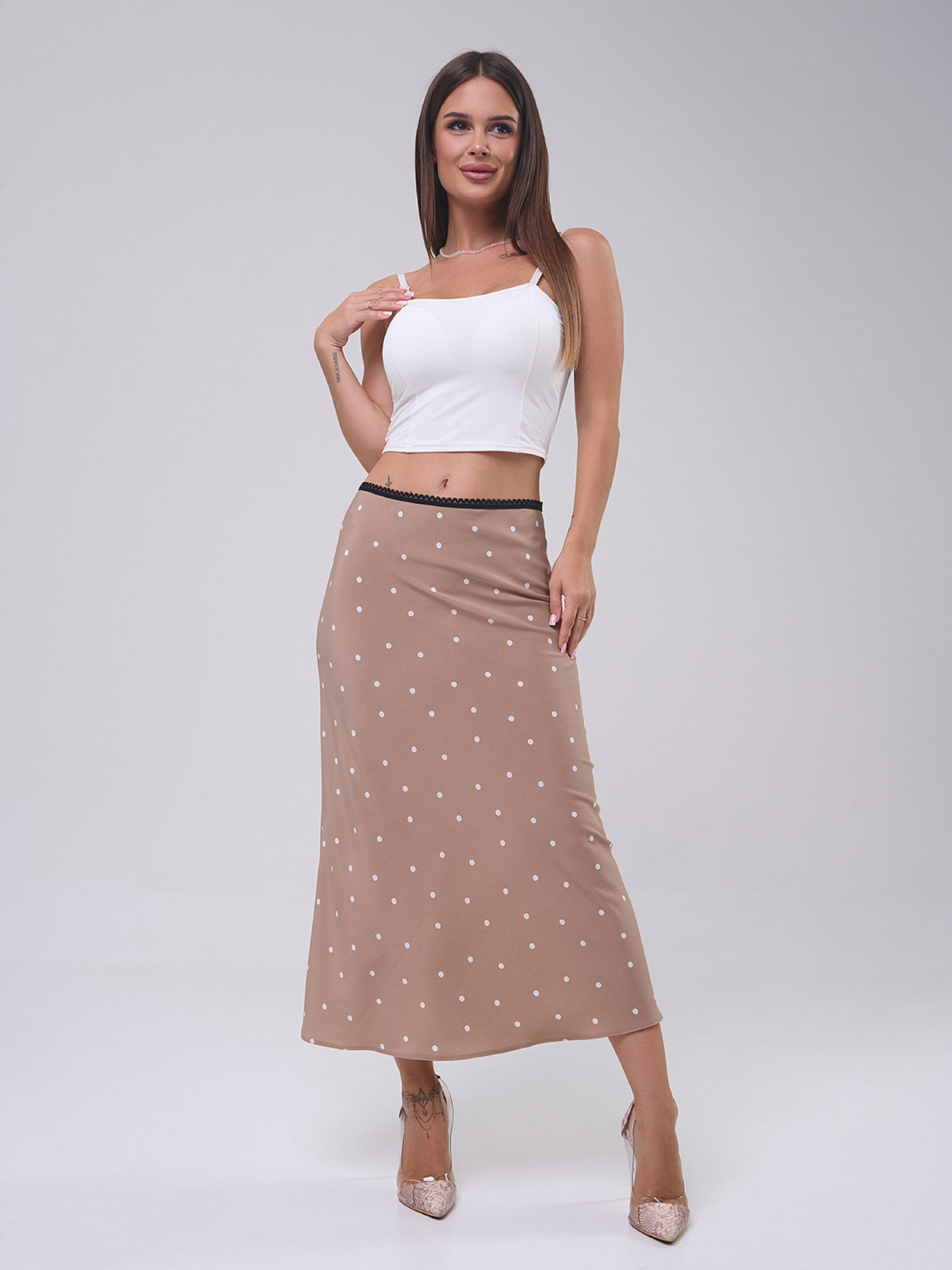 Юбка миди ISSA Plus модель 14471_бежевый