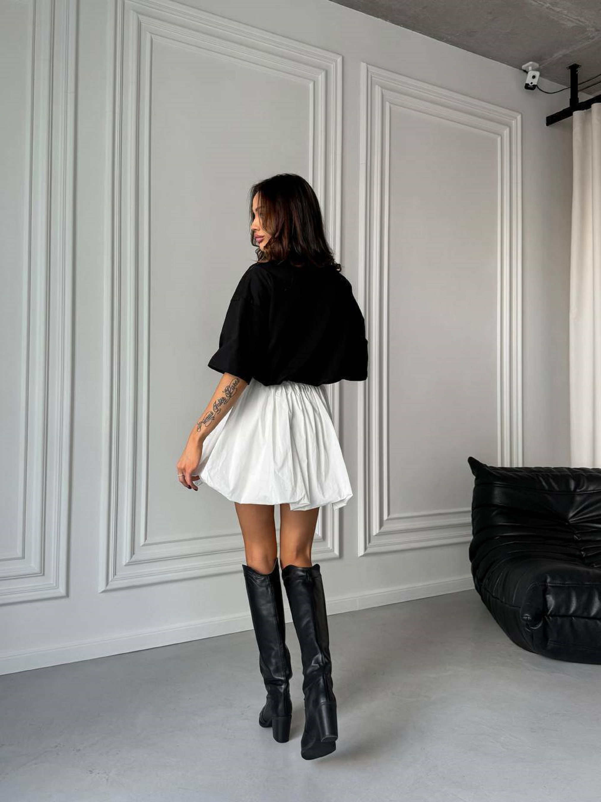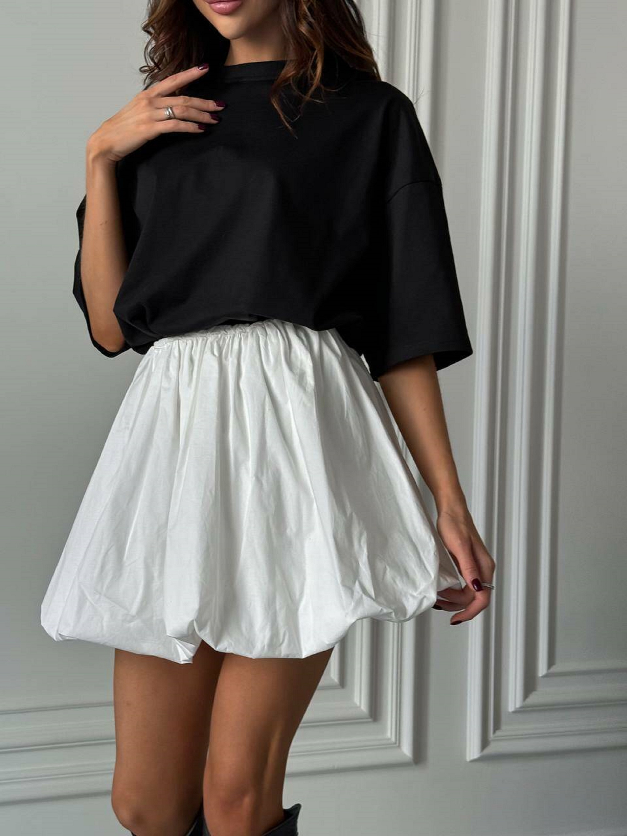 Характеристики: Тканина: 100% бавовна Розмір: XS–L (єдиний) Кольори: молочний, чорний Посадка: на талії Силует: пишний, об’ємний Як носити: Комбінуйте спідницю Хмаринка з короткими топами, сорочками oversize чи корсетами. Ідеально підходить для фотосесій, прогулянок або святкових подій. Для стильного акценту додайте взуття на підборах або масивні кросівки. Трендова та неймовірно ефектна пишна спідниця у вигляді легкої повітряної хмаринки. Модель створена зі 100% бавовни, завдяки чому чудово тримає форму, але при цьому залишається легкою та комфортною. Спідниця створює романтичний, ніжний образ і гарно поєднується як з базовими топами, так і з об’ємними светрами чи сорочками.