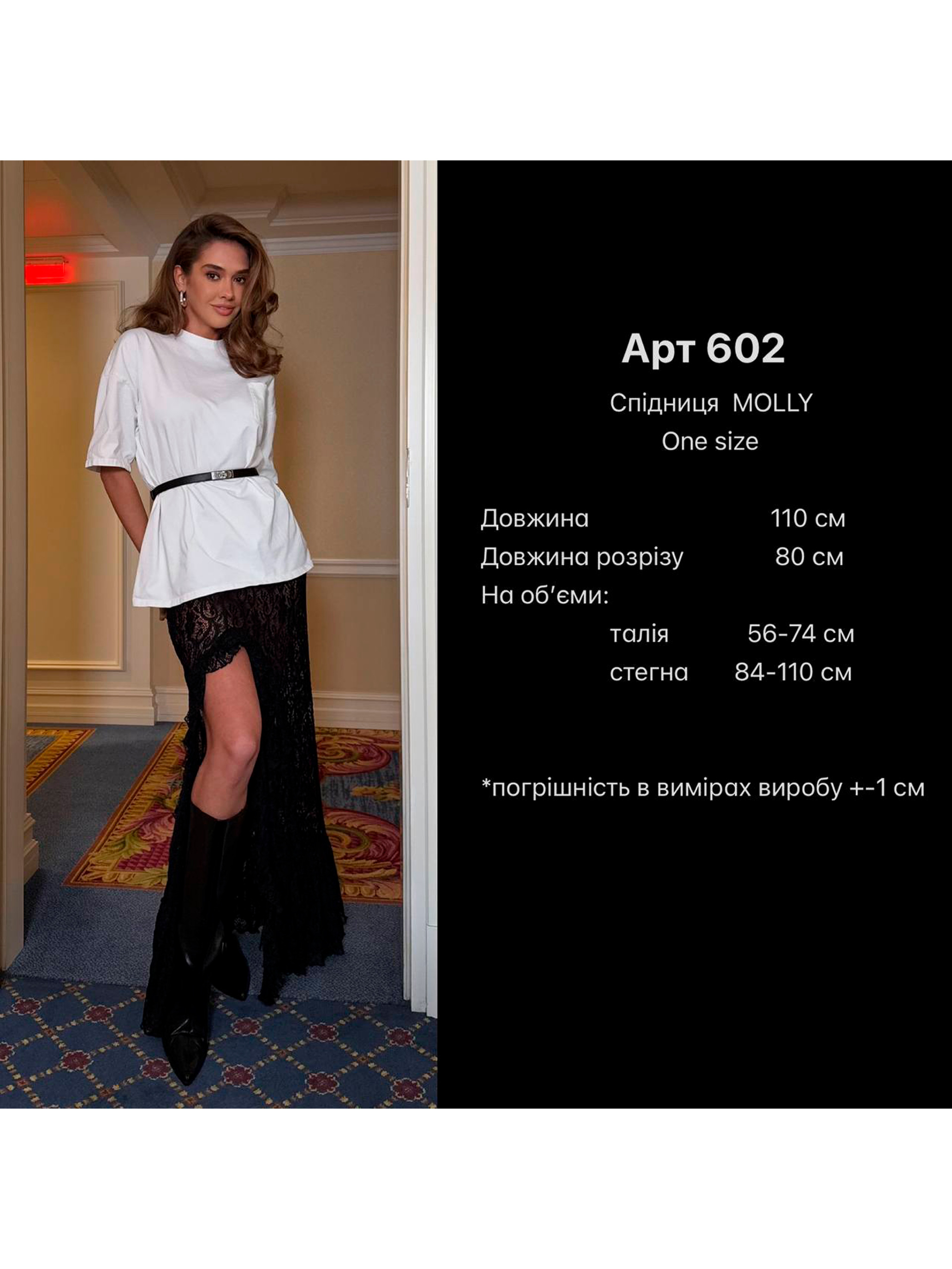 Характеристики: Посадка: на талії, на резинці Матеріал: мереживо Декор: рюші, волани Розмір: one size (XS–L) Кольори: чорний, молоко, шоколад, чорний “гілочка”, білий “гілочка”, шоколад “гілочка” Як носити: Поєднуйте спідницю з базовими топами або сорочками для легкого повсякденного луку. Для вечірнього виходу — додайте підбори, жакет або кроп-топ. Тренд сезону — вишукана спідниця з ніжного мережива, прикрашена романтичними рюшами та воланами. Легка, повітряна та елегантна — ідеальний вибір для створення жіночного образу як на щодень, так і для особливих випадків. Модель має комфортну посадку на талії завдяки м’якій еластичній резинці. Легка тканина гарно драпірується, створюючи витончений силует і додаючи образу шарму.