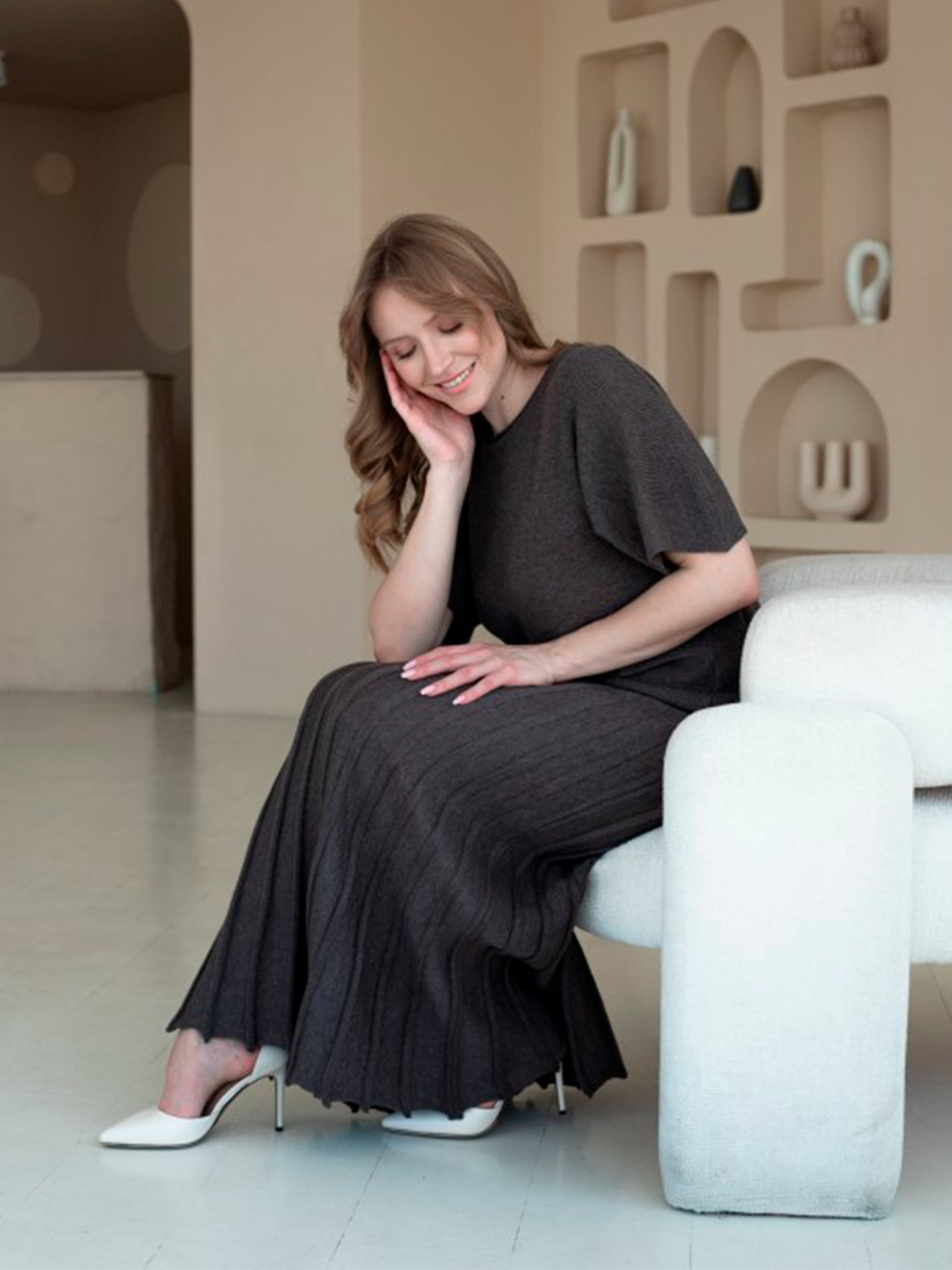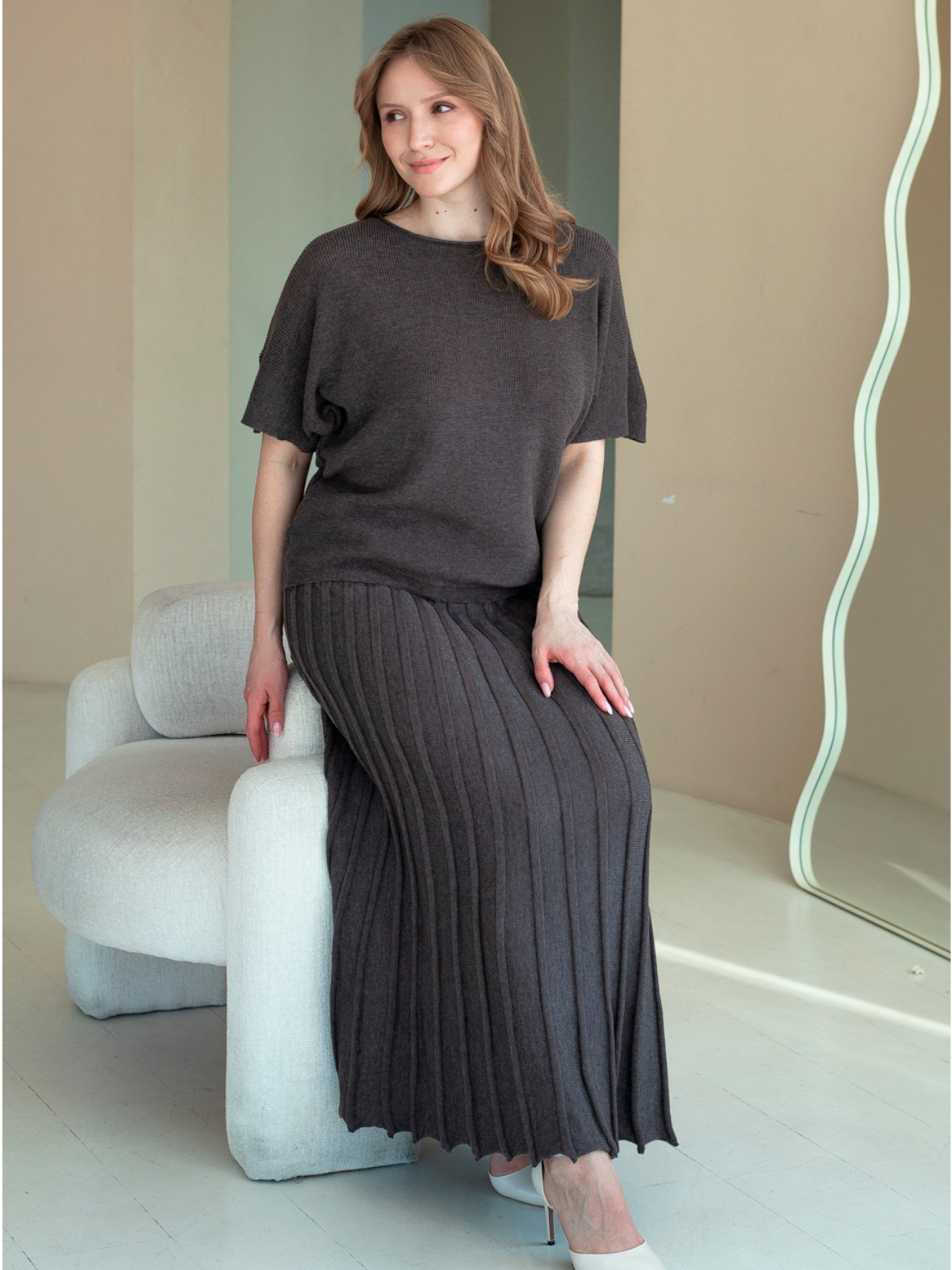 Юбка миди Nita модель yubka-kapuchino-korichnevij