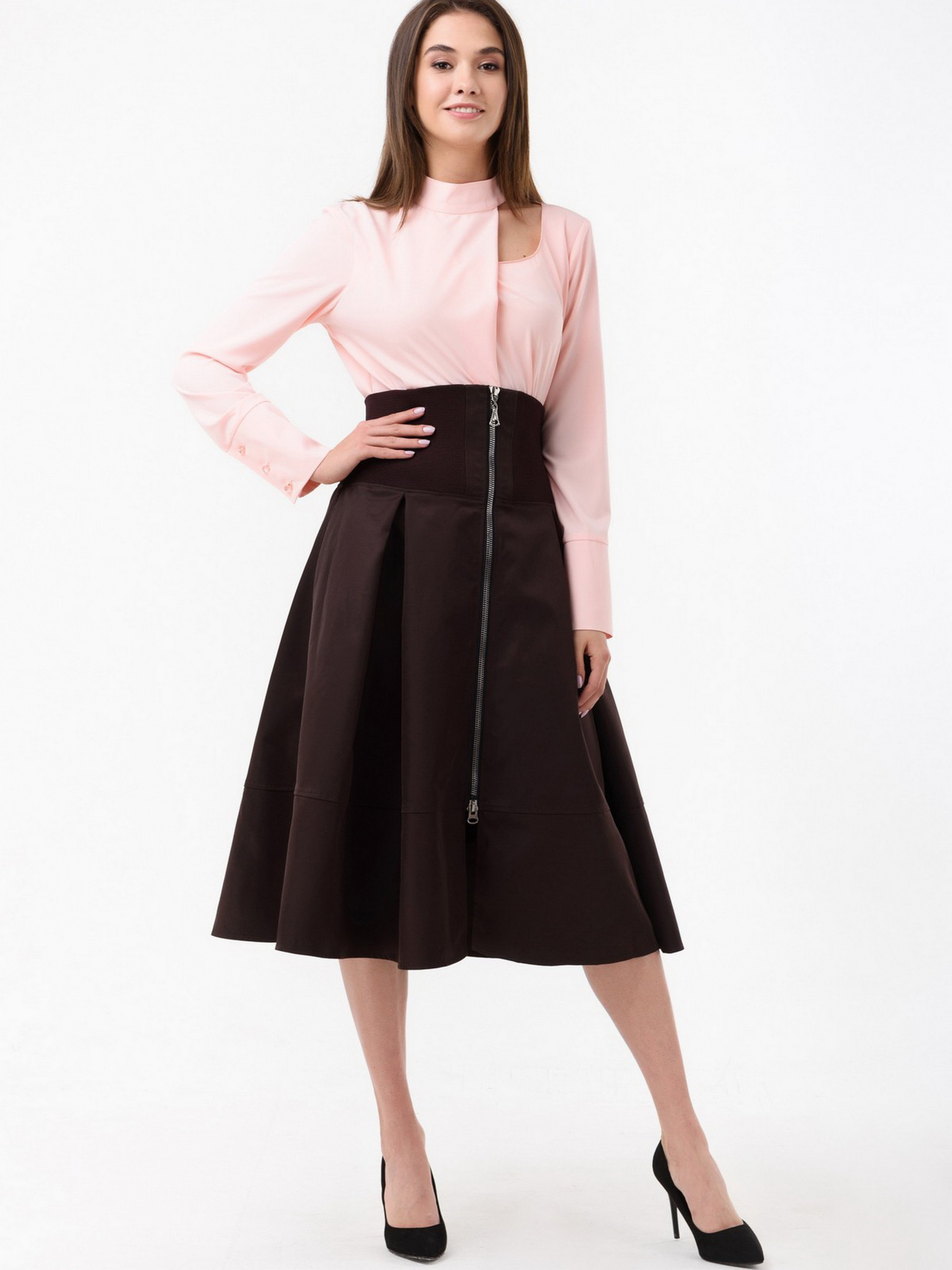 Свободная юбка от RicaMare. Интересный декор в виде функциональной змейки и регулируемой талии придает наряду особую оригинальность, создавая динамичное настроение. Отлично сочетается со светлыми классическими блузками и подойдет как для повседневного гардероба, так и для офиса. Состав: polyester 80%, cotton 20%. Параметры размеров: