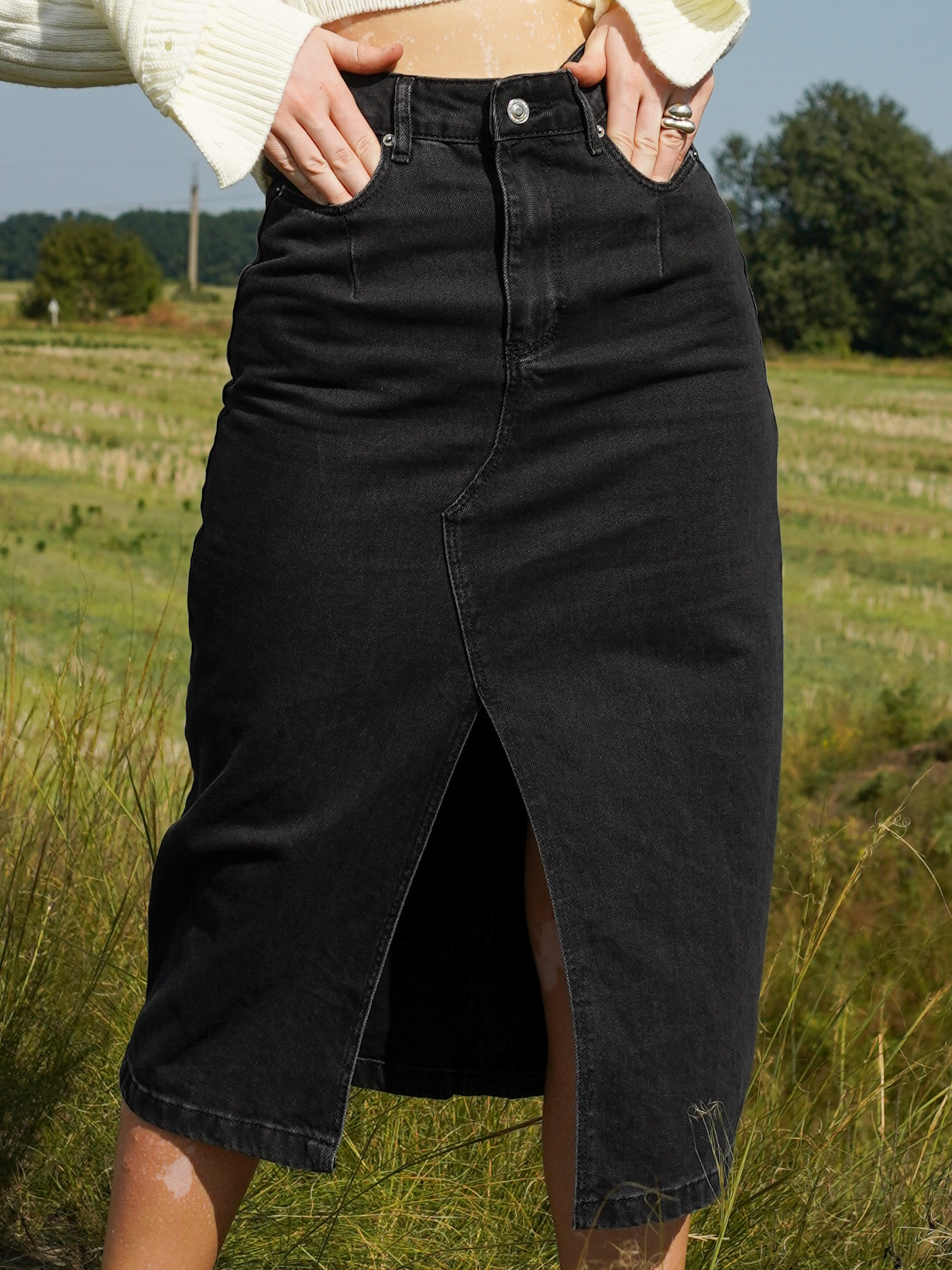 Длинная джинсовая юбка (юбка-миди) с разрезом спереди. Выполнена из плотного джинса, который хорошо держит форму. Изделие имеет высокую посадку и застегивается на молнию спереди. Садится размер в размер, поэтому советуем выбирать свой размер. Юбка идет в классическом синем и черном цвете. Советуем носить с боди (например, "Лореш", "Урес", "Лидо", "Лортон"), базовой футболкой "Мойта", майкой "Арока" или топом "Леон". Чтобы дополнительно подчеркнуть талию, советуем выбирать укороченные фасоны верхней одежды, например, куртку "Поотси", бомбер "Сория", пиджак "Асьют", "Талси". Если же вам больше по душе расслабленные луки, советуем остановить свой выбор на оверсайз косухах "Твист" или "Берлин". Цвет изделия на фотографии может отличаться от реального цвета товара, что связано с особенностями цветопередачи на мониторе, настройками фотоаппаратуры или другими факторами. Xs длина 84 см Полуобхват бедер -42 см Полуобхват талии-34 см S Длина-84 см Полуобхват бедер -44 см Полуобхват талии--35 см M Длина-84 см Полуобхват бедер -46 см Полуобхват талии-36 см L Длина -84 см Полуобхват бедер -47 см Полуобхват талии-37 см