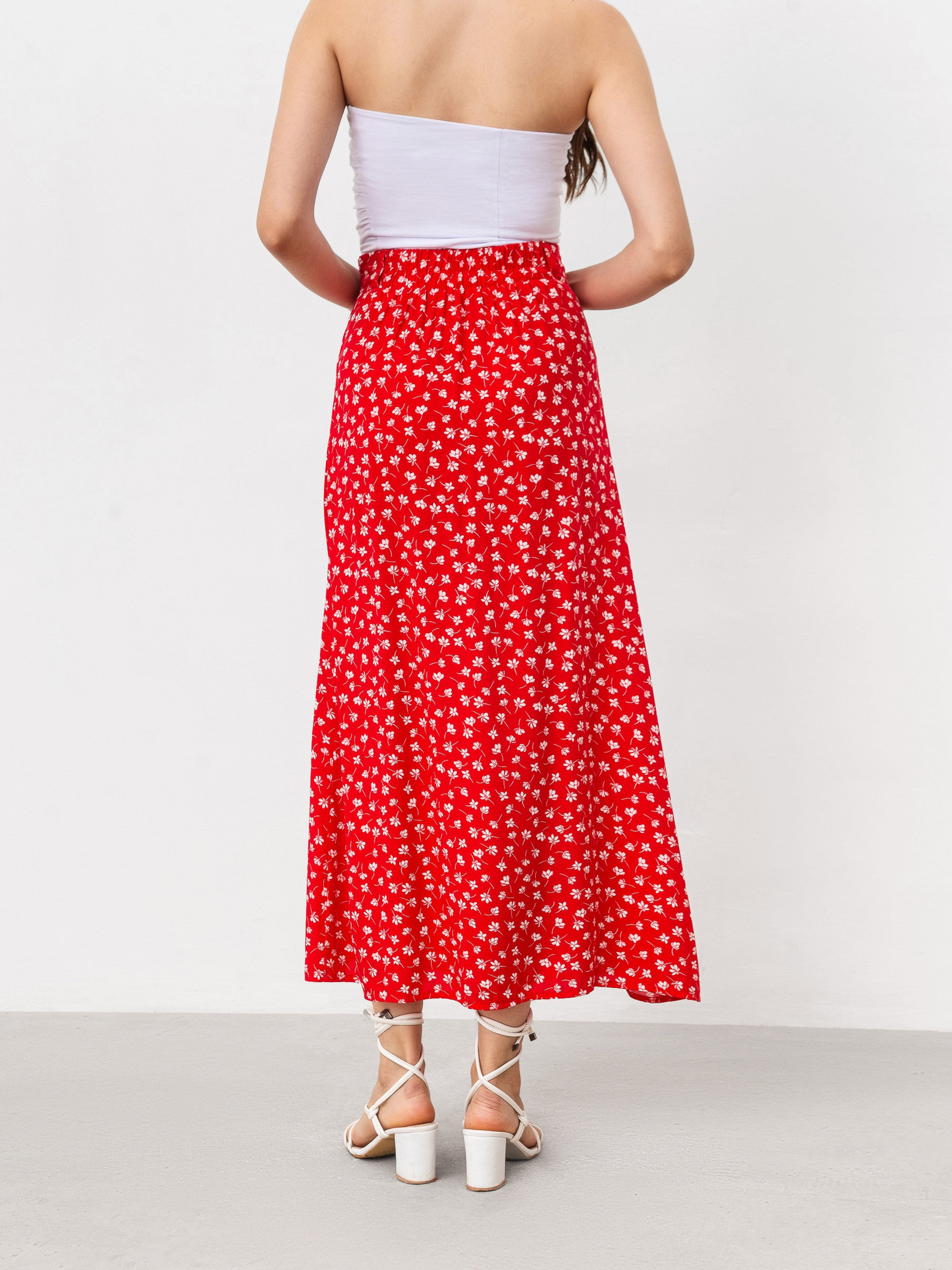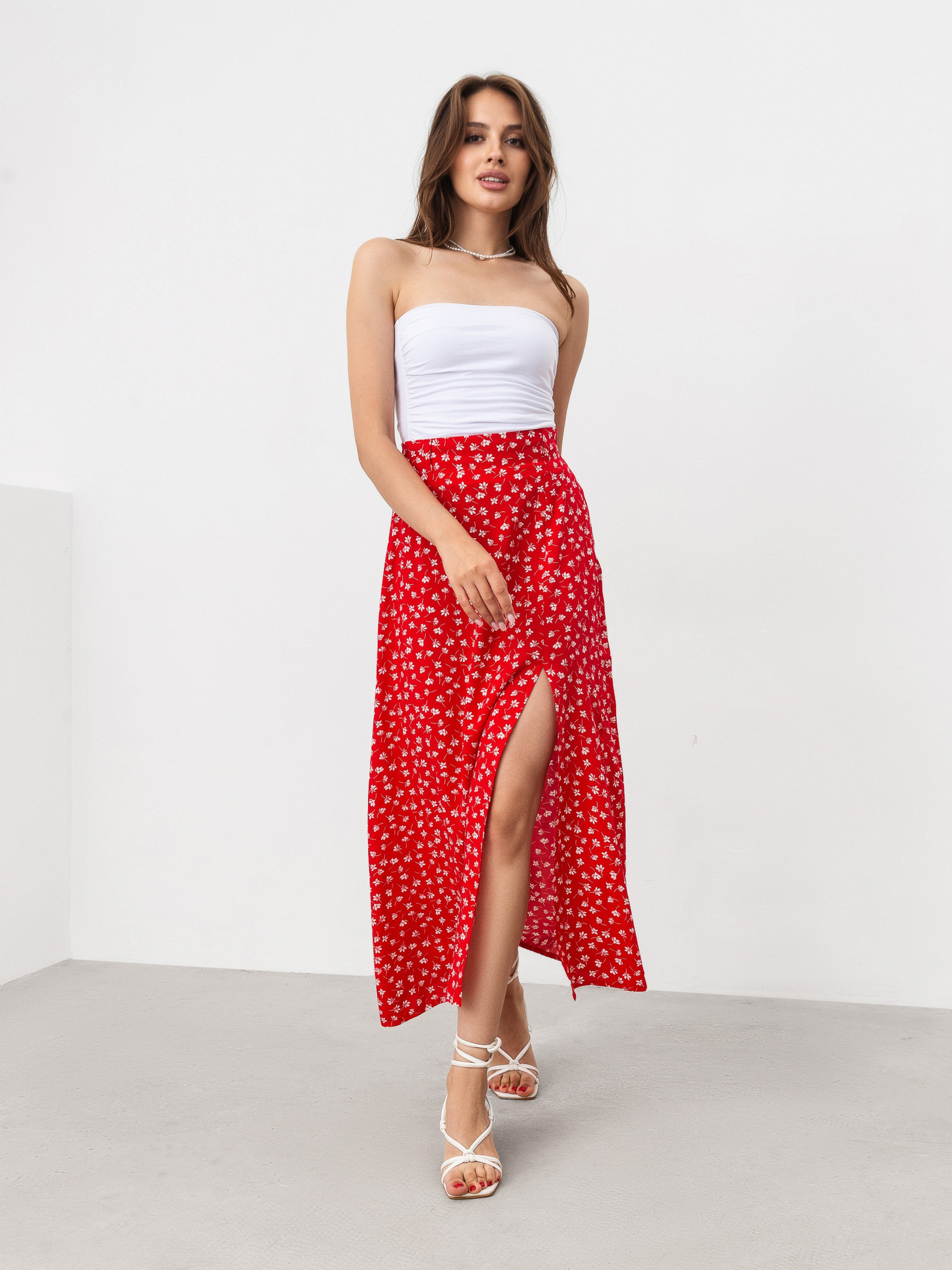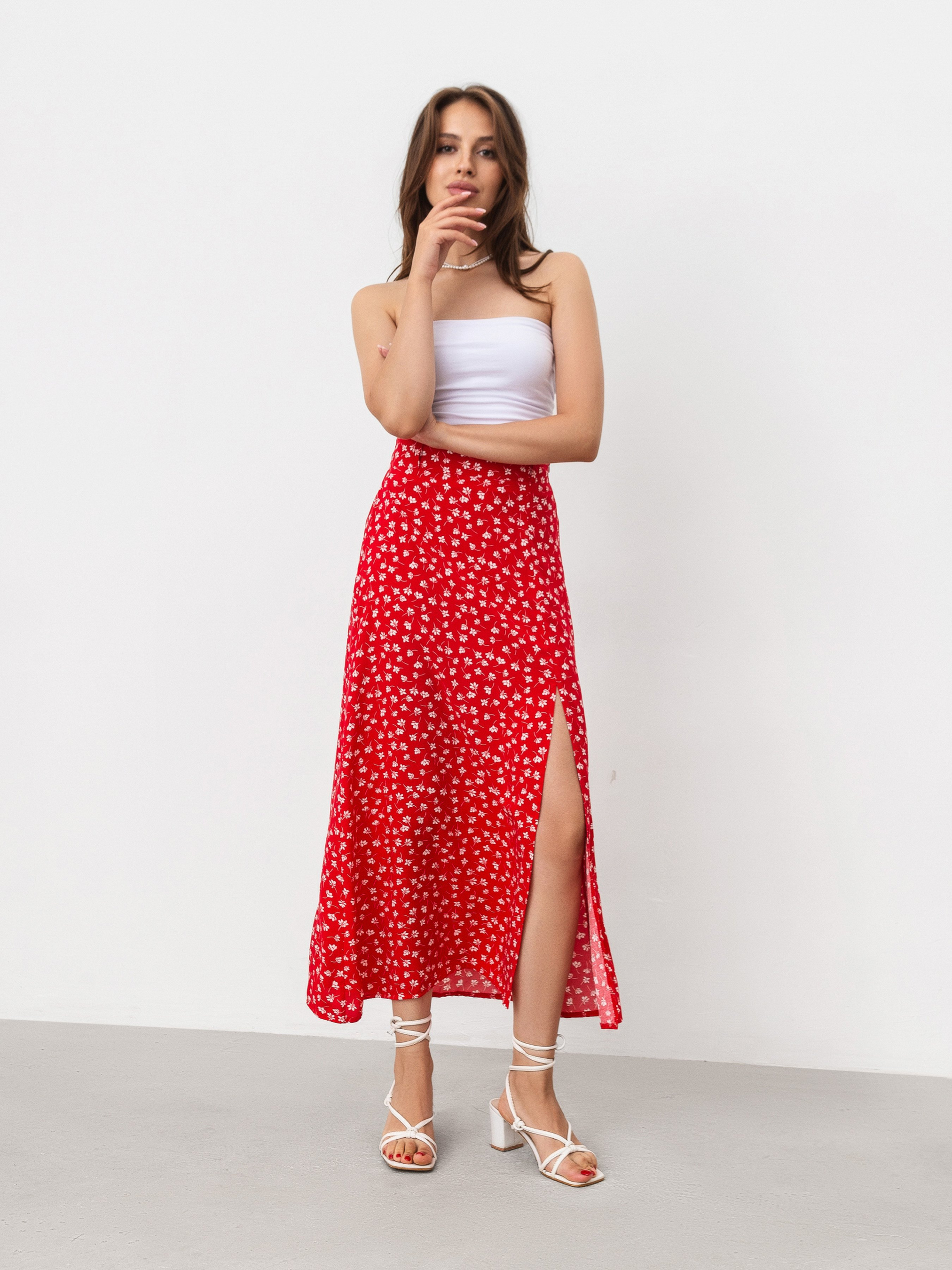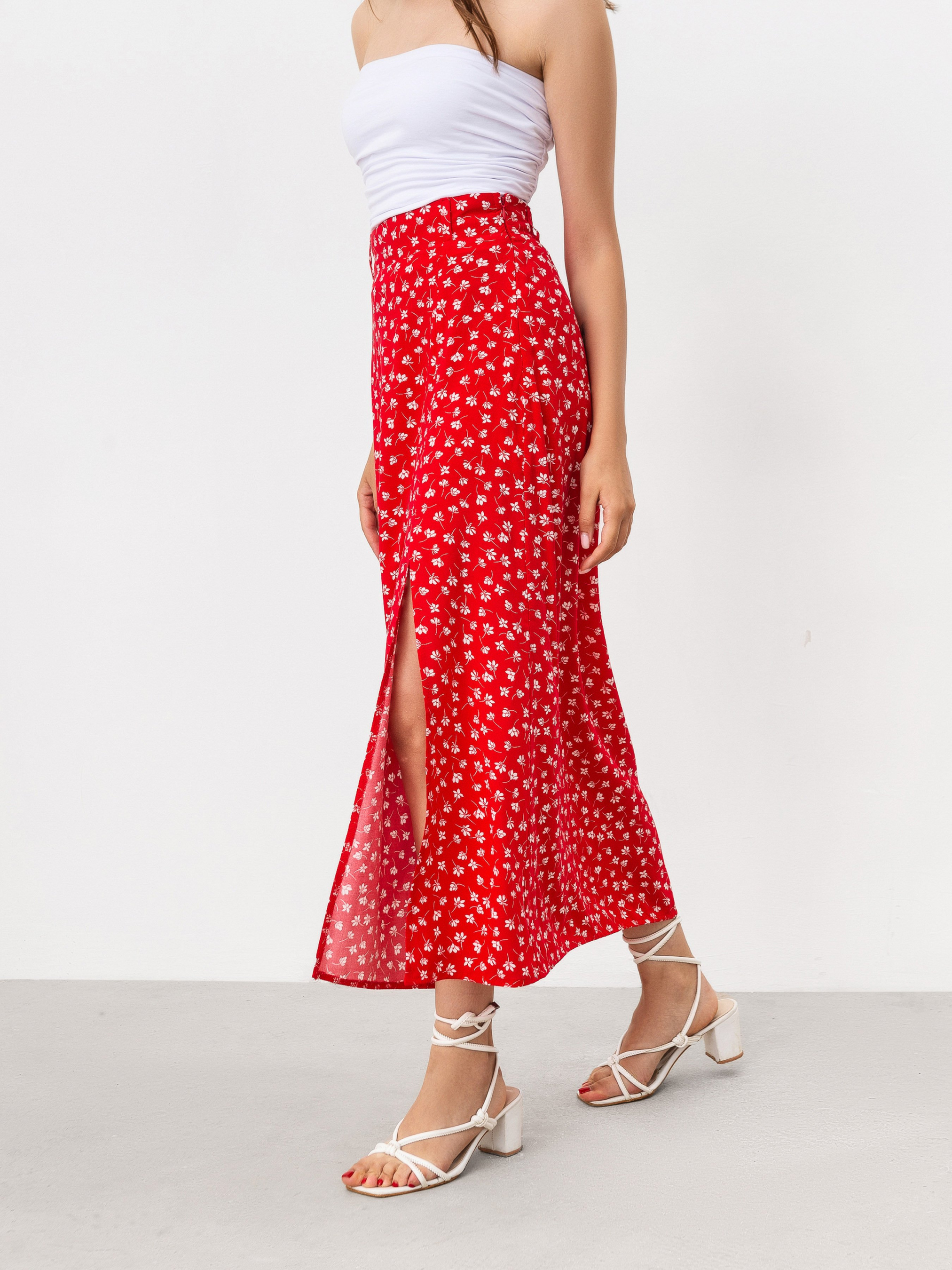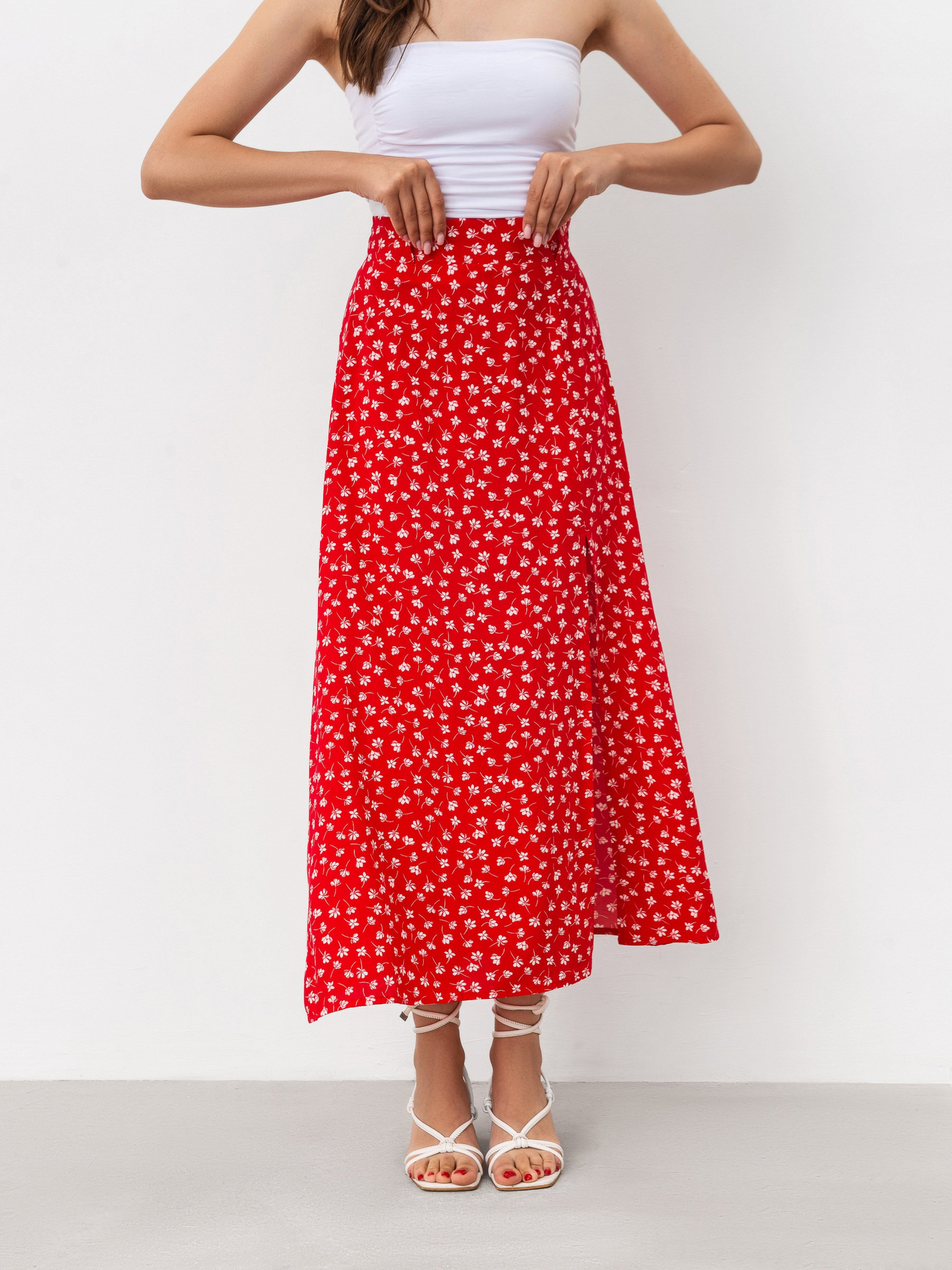 Нежная юбка длины миди с принтом. Юбка фасона трапеция. Имеет разрез. Талия фиксируется на резинке. Модель имеет на талии незаметные шлевки, если захочется добавить ремешок в образ. Ткань состоит из 100% вискозы, поэтому приятная к телу. Юбку советуем сочетать с рубашками, топами, корсетами. XS Длина по внешнему шву : 87 см Полуобхват бедер : 48 см Полуобхват талии : 31 см S Длина по наружному шву: 89 см Полуобхват бедер: 49 см Полуобхват талии: 33 см M Длина по внешнему шву: 89 см Полуобхват бедер: 50 см Полуобхват талии: 35 см L Длина по наружному шву: 91 см Полуобхват бедер : 51 см Полуобхват талии: 39 см XL Длина по внешнему шву: 91 см Полуобхват бедер : 54 см Полуобхват талии: 41 см XXL Длина по внешнему шву: 93 см Полуобхват бедер: 57 см Полуобхват талии: 44 см