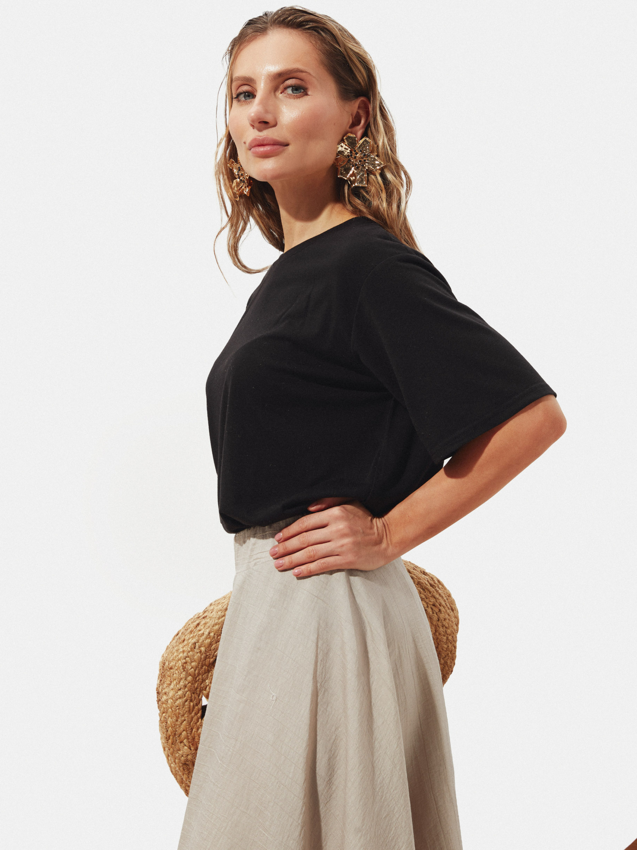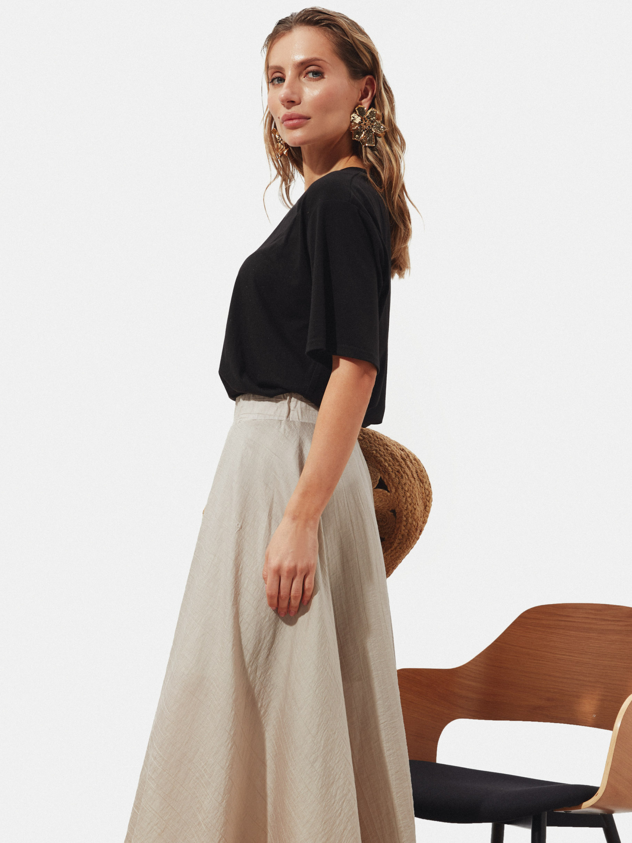 Юбка-клёш Юбка — это произведение искусства для тех, кто ценит сочетание женственности и свободы движения. Клёшный фасон легко обнимает бёдра и плавно расширяется книзу, создавая образ, который словно плывёт в воздухе с каждым шагом. Боковые карманы добавляют практичности без ущерба стилю, а разрезной пояс на резинке гармонично подчёркивает талию и обеспечивает идеальную посадку, не стесняя движений. Такая юбка — это не просто одежда, а маленькое приключение, подчёркивающее лёгкость и нежность, добавляя игривости любому образу. Высокая посадка придаёт изящества, а длина миди делает изделие универсальным как для офиса и прогулок, так и для вечерних мероприятий и кофе с подругами. Материал — нежный лен с добавлением вискозы и полиэстера, который хорошо держит форму, не сковывает движений и нежно окутывает тело. Лёгкий, дышащий и одновременно прочный текстиль обеспечивает комфорт в течение всего дня, а структурная фактура придаёт изделию изысканность и характер. Размерная сетка создана так, чтобы идеально сидеть на разных типах фигур: S-M — обхват талии 68-72 см, бёдер 92-96 см; L-XL — обхват талии 76-81 см, бёдер 100-105 см; XXL-3XL — обхват талии 86-91 см, бёдер 110-115 см. Длина юбки: S-M — 89 см L-XL — 86 см XXL-3XL — 83 см Уход: Уход за изделием простой и одновременно бережный, чтобы сохранить первоначальный вид и качество ткани надолго. Рекомендуется стирать юбку вручную или в деликатном режиме стиральной машины при температуре не выше 30°C. Избегайте агрессивных отбеливателей, чтобы ткань не потеряла насыщенный цвет и структуру. После стирки изделие лучше сушить в разложенном виде или на вешалке в тени, избегая прямых солнечных лучей, чтобы предотвратить выгорание ткани. Гладить нужно при низкой или средней температуре, желательно с паром, чтобы сохранить нежность и структуру креп-шифона. Химическая чистка не рекомендуется — это поможет избежать повреждения деликатной текстуры ткани.