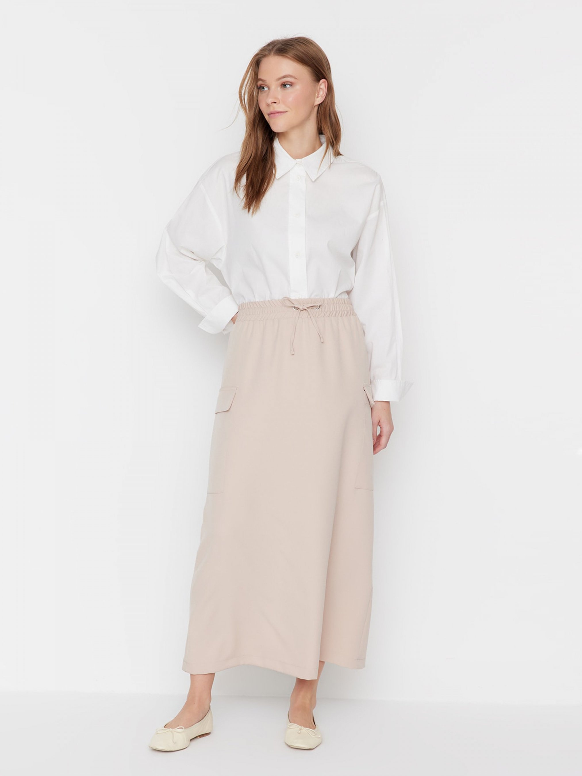 Юбка макси Trendyol модель TCTSS23EE00012/Krem
