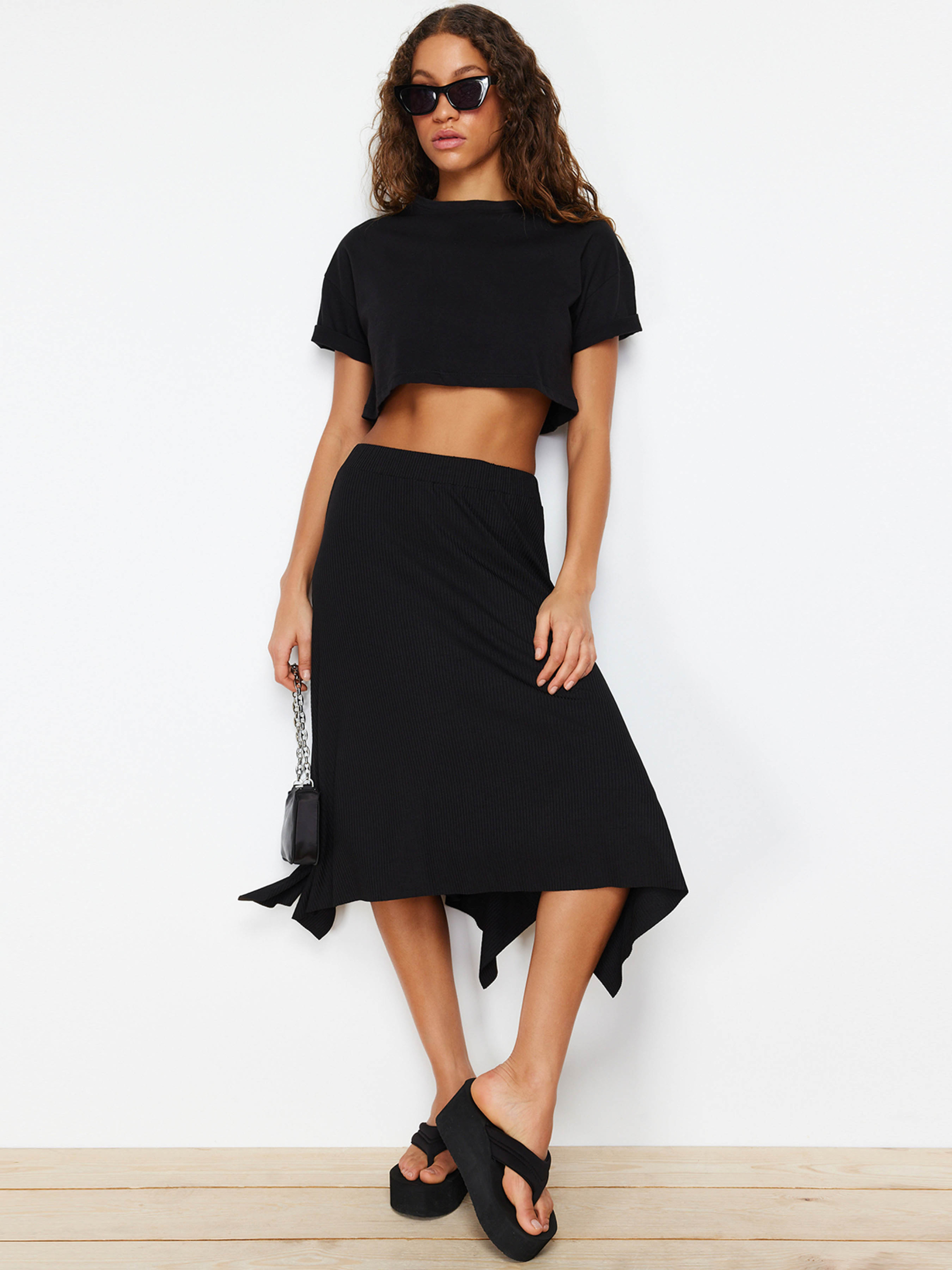 Юбка миди Trendyol модель TWOAW20ET0440/Siyah