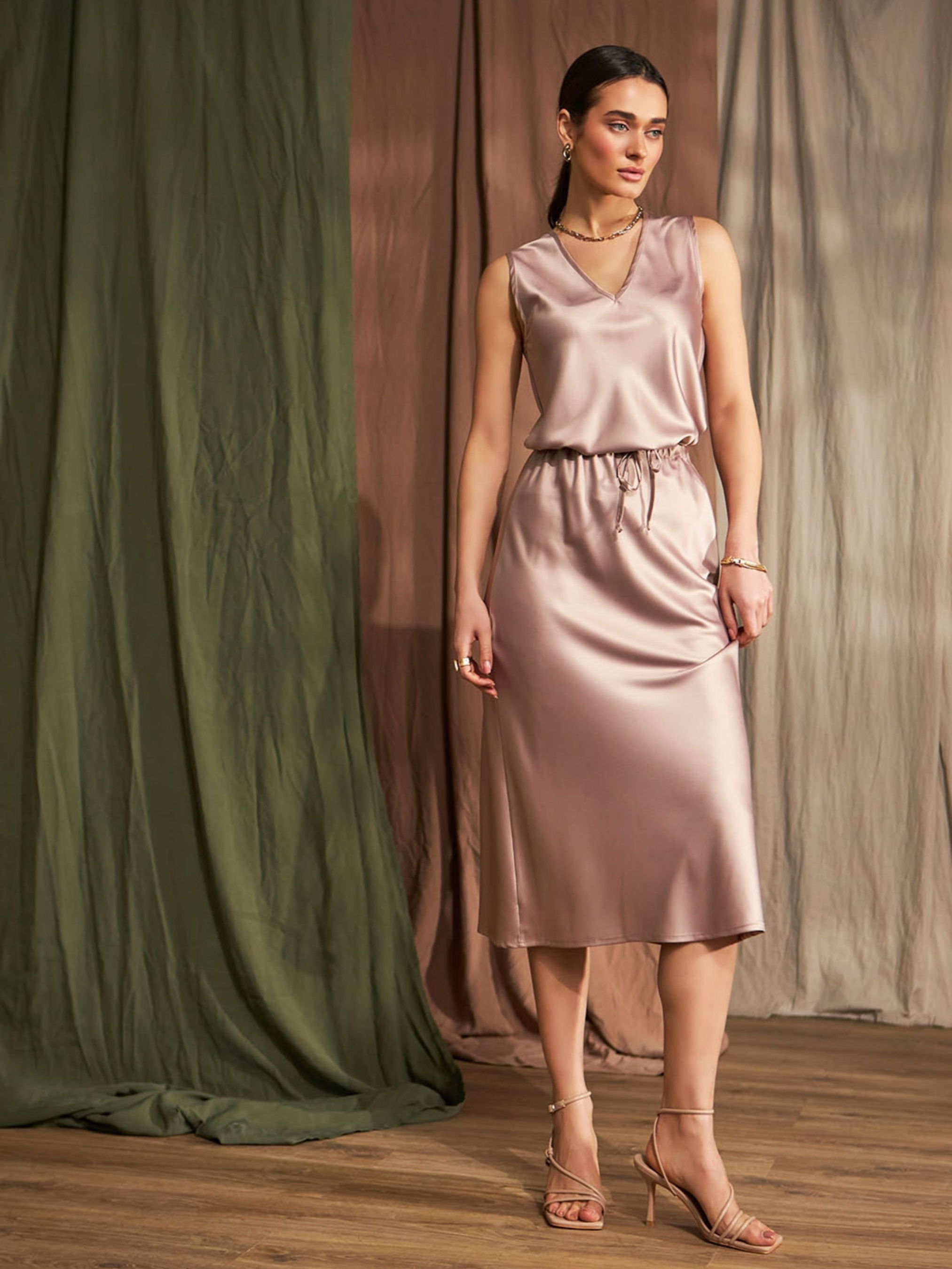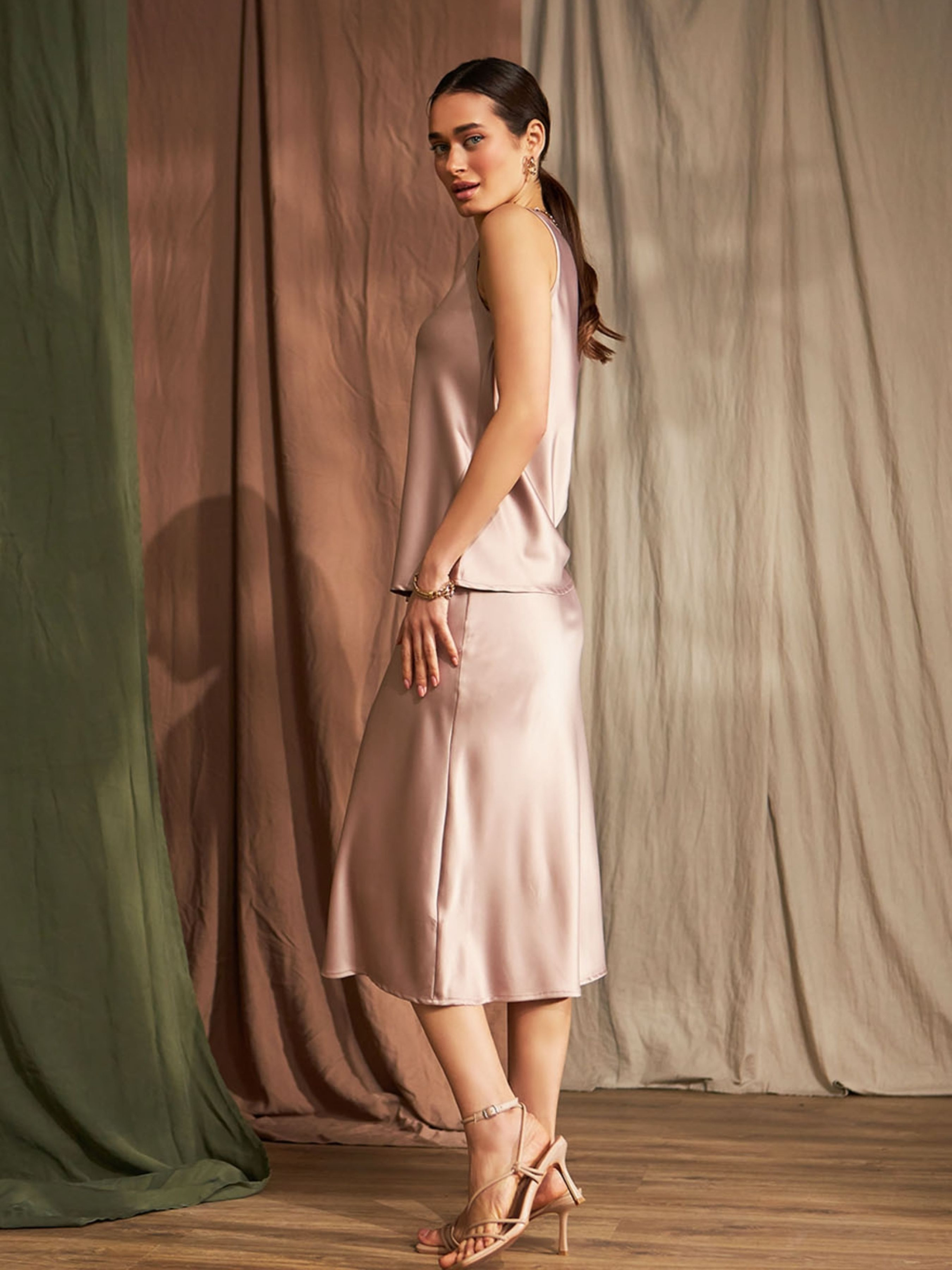 Витончена та універсальна жіноча спідниця міді з м’якої шовкової тканини з легким блиском стане ідеальним доповненням до вашого гардероба. Завдяки делікатному переливу матеріалу вона виглядає елегантно та розкішно, зберігаючи при цьому комфорт повсякденного носіння. Модель має розслаблений крій, який підкреслює жіночність і дозволяє вільно рухатися. Пояс-куліска з еластичною стрічкою забезпечує зручну посадку по фігурі, акцентуючи талію. Такий фасон чудово поєднується як з облягаючими топами, так і з вільними сорочками чи джемперами, що дозволяє створювати різноманітні стильні образи. Характеристики: Фасон: міді, пряма з легкою свободою по низу Матеріал: шовкова тканина з ніжним блиском Пояс: куліска з еластичною стрічкою Довжина спідниці: 75–77 см Ширина у талії: 29–37 см (у розтягнутому стані — 43–51 см) Ширина у стегнах: 47–54 см Ширина по низу: 61–70 см Сезон: весна / літо / рання осінь Призначення: на кожен день, офіс, побачення, святкові події Ця елегантна спідниця міді стане базовою річчю в гардеробі сучасної жінки — легко комбінується, виглядає дорого і підходить для будь-якого випадку.
