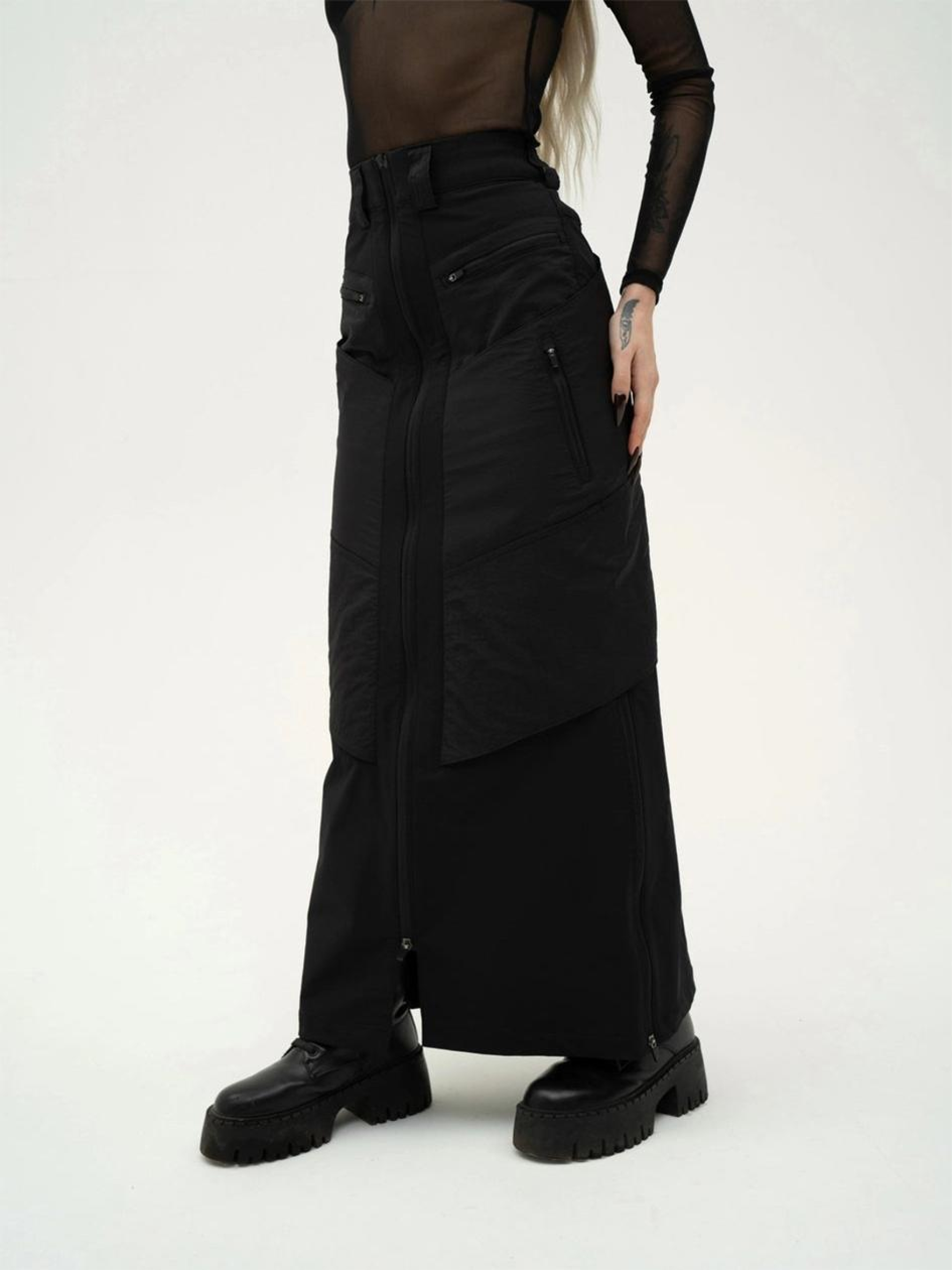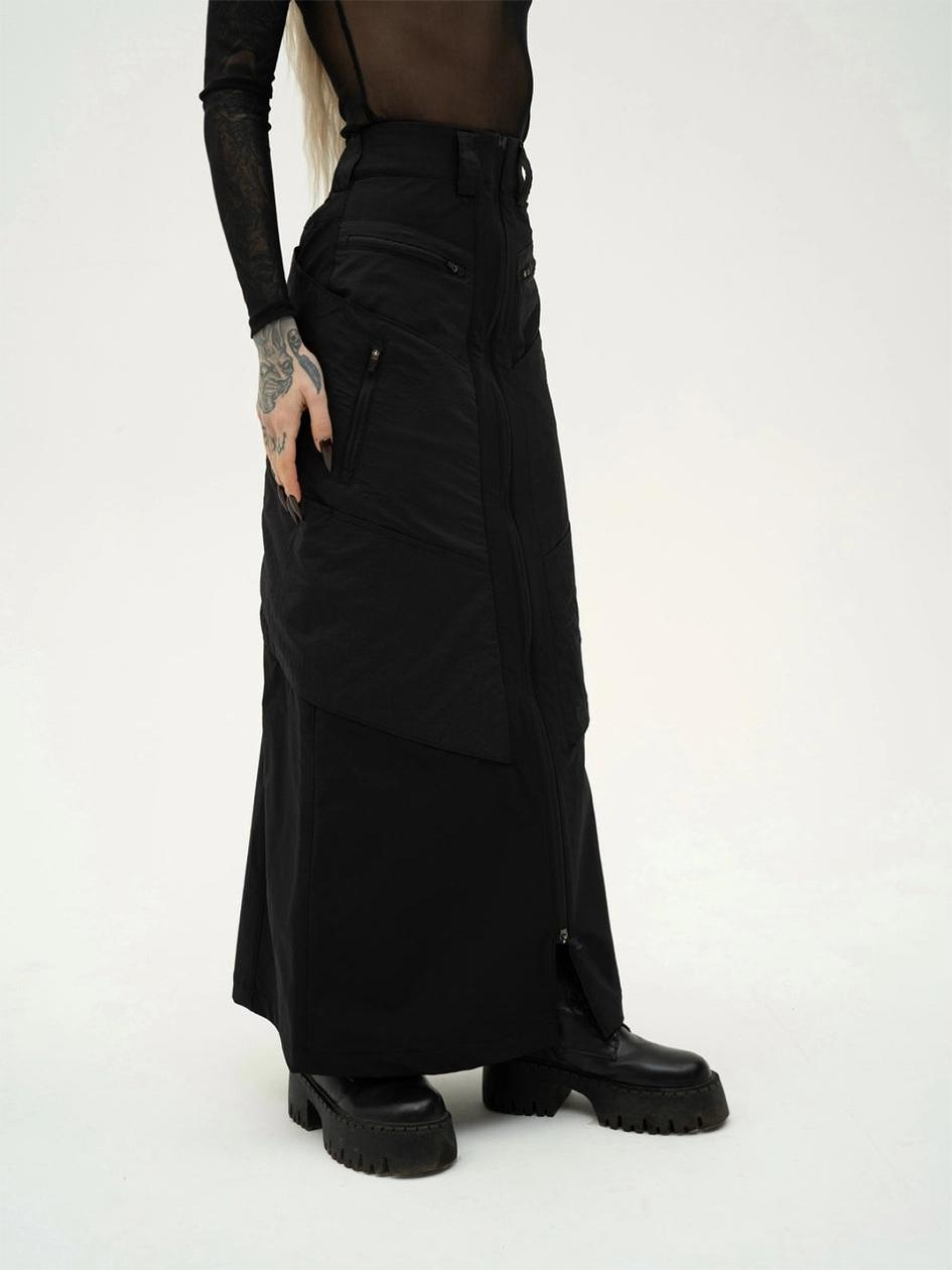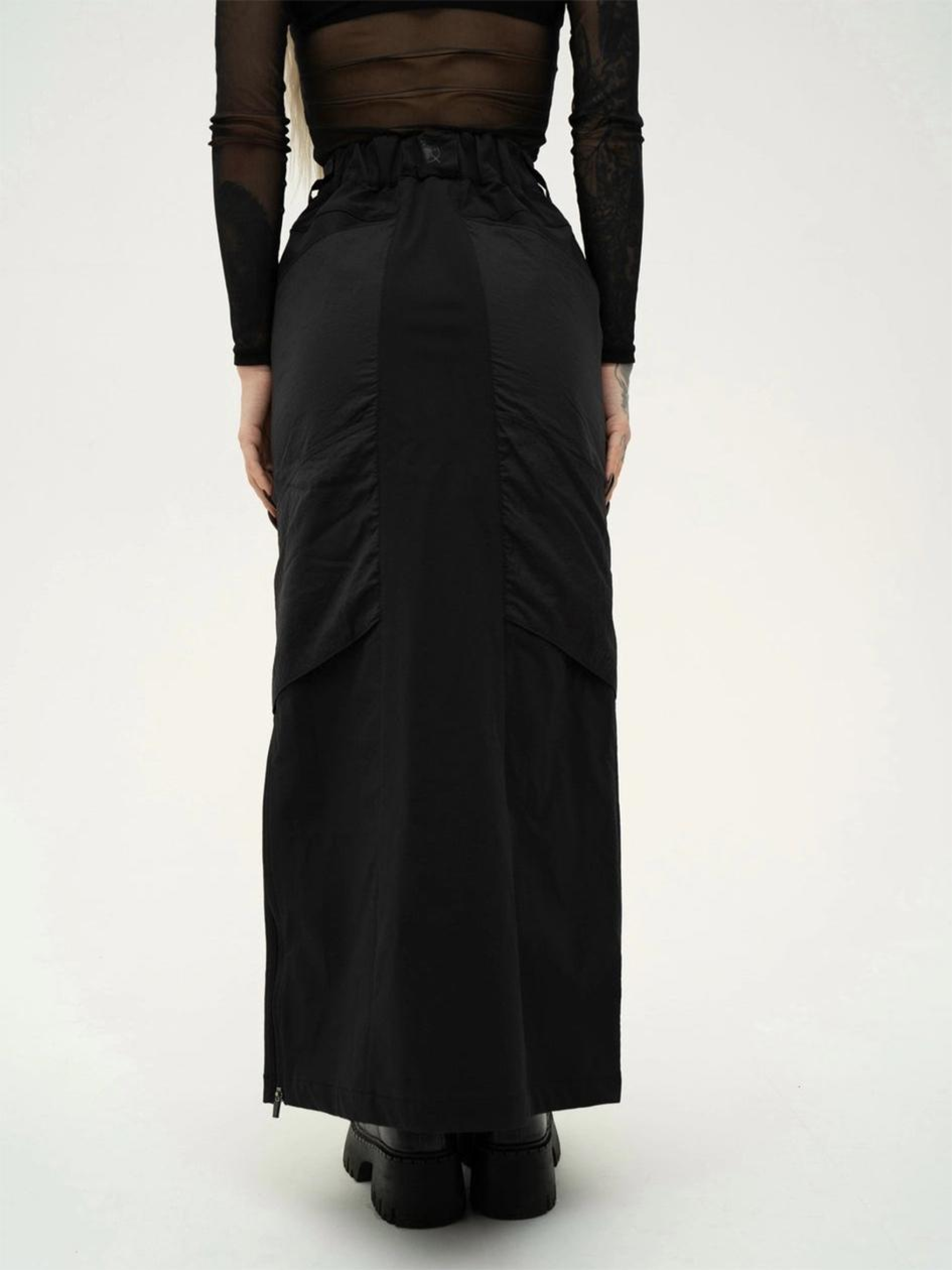 Состав ткани: 85% нейлон, 15% лайкра. Плотность: 180 г/м². Особенности материалов и фурнитуры: 4w-стрейч - техническая ткань с четырехсторонней растяжимостью, которая обеспечивает свободу движений и плотную посадку. Имеет водоотталкивающее покрытие, водонепроницаемость до 3000 мм вод. ст. и хорошую паропроницаемость. Высокая эластичность и прочность материала гарантируют комфорт и долговечность при ежедневном использовании. Оснащено молниями YKK - фурнитурой, проверенной в условиях активной эксплуатации. Ключевые особенности модели: Юбка макси выполнена из технологичного материала CPN, сочетающего полиэфирные волокна: внешний слой напоминает мягкую плащевку, а внутренняя сторона имеет трикотажную основу. Модель оснащена накладными карманами из структурной плащевки с эффектом жатки, добавляющими стильного вида. Спереди расположена молния с двойным бегунком, а с левой стороны - молния, позволяющая создать разрез. Юбка имеет 4 накладных кармана на молнии и 2 кармана-сумки. С шлевками для пояса и фирменной вышивкой на спинке. Внутренние швы обработаны каймой для долговечности.< Рекомендации по уходу: Машинная стирка при макс. 30 ºC Нельзя использовать отбеливатель Глажка при макс. 150 ºC Химчистка запрещена Можно сушить в сушилке при низкой температуре