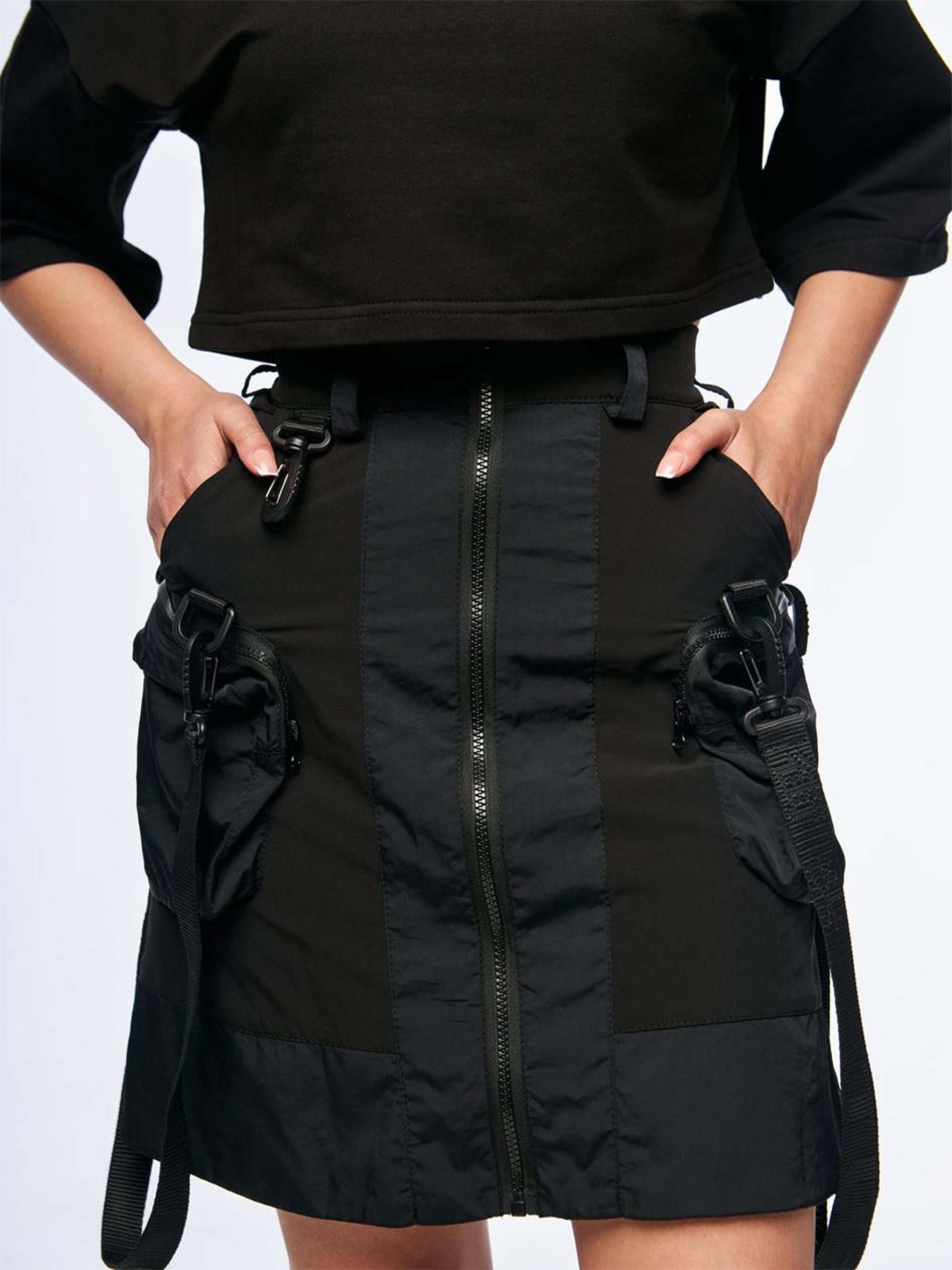 Состав ткани: 100% полиэстер. Особенности материалов и фурнитуры: Нейлон - прочный, легкий и износостойкий материал, не впитывает влагу и быстро сохнет. Вставки из жатки добавляют рельефной текстуры, улучшают вентиляцию и усиливают функциональные зоны изделия. Сочетание материалов обеспечивает практичность, технический вид и комфорт при ежедневном использовании. Ключевые особенности модели: Короткая юбка трапециевидной формы, изготовленная из нейлона и жатки, что придает уникальный стиль. Впереди молния на всю длину юбки для легкого одевания и снятия. По бокам два накладных кармана с декоративными стропами, которые можно снимать при необходимости. Фирменный принт Tur wear черного цвета на левом кармане добавляет оригинальности и стиля. Сопутствующие товары: Топ с принтами SW-2419, Топ с вырезом SW-2420 Рекомендации по уходу: Машинная стирка при макс. 30 ºC Нельзя использовать отбеливатель Химчистка запрещена Можно сушить в сушилке при низкой температуре