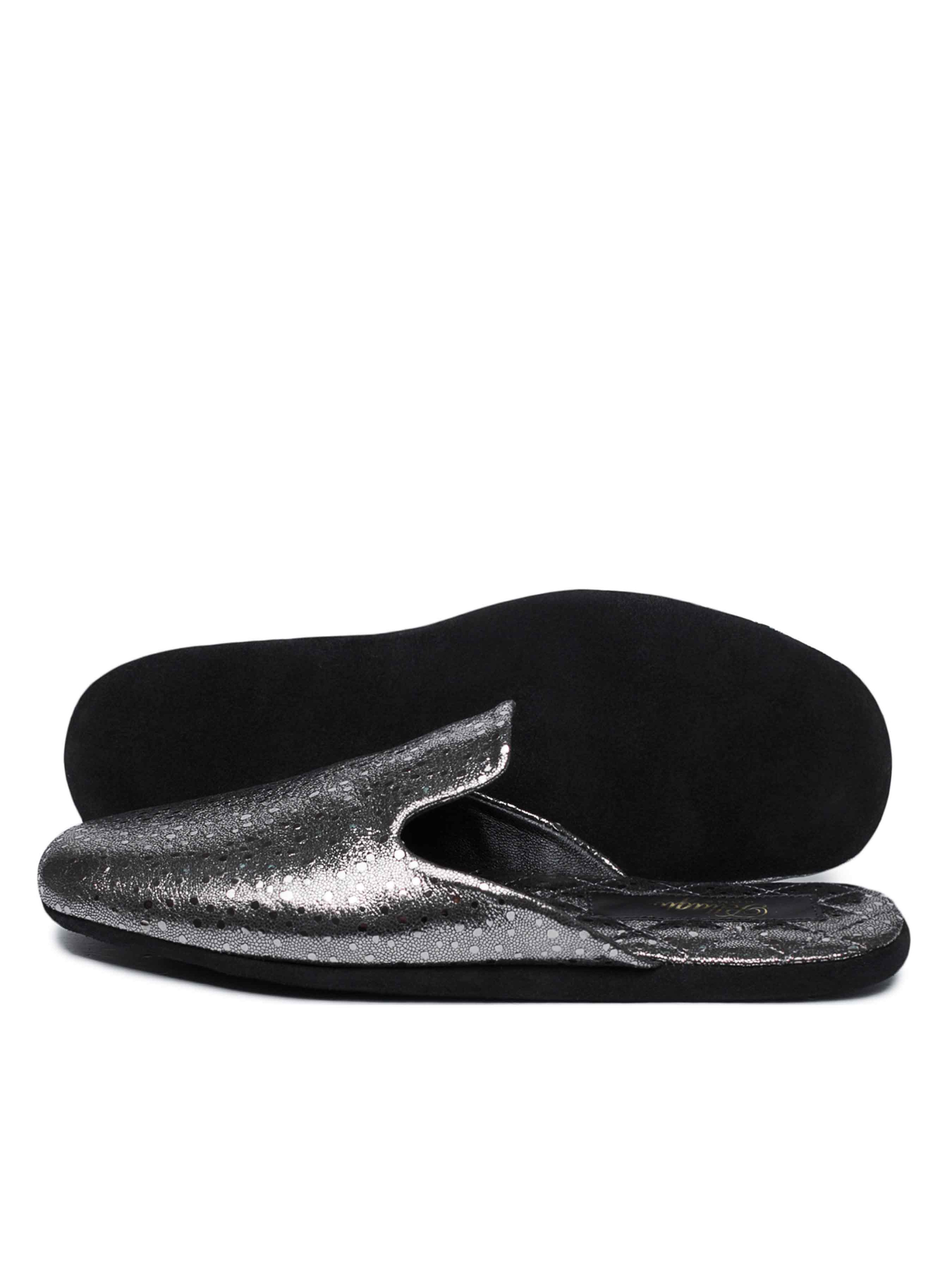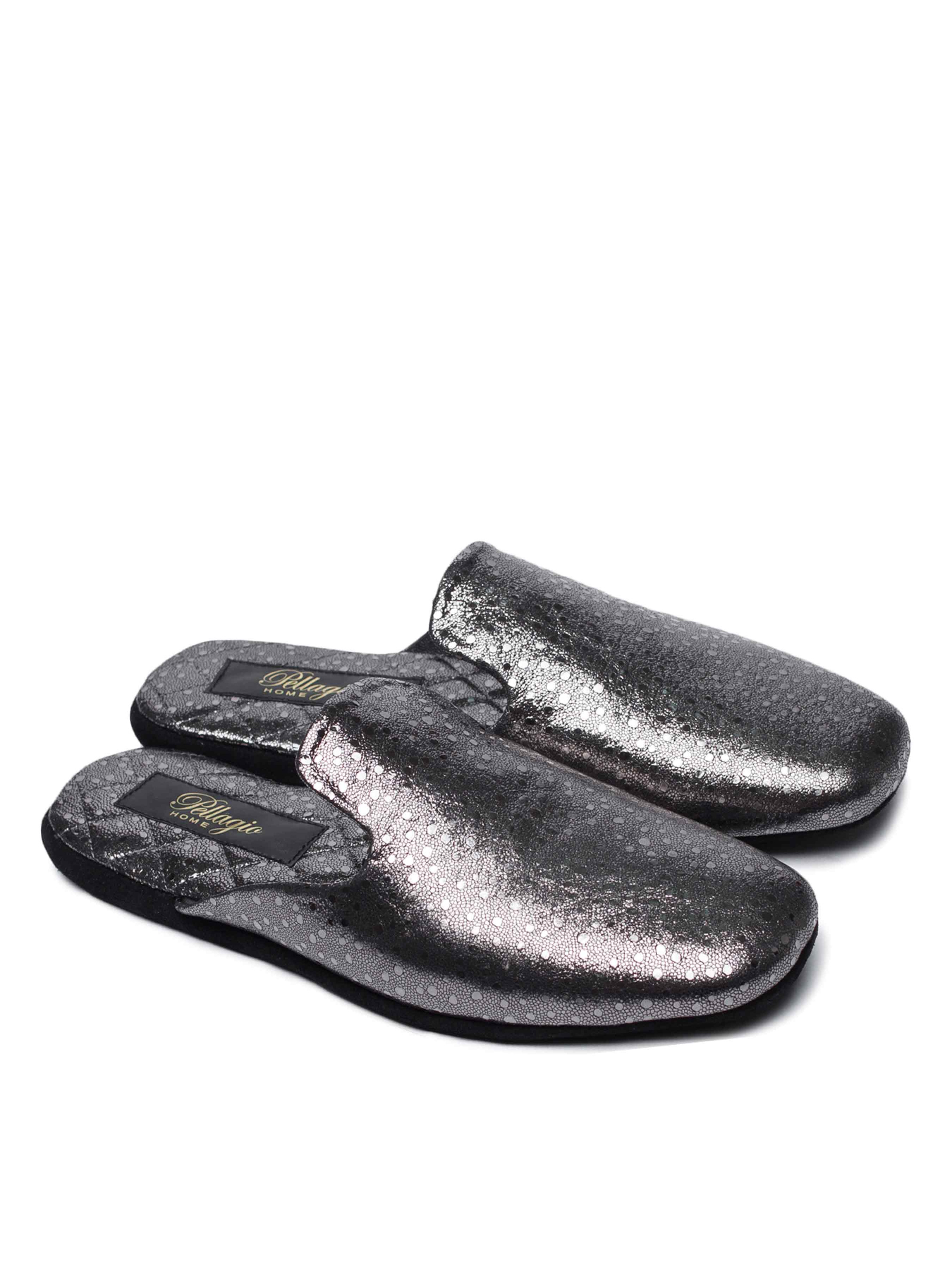 Домашние мюли, сделанные из натуральной кожи в серебре наполненны восточным шиком. Особое внимание привлекает простроченная стелька в розовом цвете, которая делает мюли еще более уютными и домашними. Рекомендуем приобретать Ваш привычный размер