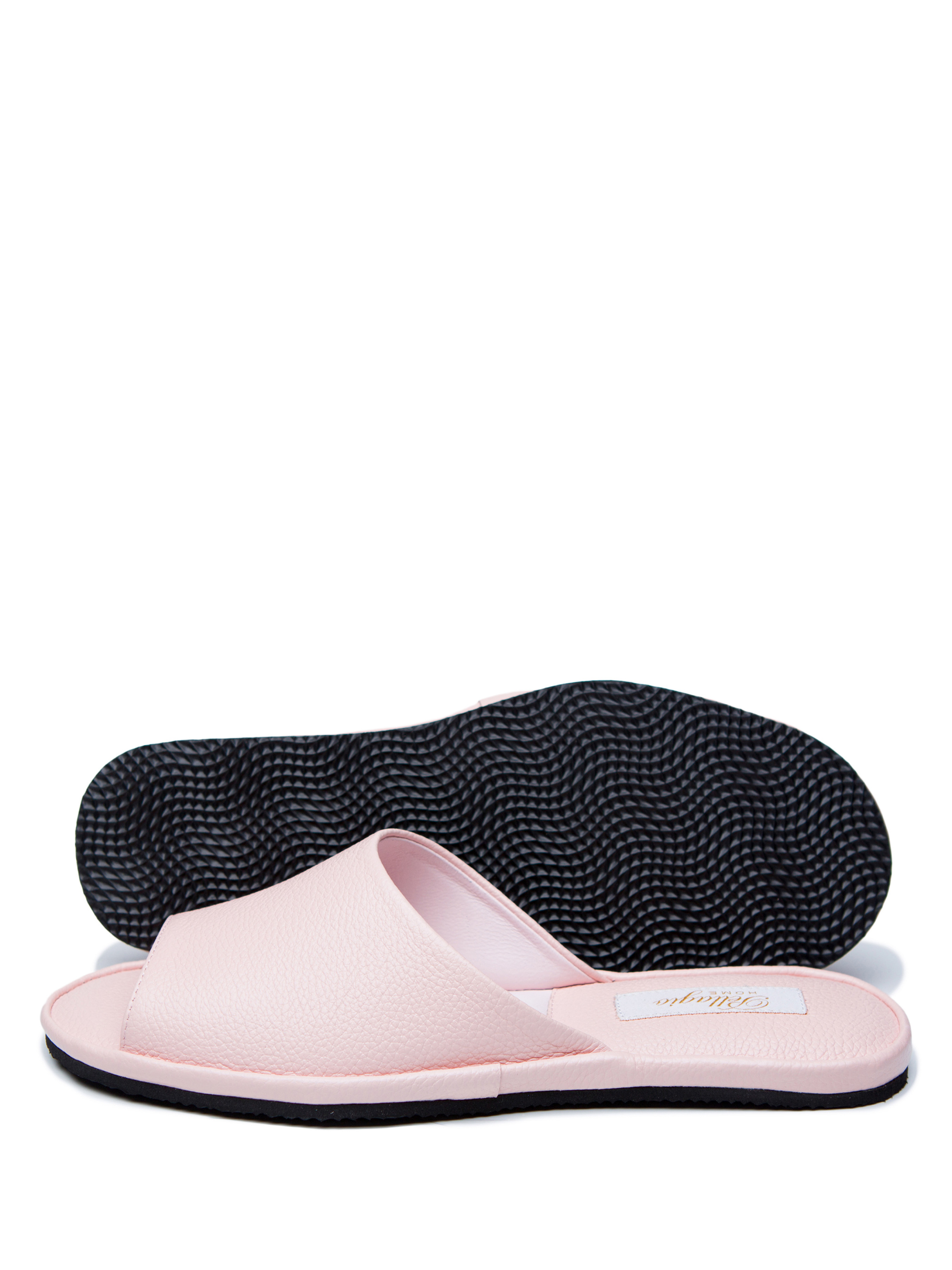 Изысканные тапочки с открытым носком выполнены из мягкой зернистой кожи нежно-розового цвета. Благодаря правильной конструкции союзки тапочки практически не ощущаются на ноге, но при этом надежно держатся на ней. Легкая и бесшумная подошва из EVA позволит выйти в тапочках даже на открытую террасу. Модель подходит для более узкой стопы. Рекомендуем покупать размер в размер.