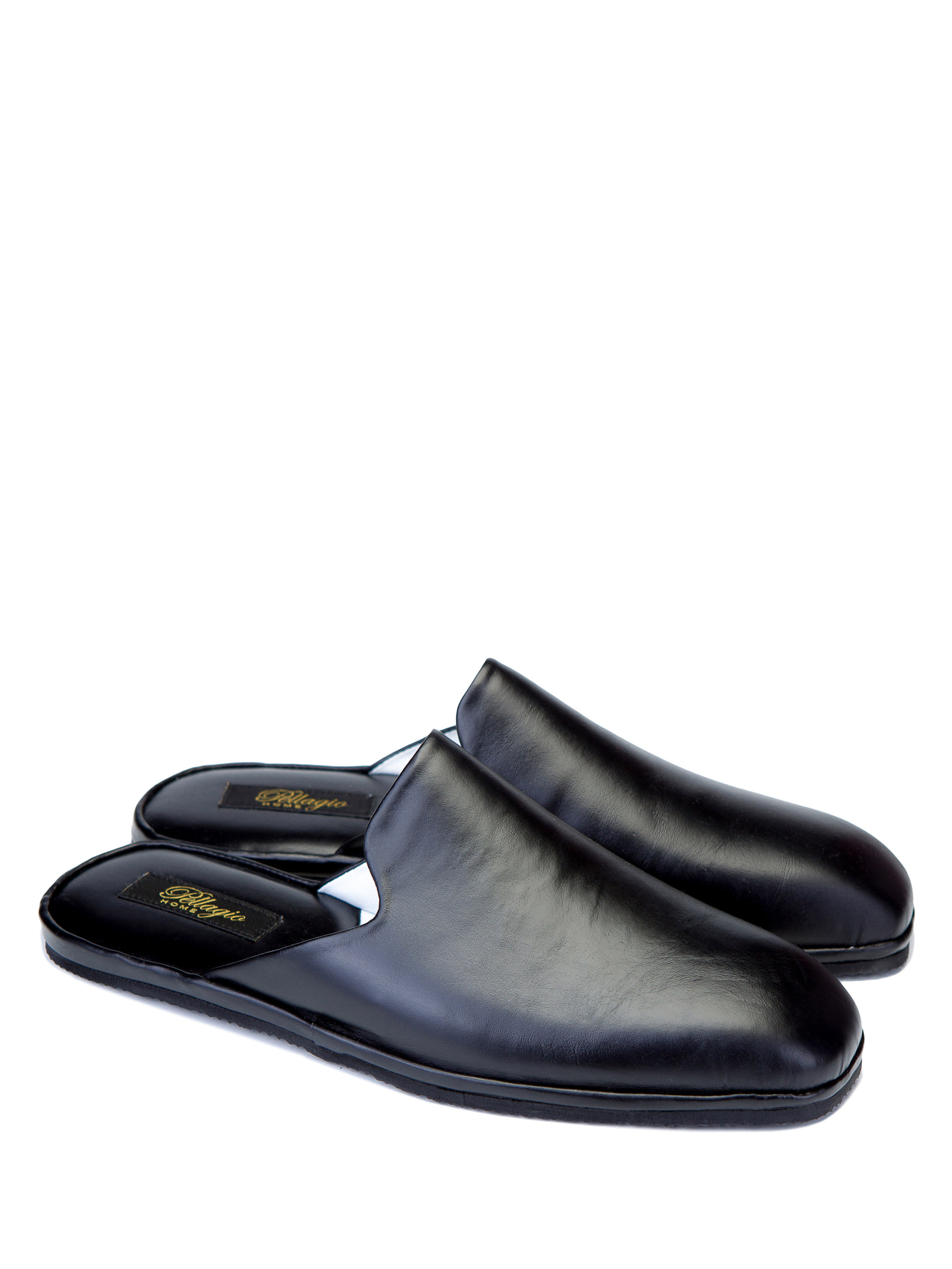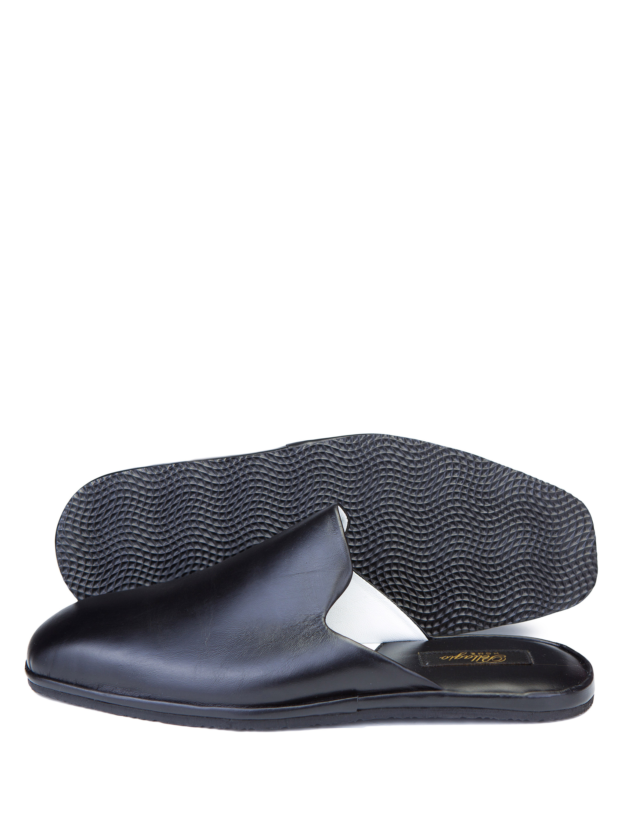 Домашние тапочки с фигурным вырезом, как у слиперов, сшиты из плотной и эластичной кожи черного цвета. Внутри они отделаны приятной на ощупь, мягкой гладкой кожей. Модель выполнена в строгом классическом стиле. Анатомически правильная колодка делает данные тапочки очень комфортными, а легкая подошва из EVA делает их практичными. Рекомендуем приобретать размер в размер.