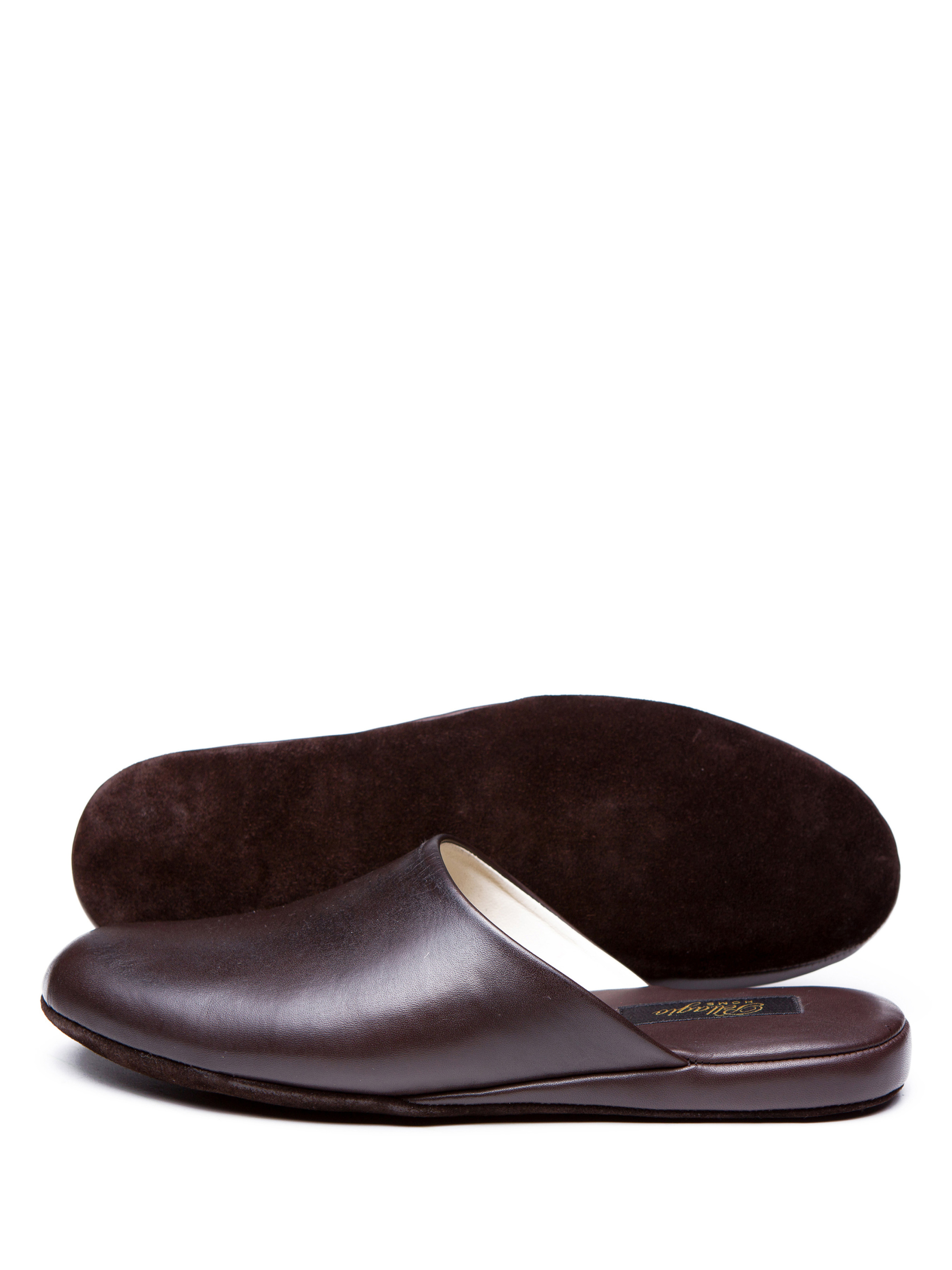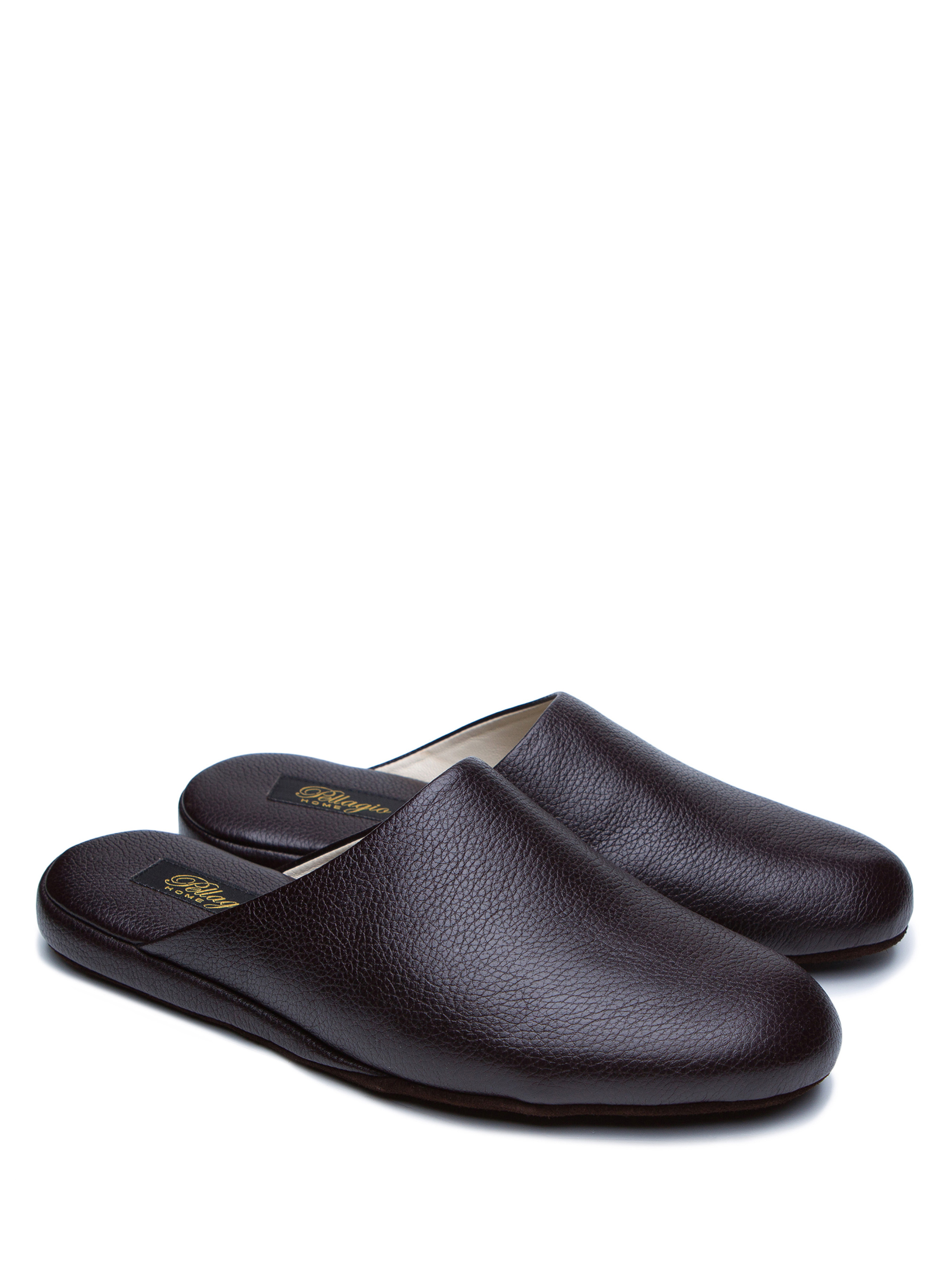 Домашние тапочки без задника выполнены из мягкой зернистой кожи в строгом коричневом цвете. Анатомическая форма помогает стопе оставаться в естественном положении, а гибкая подошва из прочной замши не скользит на гладких поверхностях и обеспечивает ногам комфорт, не утяжеляя обувь. Рекомендуем приобретать размер в размер