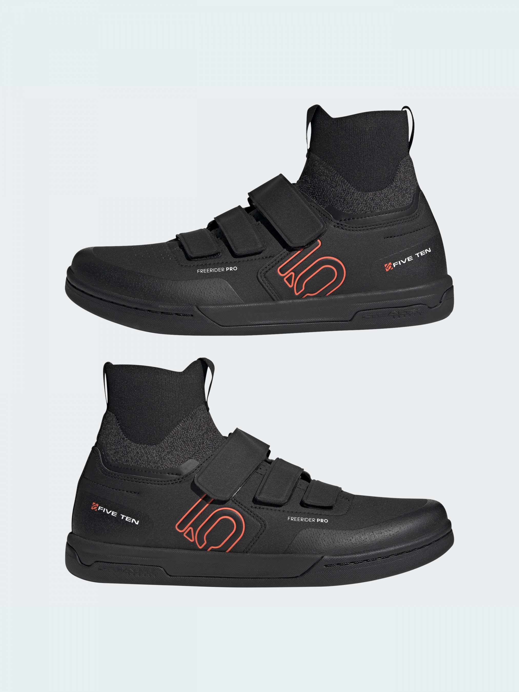 Кроссовки adidas Five Ten Freerider Pro созданы специально для маунтин-байка. Они сочетают легендарный контроль педалей классической модели Freerider с улучшенной защитой пальцев, голенищем средней высоты и внутренней подкладкой D30 на лодыжке для дополнительного комфорта. Резиновая подошва Stealth® S1 Dotty обеспечивает надежное сцепление с мокрой и скользкой поверхностью, а также с педалями для полного контроля.