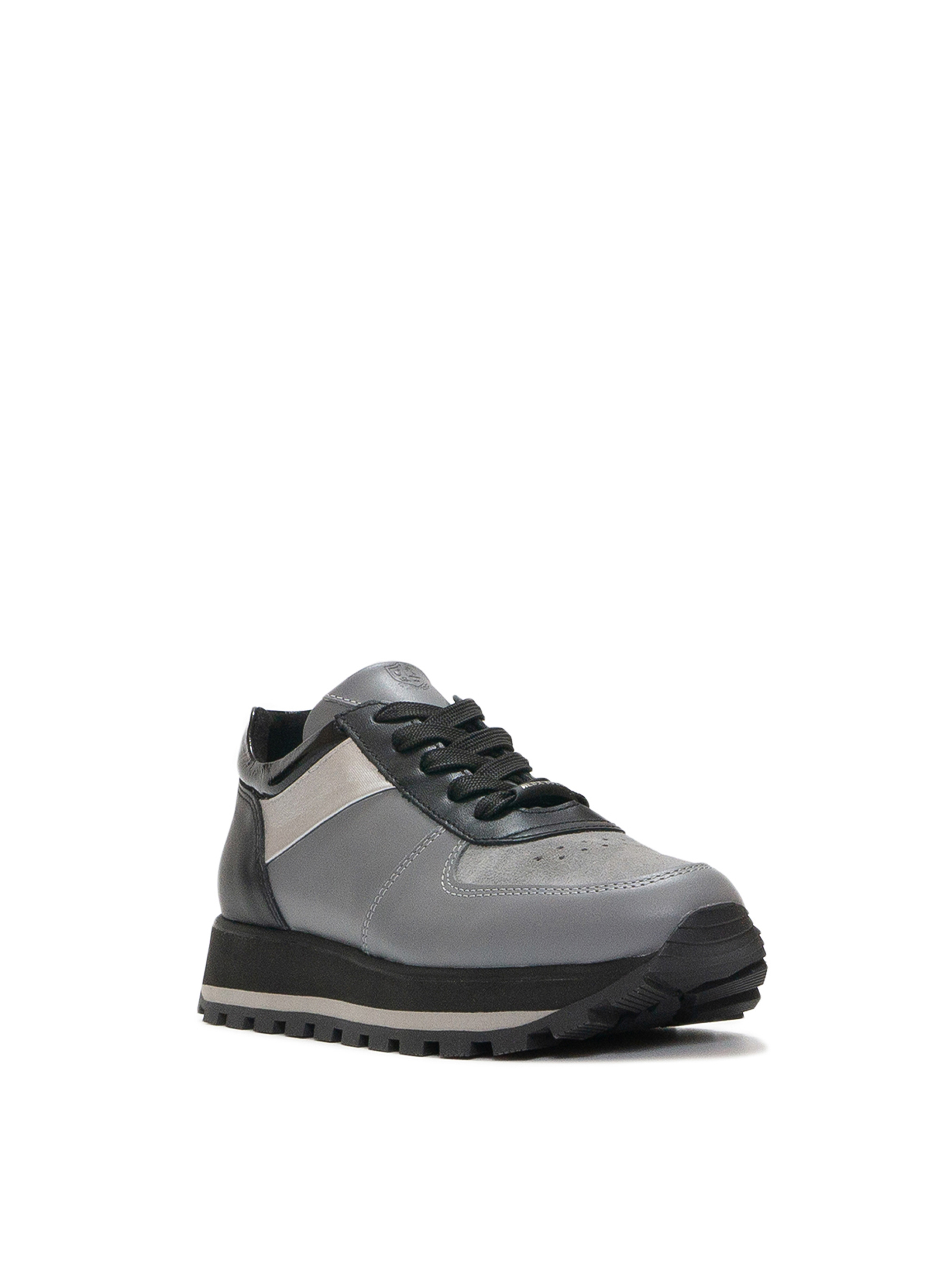 В этой модели кроссовок привлекает все: и закругленная трендовая форма подошвы, и интересное цветовое решение, реализуемое как на основной части обуви, так и на подошве. Сочетание черного и серого выглядит оригинально и актуально. Каждый цвет играет свою партию. Форма и цветовая гамма кроссовок позволяет их носить с юбками и платьями, пуховиками и пальто. Вы всегда будете выглядеть стильно и ярко, чувствуя при этом удобно в кроссовках ALEX BELL