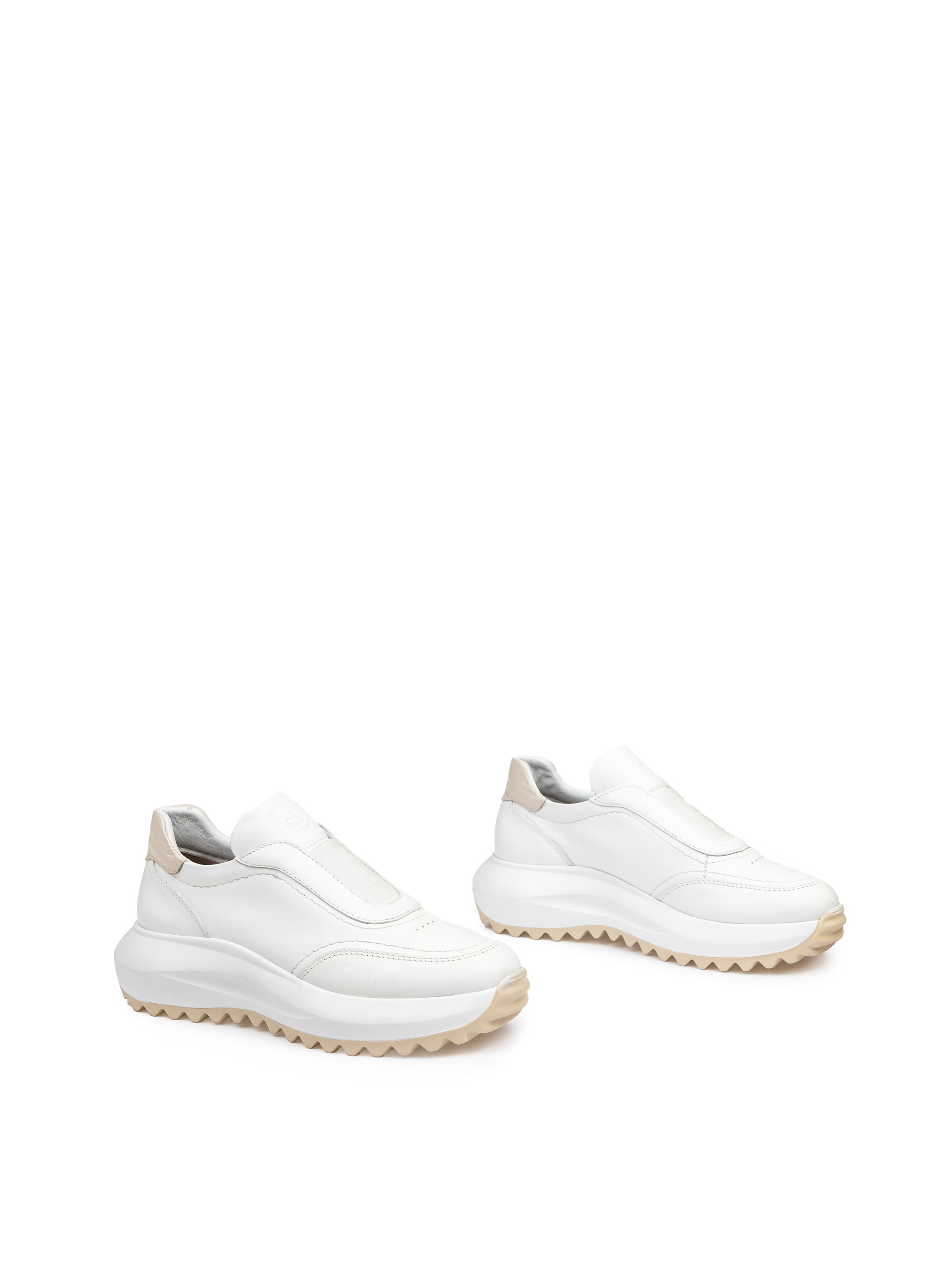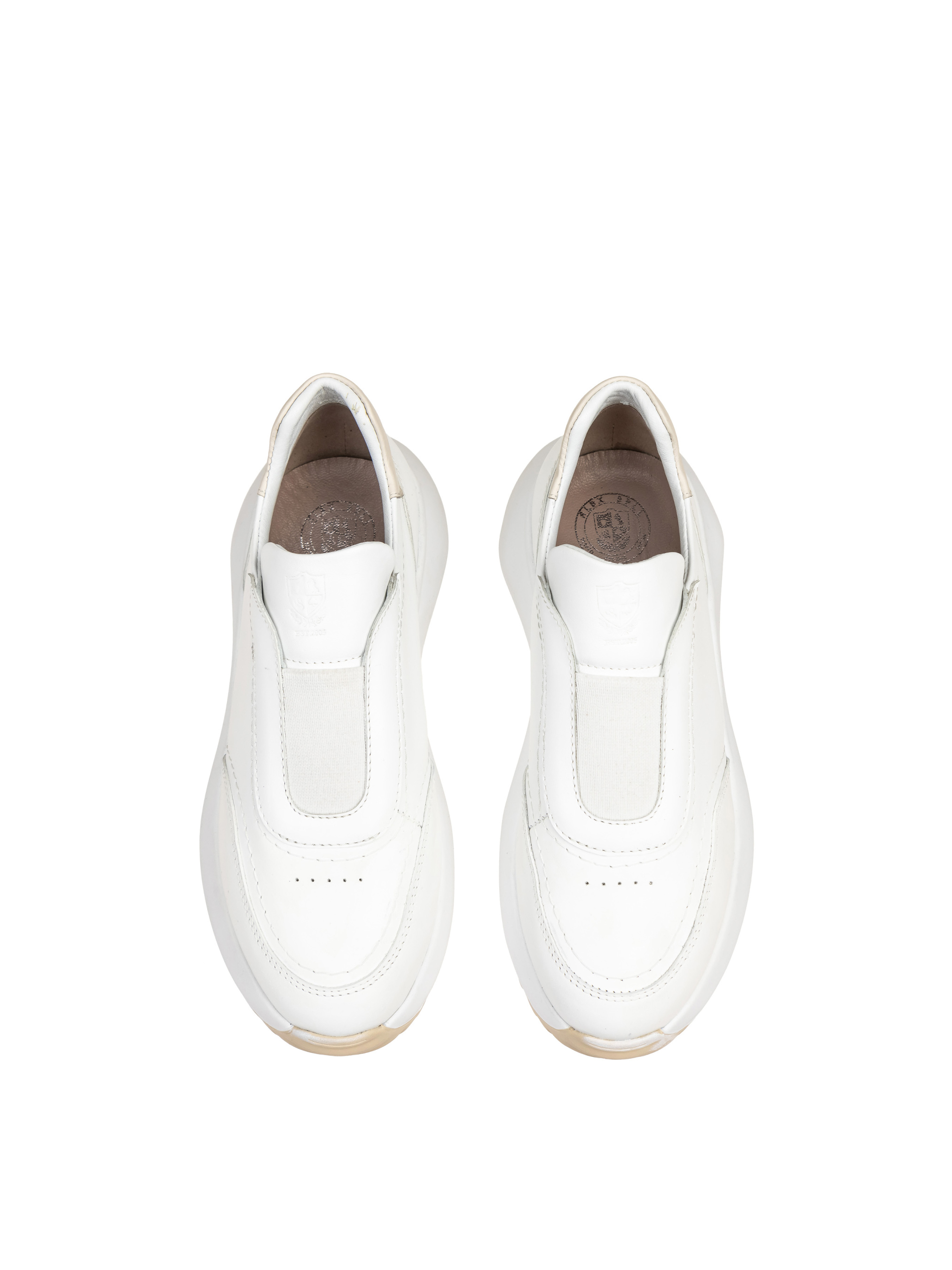 Эта изысканная белая модель кроссовок сразу привлекает внимание. Белый цвет делает кроссовки заметным акцентом образа как делового, так и романтического, спортивного, городского стиля, а цвет матовой белой подошвы только придает яркости этому дизайнерскому решению. Литая подошва трендовой формы способствуют эргономичности: в кроссовках будет удобно преодолевать даже значительные расстояния, не идя на компромисс по стилю и элегантности. С такими белыми кроссовками ALEX BELL любой ваш день будет ярким!