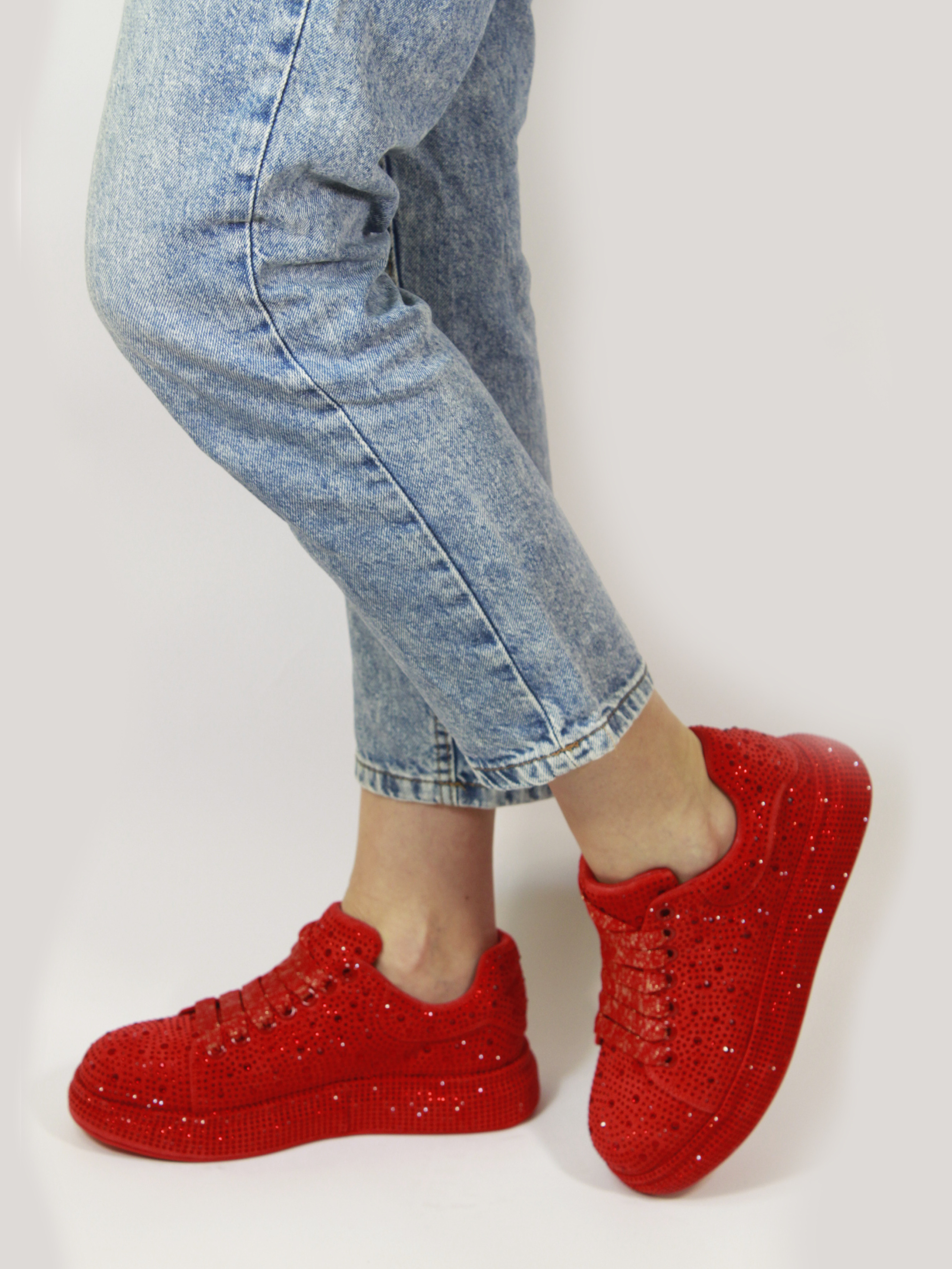 Кроссовки со стразами модель 710-13-red