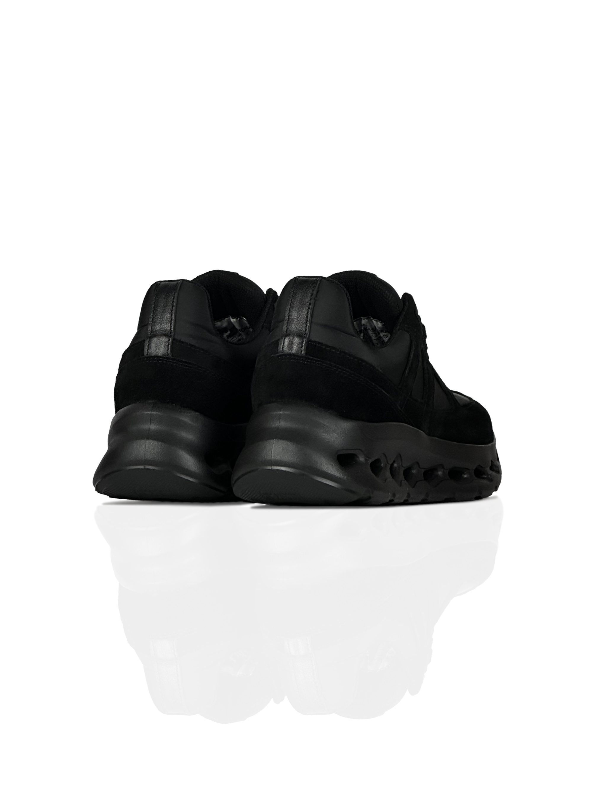 Сезон: Весна/Осінь Зовнішній матеріал: Спилок-замша — натуральна шкіра, що отримується в процесі шарування, після зняття лицьового шару шкіри. Має м’яку, бархатисту поверхню, характеризується легкістю, порівняною водостійкістю та повітропроникністю, добре зберігає тепло всередині взуття. Спилок зовні схожий на велюр, але відрізняється більшою щільністю; нейлонова сітка. Підкладка: Тканина текстиль Устілка: Легка з піни EVA Підошва: EVA (етиленвінілацетат) - підошва з пористою структурою, наповнена мікроскопічними бульбашками повітря, що сприяє не лише легкості, але й відмінній теплоізоляції. Еластична, пружна та м'яка, з чудовими амортизуючими властивостями, цей матеріал має довгий термін експлуатації та стійкий до зовнішніх впливів та морозів. У взутті з такою підошвою ноги менше втомлюються, ходити зручно та комфортно. Застібка: Шнурівка Колір: Чорний Укріплений задник, що стабілізує п’яту і утримує стопу Висота взуття: 11 см (найменший розмір) - 12 см (найбільший розмір) Висота підошви: 2,5 см (передня частина), 4,5 см (задня частина) Відповідність розміру: Модель йде розмір на розмір