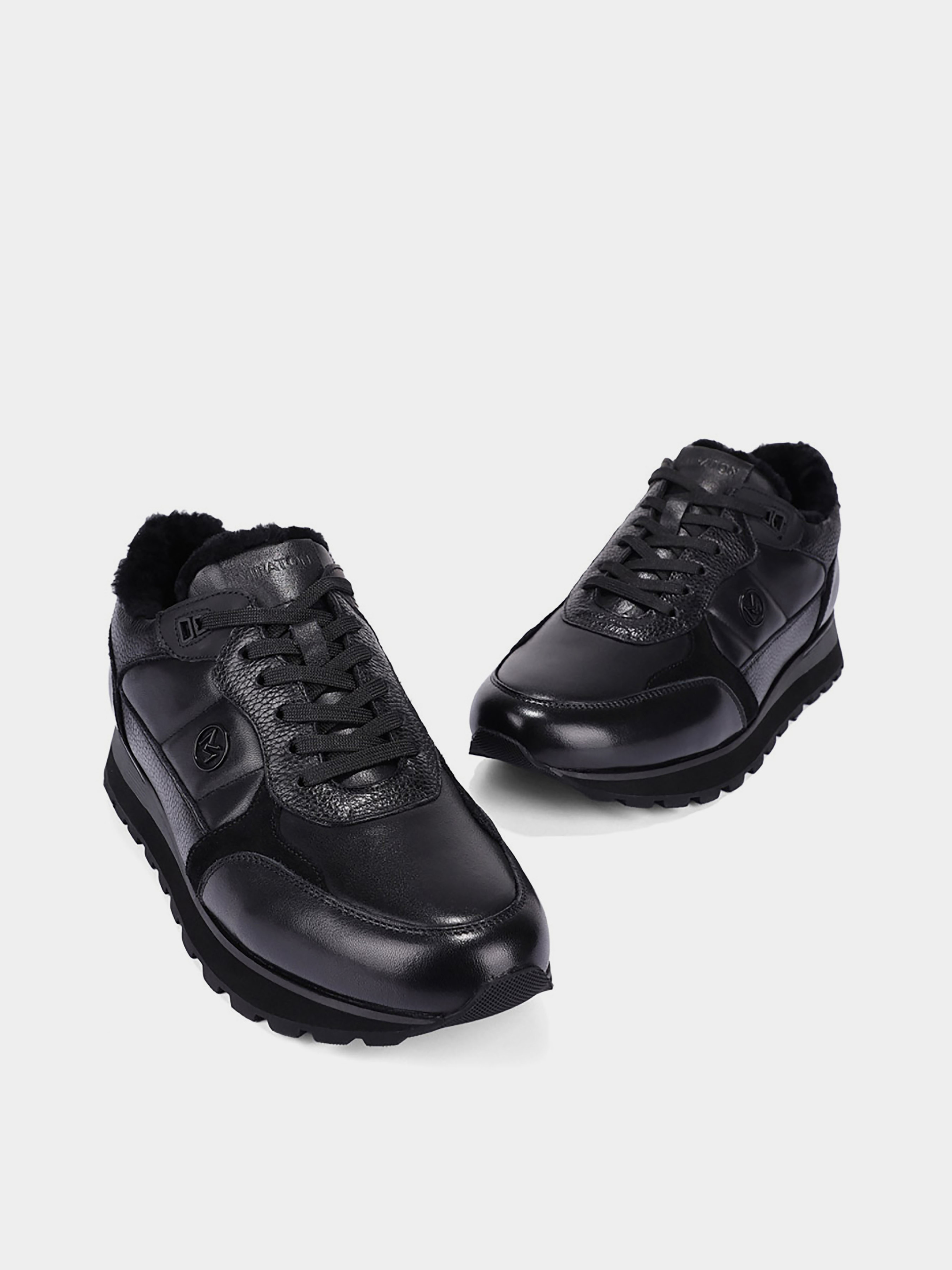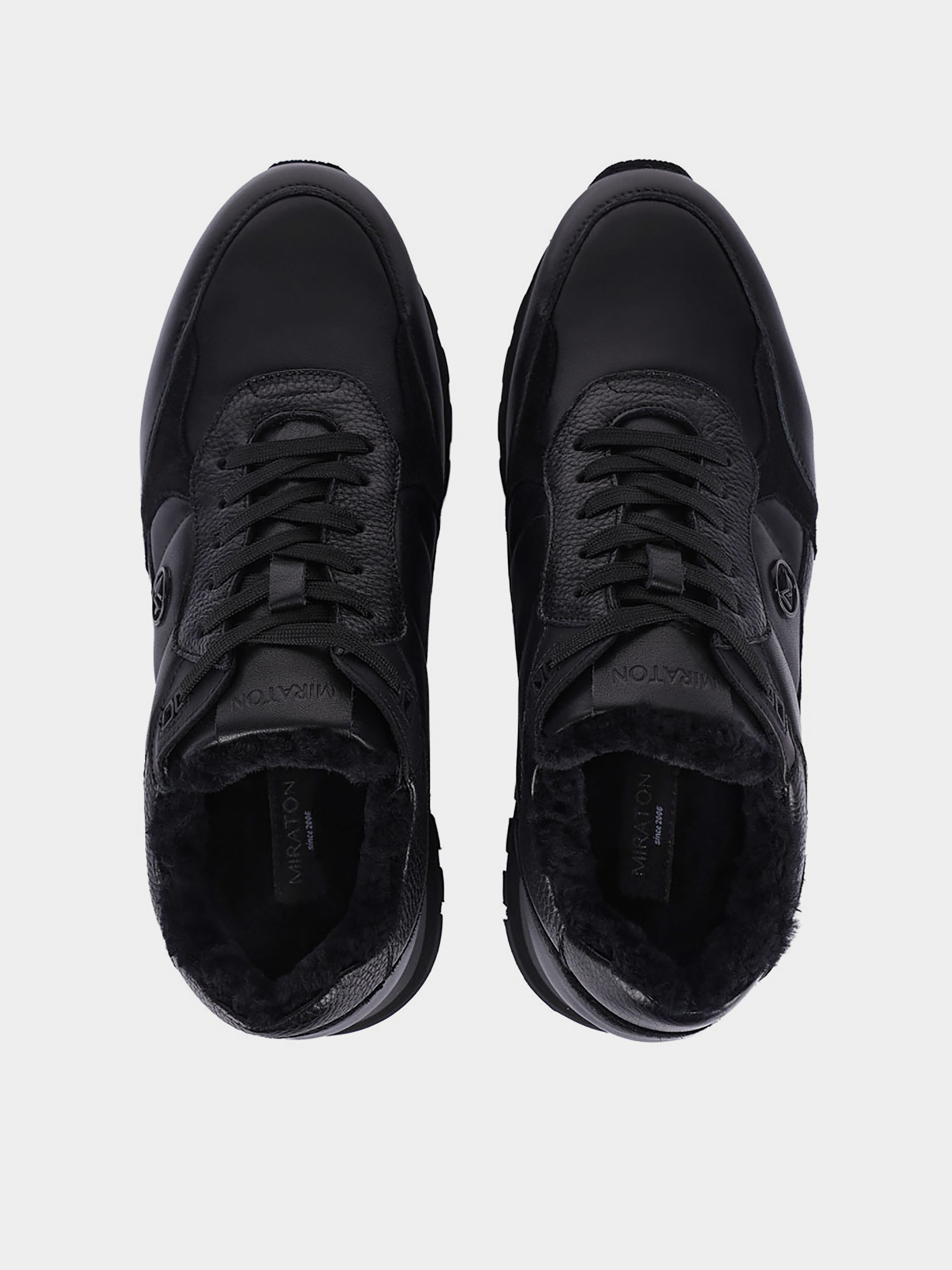 Мужские кроссовки MIRATON кожаные черные Материал: кожа. Подкладка: натуральный мех. Бренд: MIRATON. Цвет: черный. Подошва: толстая. Стиль: спорт. Cезон: зима.