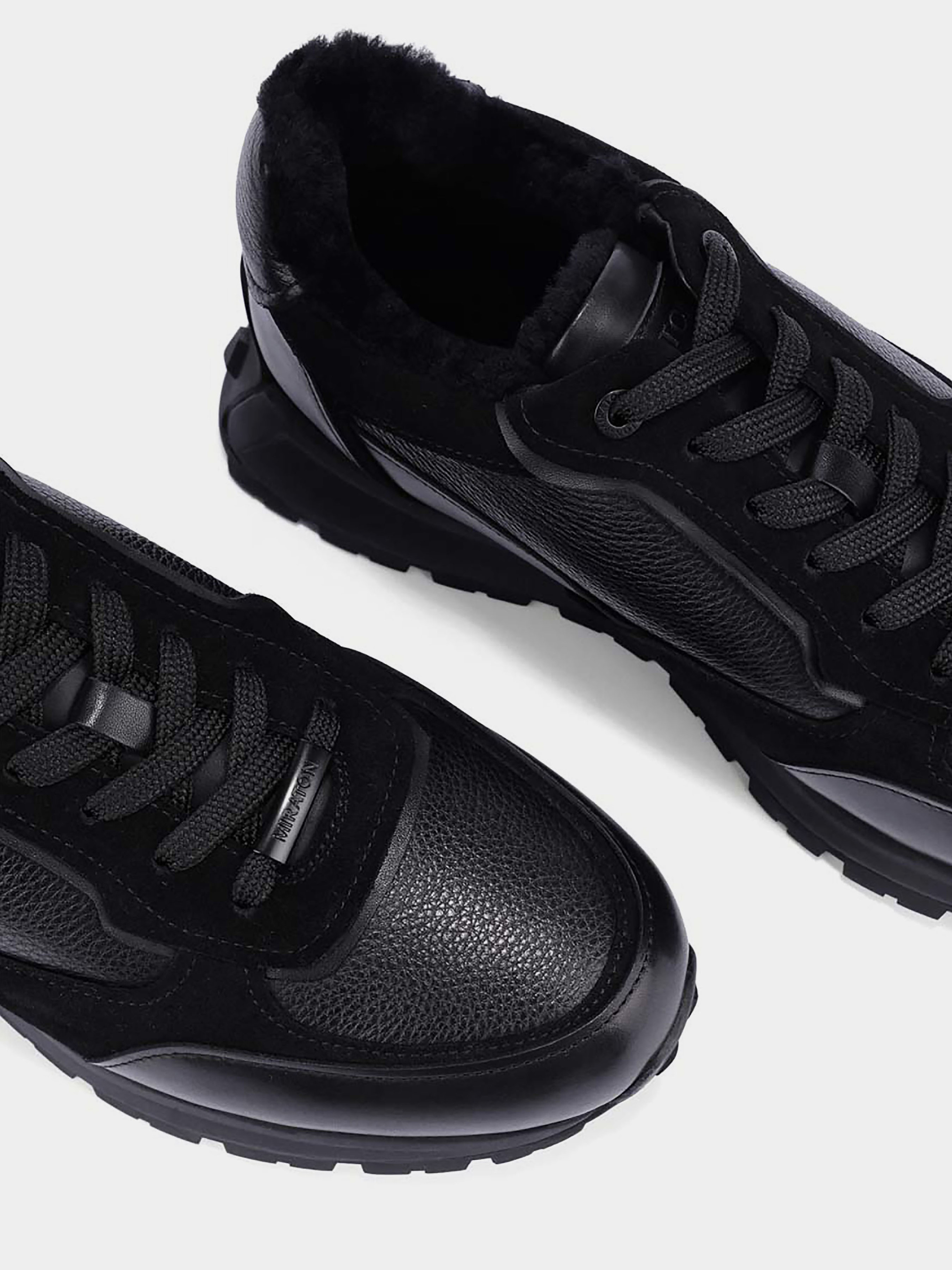 Мужские кроссовки MIRATON кожаные черные Материал: кожа. Подкладка: натуральный мех. Бренд: MIRATON. Цвет: черный. Подошва: толстая. Вид каблука: низкий. Стиль: спорт. Cезон: зима.