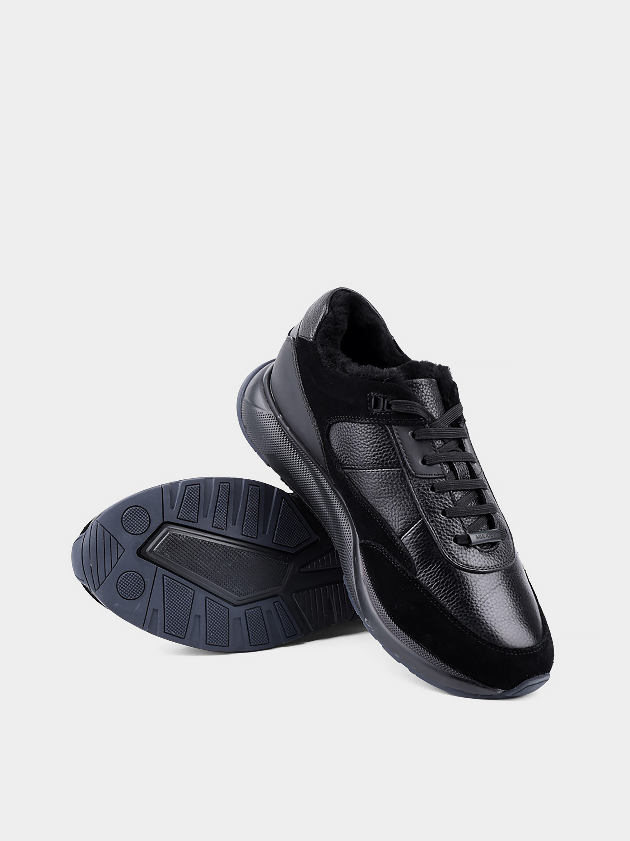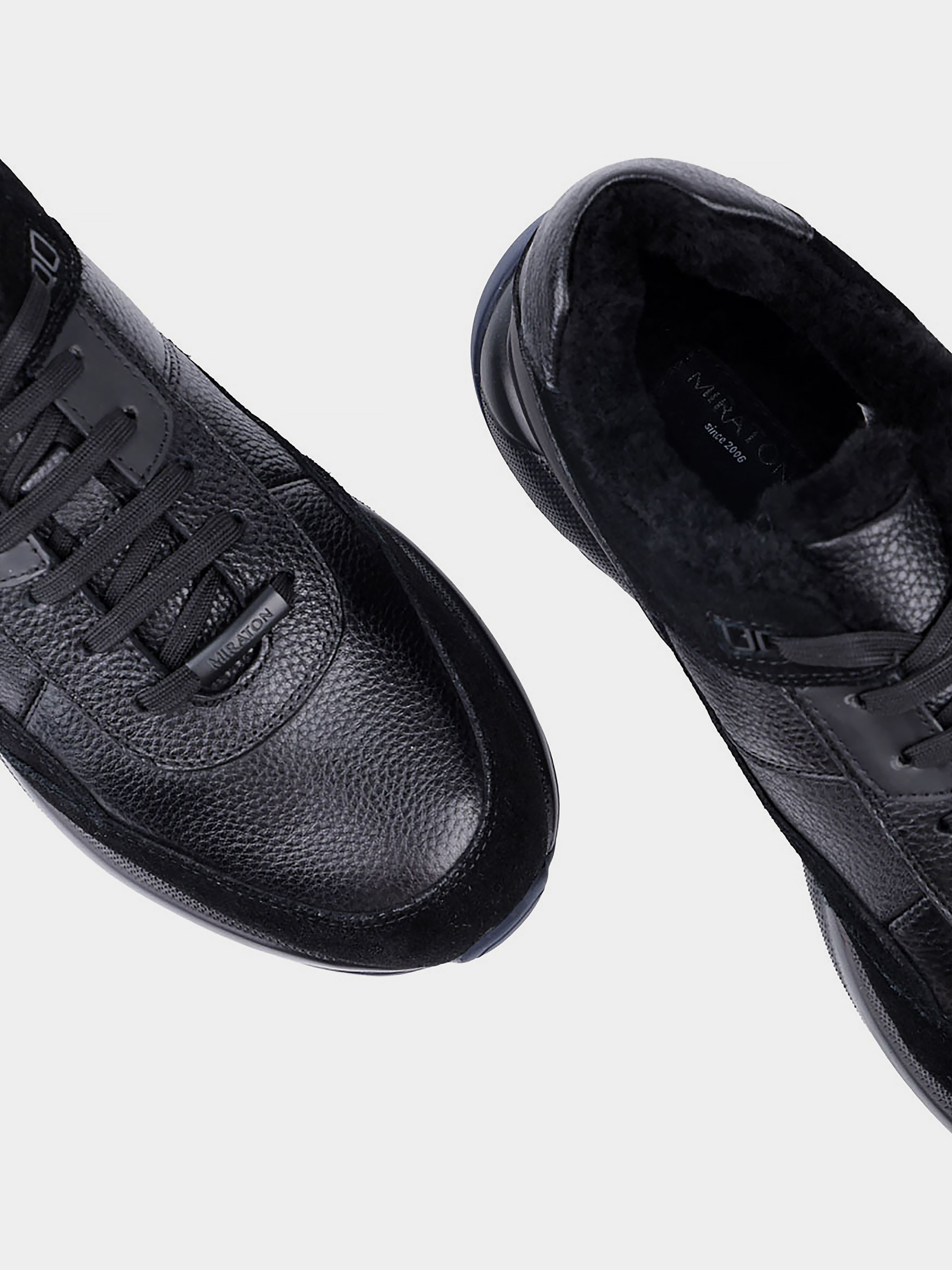 Мужские зимние кожаные кроссовки MIRATON черные Цвет: черный. Материал: кожа. Стиль: спорт. Подкладка: натуральный мех