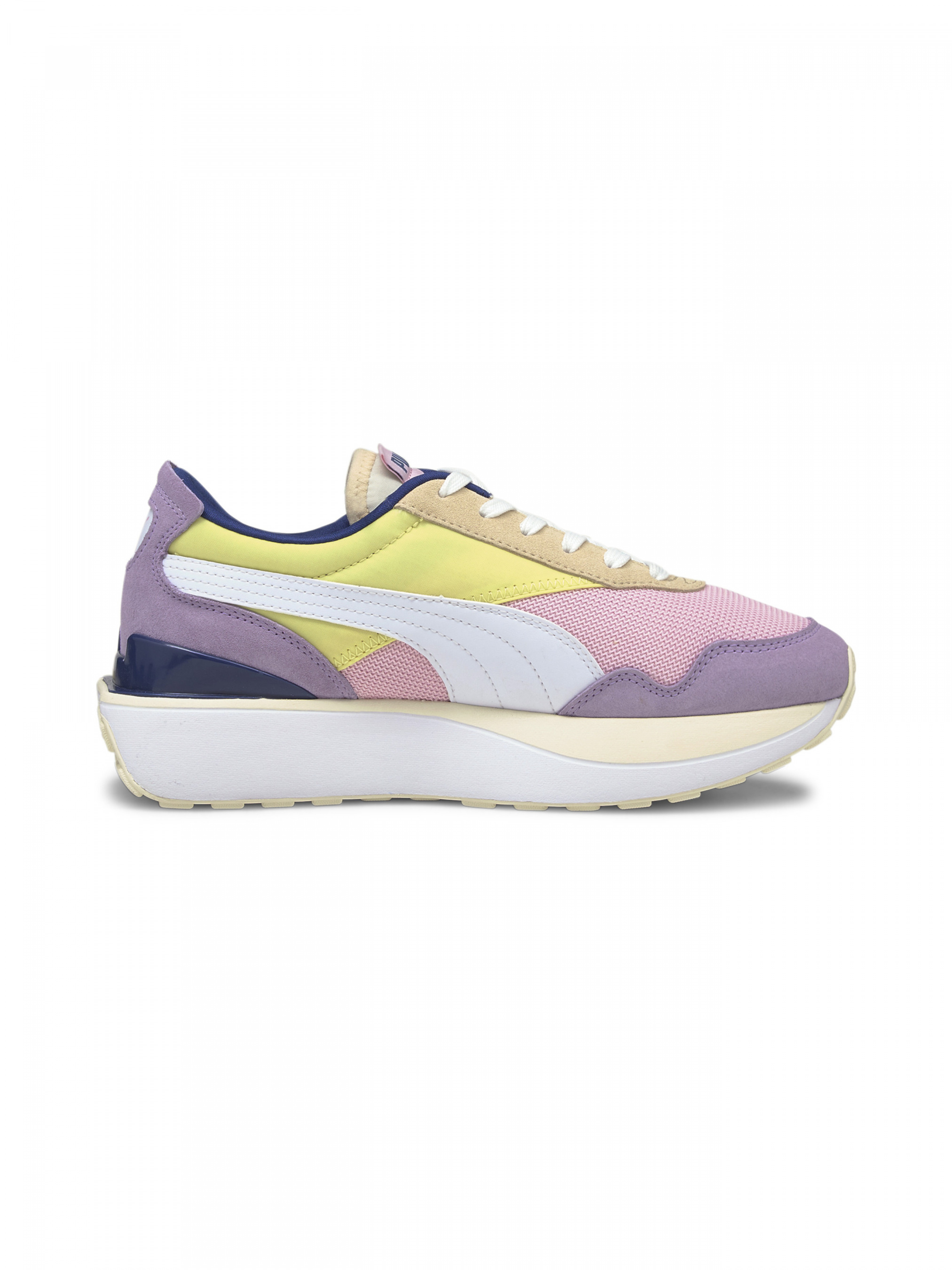 Вдохновленные красотой винтажных автомобилей, кроссовки Cruise Rider Women's Trainers отличаются игривой многослойной подошвой и уникальным цветовым сочетанием, что делает образ эксклюзивным. Промежуточная подошва IMEVA обеспечивает легкость и комфорт. Ваши ноги счастливы. Детали Коллекция: Весна-лето 2021 Стиль: Стрит-стайл Характеристики: Материал верха: 55% текстиль, 30% натуральная кожа, 15% искусственная кожа (сетка, накладки) Материал подошвы: 77% ЭВА, 15% резина, 8% TPU; промежуточная подошва IMEVA – для легкости и комфорта Женские кроссовки Низкий силуэт На шнуровке – для плотной посадки Текстильная подкладка Стелька из текстиля декорирована брендингом PUMA (принт) На язычке – ярлычок с надписью «PUMA» Фирменные полоски PUMA Formstrip (искусственный материал) – в средней части и сбоку Надпись «PUMA» сбоку Страна-производитель: Тайвань