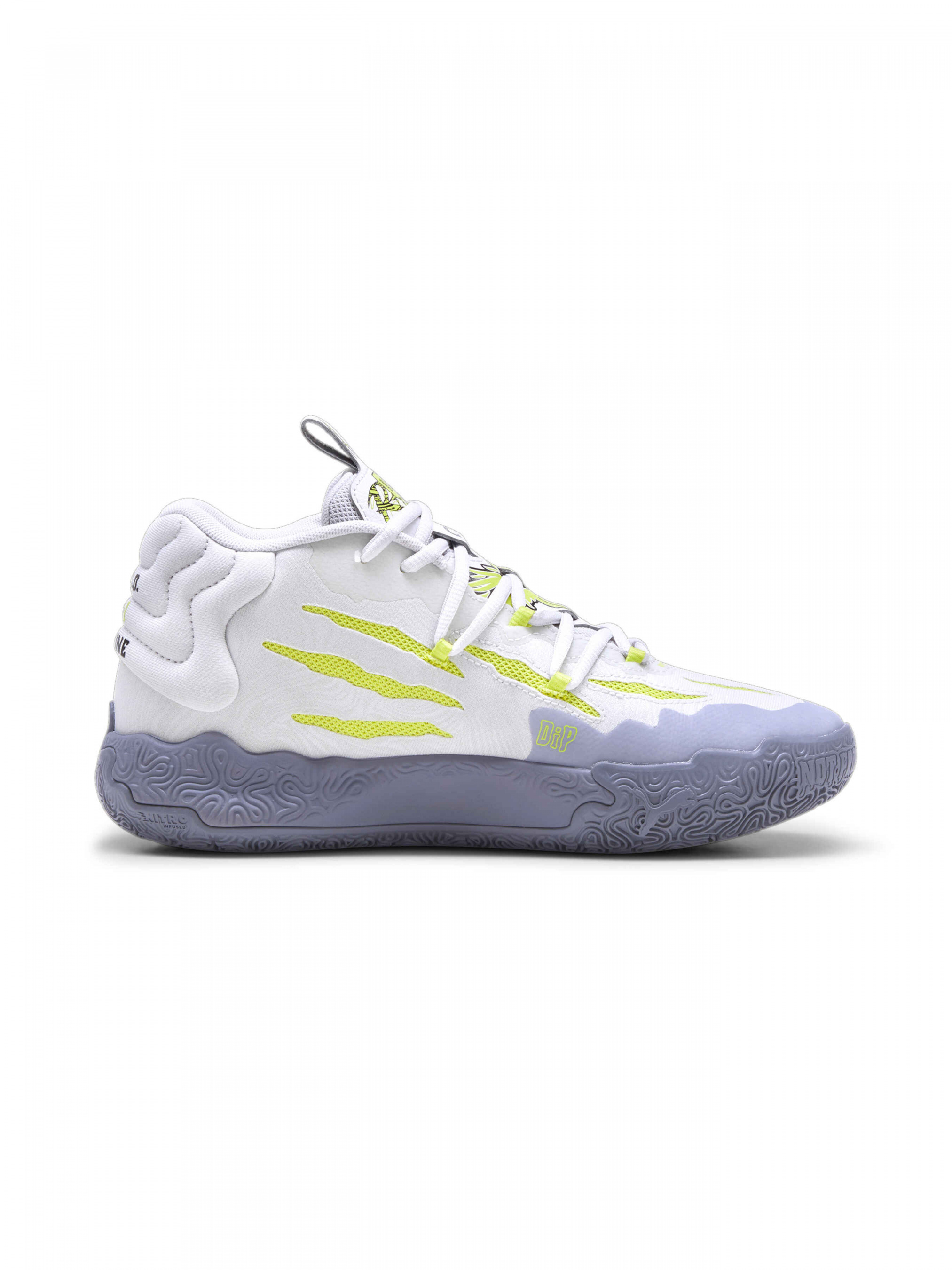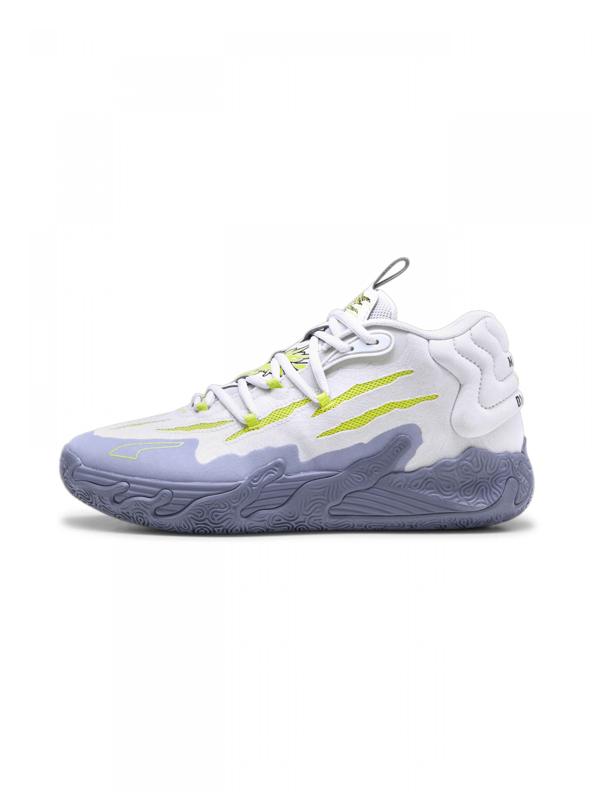 Третья именная модель кроссовок LaMelo Ball MB.03 перенесет вас в неизвестную ранее альтернативную вселенную — мир Мело. Благодаря эффектному внешнему слою из полупрозрачной резины и специально разработанному трикотажному верху, проглядывающему сквозь фигурные вырезы в виде царапин, кроссовки MB.03 действительно выглядят словно пришельцы из другого мира. Полупрозрачная резиновая подошва и космические технологии от PUMA Hoops, в том числе пеноматериал NITRO, позволят вам подготовиться к любому соревнованию, даже межпланетному. Детали Коллекция: Осень-Зима 2023 Стиль: Спортивный Вид спорта: Баскетбол Технологии: NITRO Infused, TPU Характеристики Материал верха: Текстильные материалы Материал подошвы: Резина NITRO Infused: Пеноматериал с замкнутоячеистой структурой, наполненный азотом, разработан для обеспечения гибкости и амортизации при минимальном весе Специально разработанный сетчатый верх Усиленный задник из TPU Промежуточная подошва NITRO Infused Износостойкая, нескользящая резиновая подошва Элементы брендинга LaMelo Ball Страна-производитель: Вьетнам