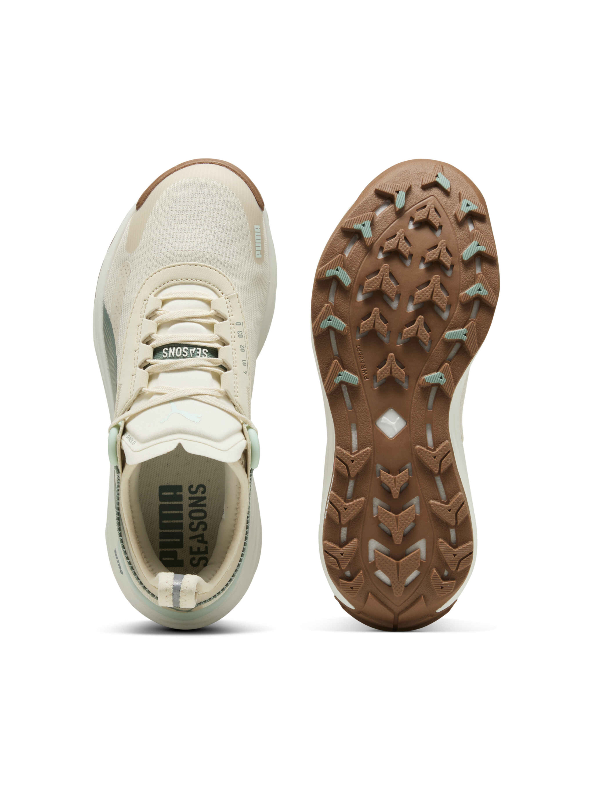 В прочных кроссовках Voyage NITRO™ 3 вам по плечу любой ландшафт. Эта обновленная модель снабжена полноценной межподошвой NITROFOAM™, что сделало кроссовки более легкими и упругими, специально для покорения дистанции. Резиновая подошва PUMAGRIP ATR модернизирована с использованием технологии PWRADAPT, которая позволяет выступам на подметке двигаться вместе с поверхностью, обеспечивая превосходное сцепление на пересеченной местности. Новый, более широкий верх усилен технологией PWRTAPE для поддержки и защиты стопы, а отверстия на передней части создают отличную вентиляцию. Характеристики Вид спорта:Трейл/Бег Материал верха:54,25% текстиль, 45,75% синтетические материалы Материал подошвы: резина Верх по крайней мере на 20% изготовлен из переработанных материалов NITROFOAM™: усовершенствованный вспененный материал, наполненный азотом. Обеспечивает превосходную упругость и амортизацию, не утяжеляя обувь Технология PUMAGRIP: резиновая смесь, предназначенная для сцепления на льду, грязи и неустойчивых поверхностях, разработана для трейлраннинга Обычная посадка Верх из сетчатого материала Высота подошвы: 35 мм / 27 мм Дроп: 8 мм Вес: 292 г Рекомендовано для: нейтральных пронаторов