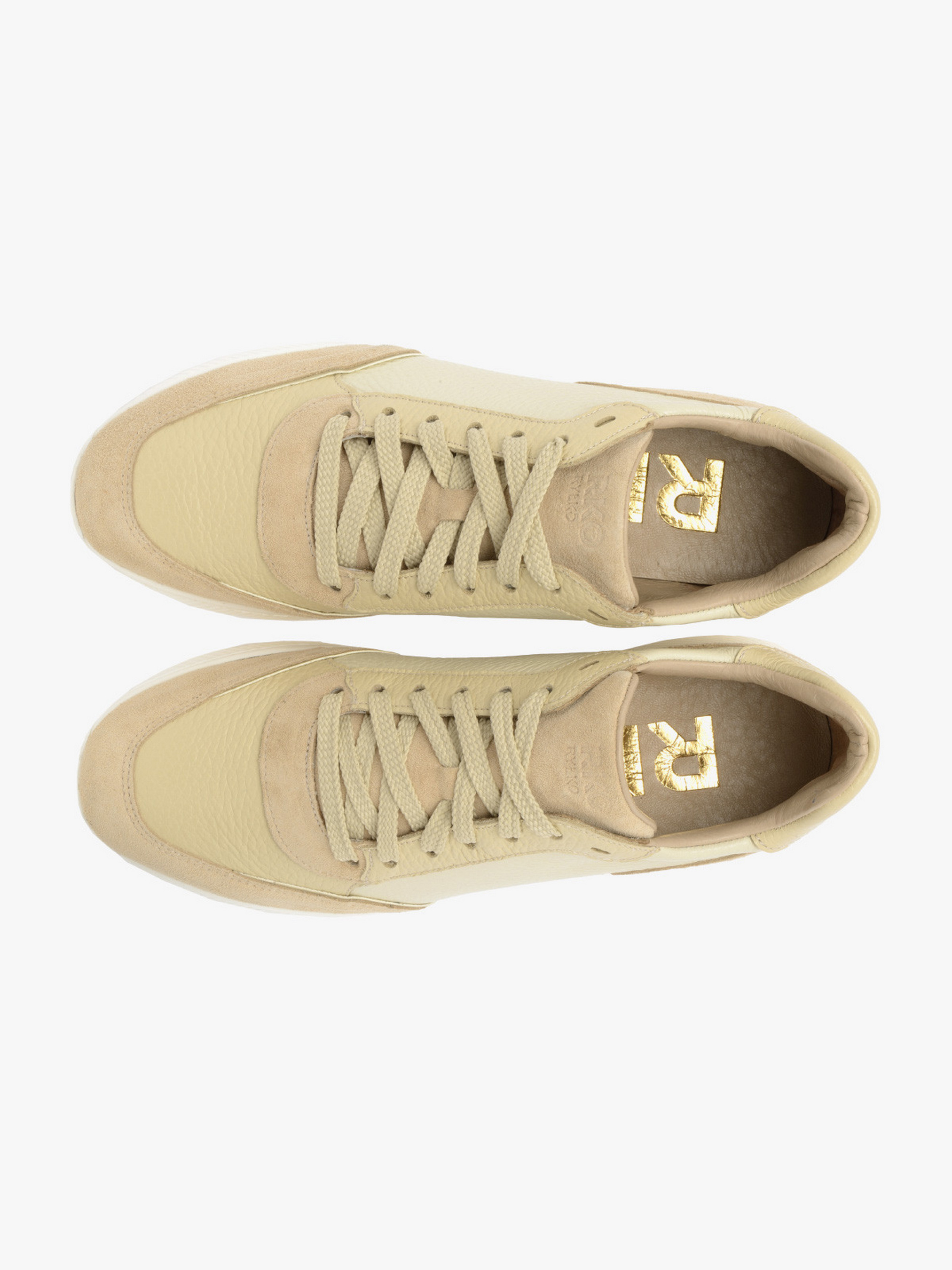 Кожаные кроссовки RYLKO из серии #RKO комбинированного цвета. Изготовлены из высококачественной лицевой кожи и вставками замша, подошва плоская - высотой 3 см. Подходят на стандартную (среднюю) полноту стопы. С технологией R.FLY – это необычно лёгкая и пружинящая подошва, выполненная из пенки ЭВА, обеспечивает высокий комфорт пользования. В этой модели обуви под стелькой имеется амортизирующая пена, содержащая активированный уголь. Это придает ей сильные антибактериальные и противогрибковые свойства. Пена перфорирована, благодаря чему обеспечивает циркуляцию воздуха и впитывает излишнюю влагу. Пена мягкая и плотно прилегает к стопе. Эти свойства значительно повышают комфорт пользования обувью.