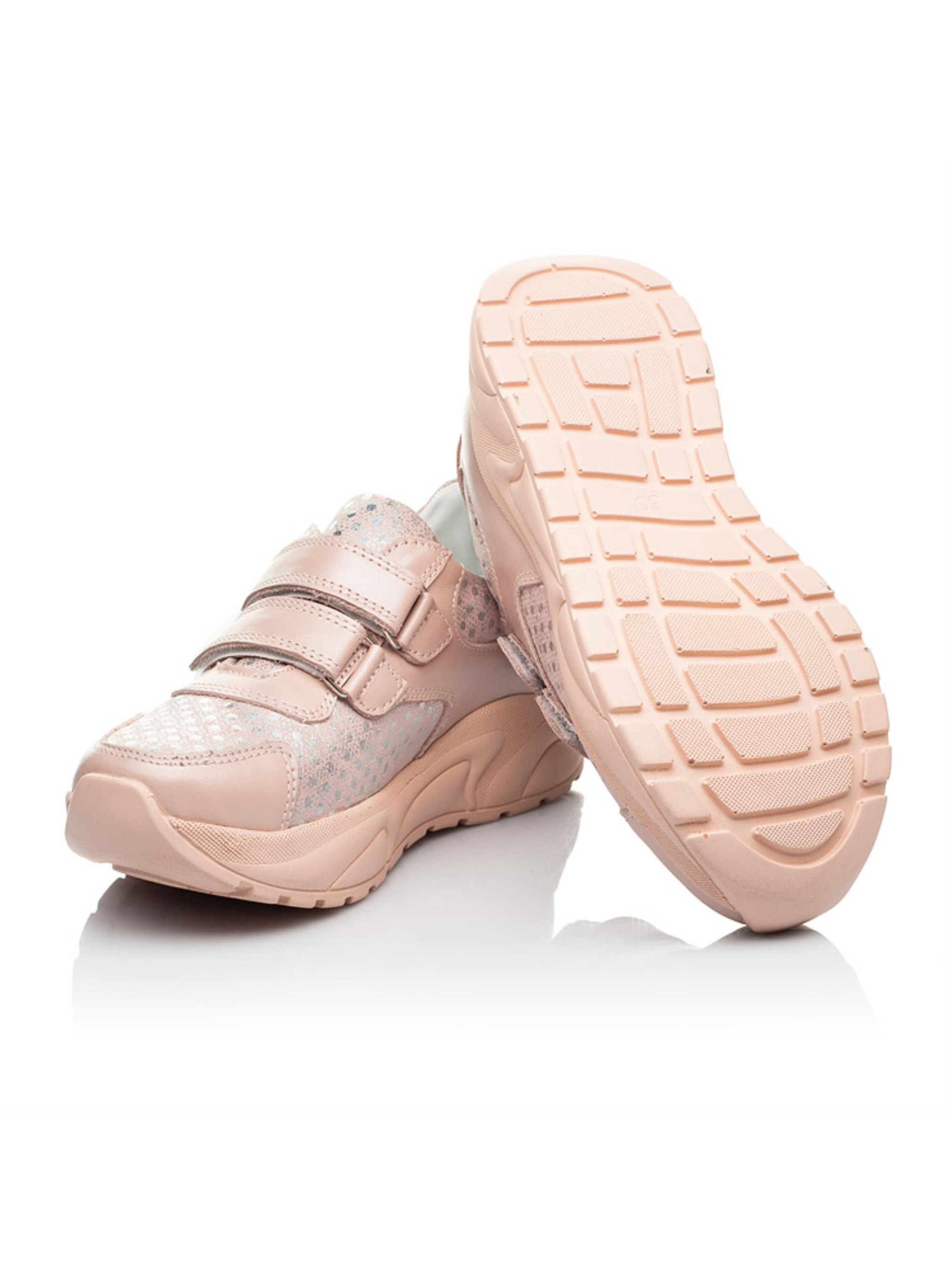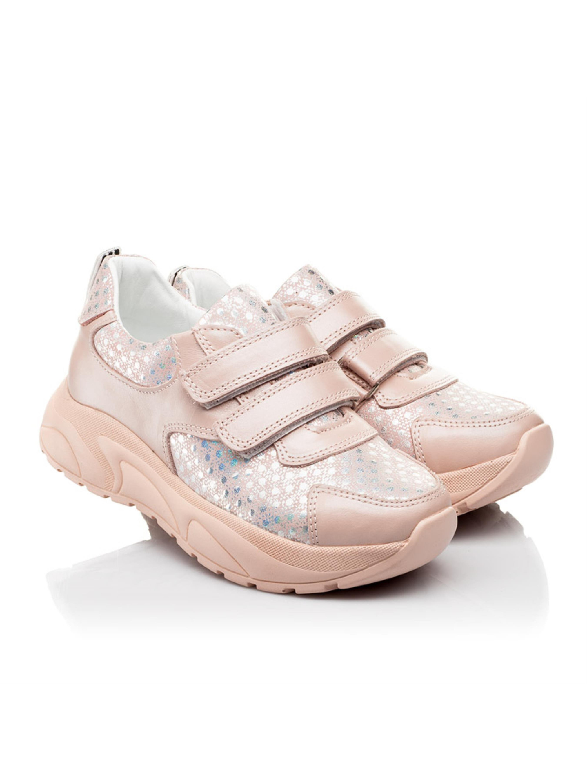 Невероятно стильные пудровые детские кроссовки для девочки созданные из натуральных материалов. Материал верха - комбинация натурального нубука и кожи. Материал подкладки и стельки - натуральная кожа. Впечатляющая пара кроссовок имеет уникальный дизайн с изображением колец серебряного цвета с переливом благодаря применению напыления. Подростковые кроссовки для девочки непременно поразят внешним видом, а главное чрезвычайным комфортом. Кроссовки для девочки имеют анатомически правильную стельку, которая поглощает удары, супинатор и высокую легкую подошву. Способ застегивания - две надежные липучки. Как только Вы прикоснетесь к нежному нубуку поймете, что именно эта пара непременно должна быть в обувном гардеробе.