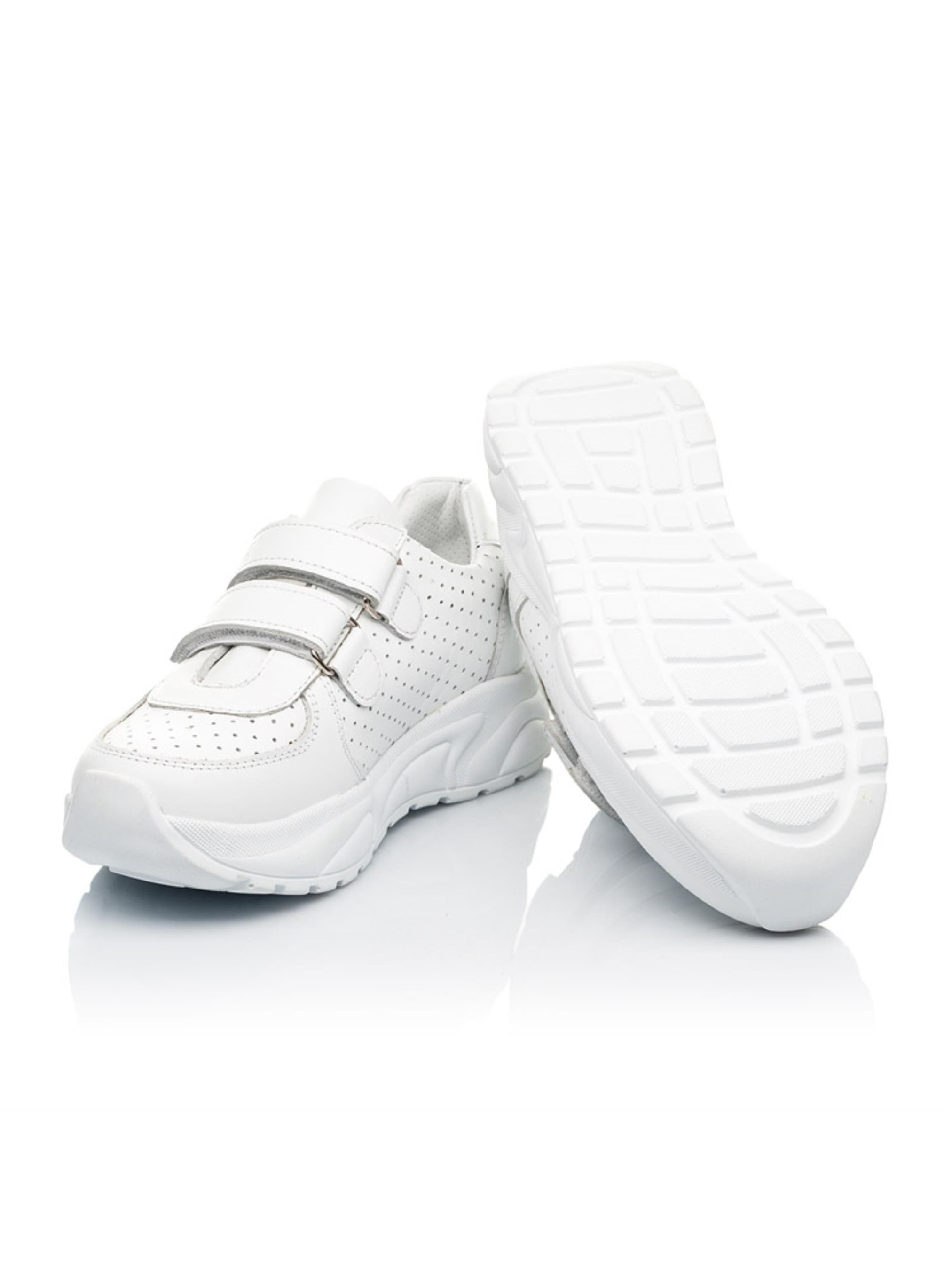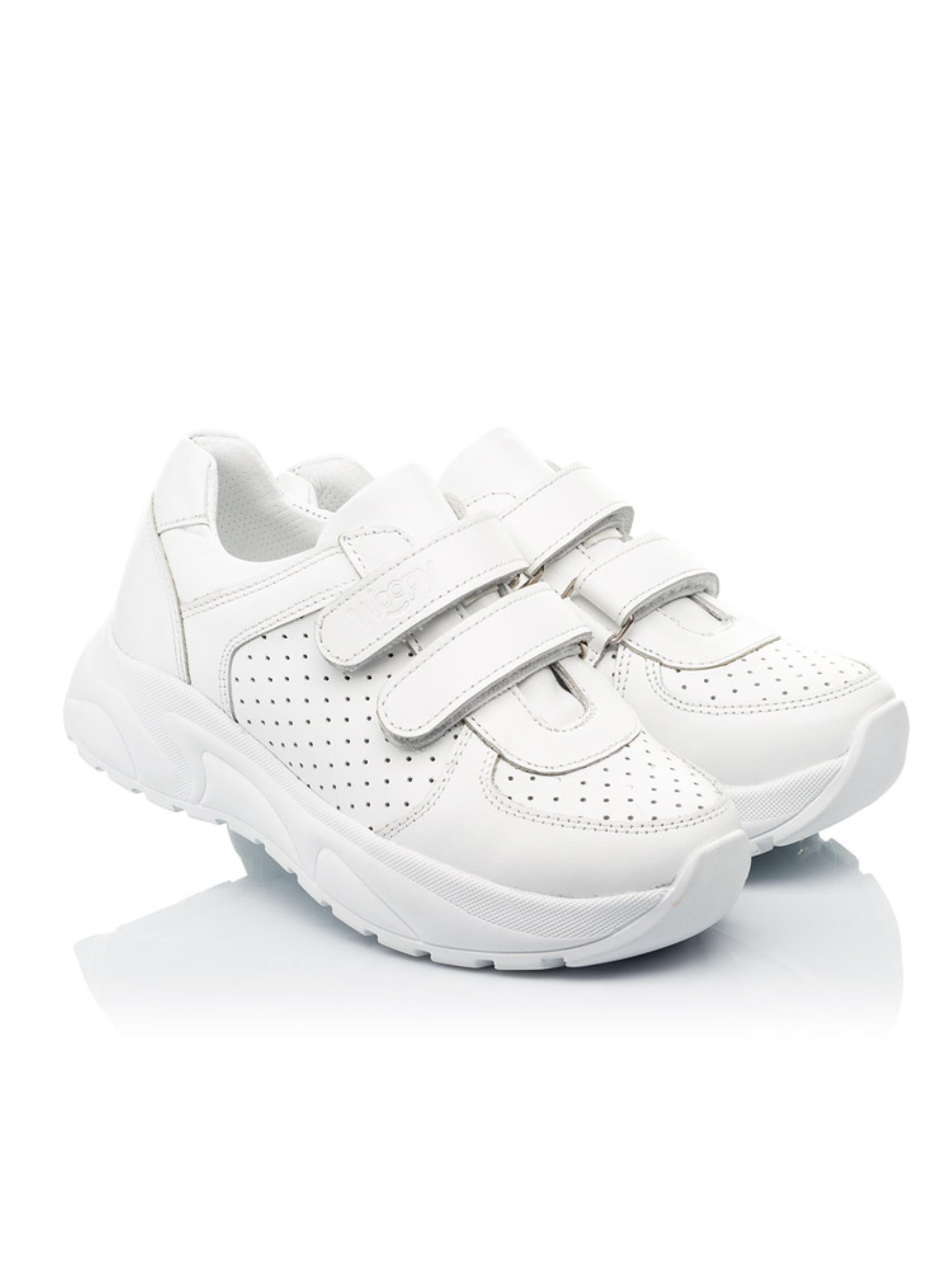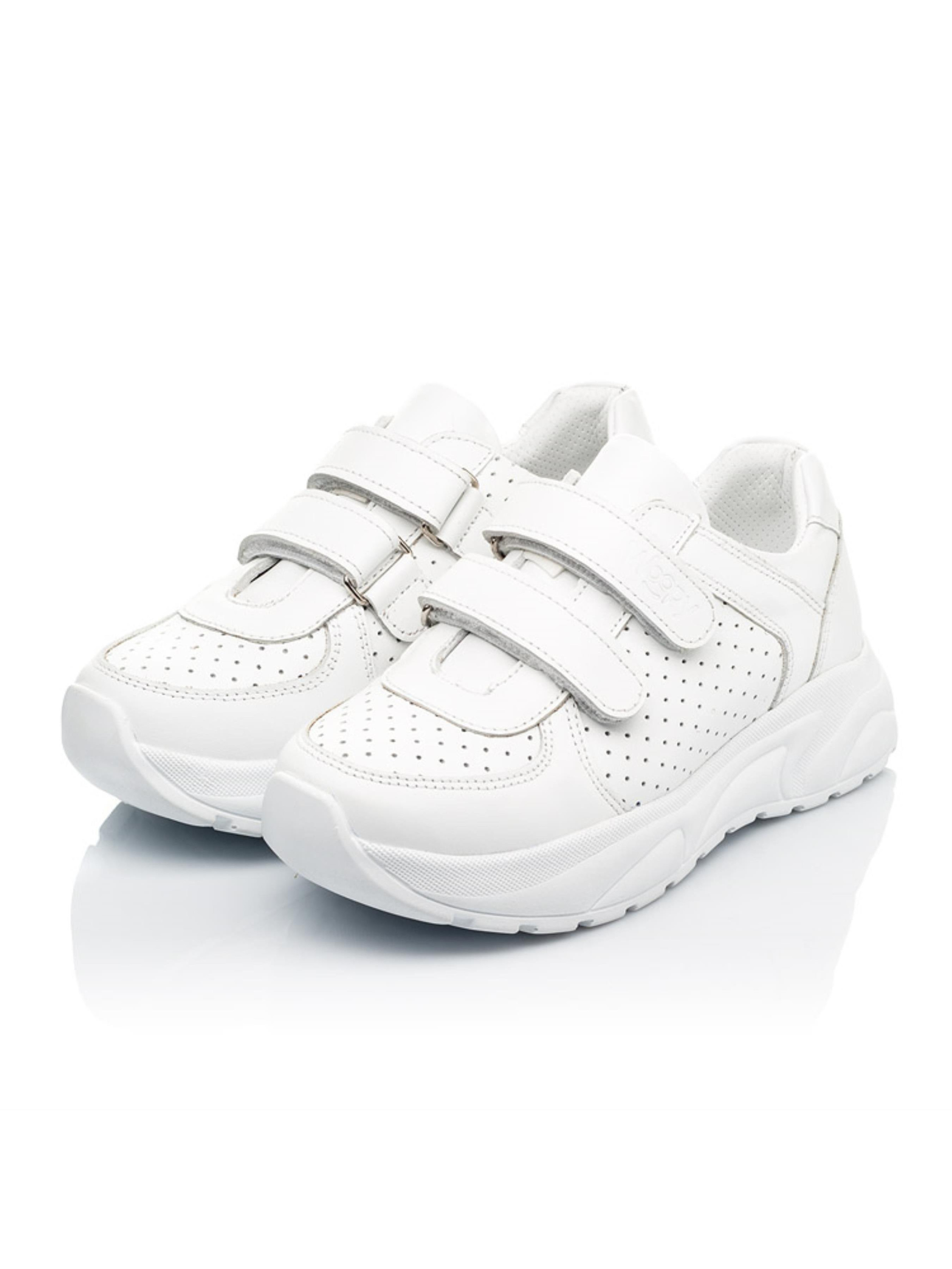 Лаконичная и сдержанная модель кроссовок для девочки поражает качеством исполнения и внешним видом. Детские кроссовки для девочки созданные из натуральной гладкой кожи белого цвета и кожи с перфорацией. Какая модница сможет отказать себе в удовольствии добавить такую пару в обувной гардероб? Материал подкладки и стельки - натуральная кожа. Кроссовки для девочки пошиты с учетом важных ортопедических элементов детской обуви. Жесткий задник, супинатор и анатомическая стелька необходимы для правильного формирования и развития детской стопы. Две надежные липучки-застежки ускорят процесс обувания.