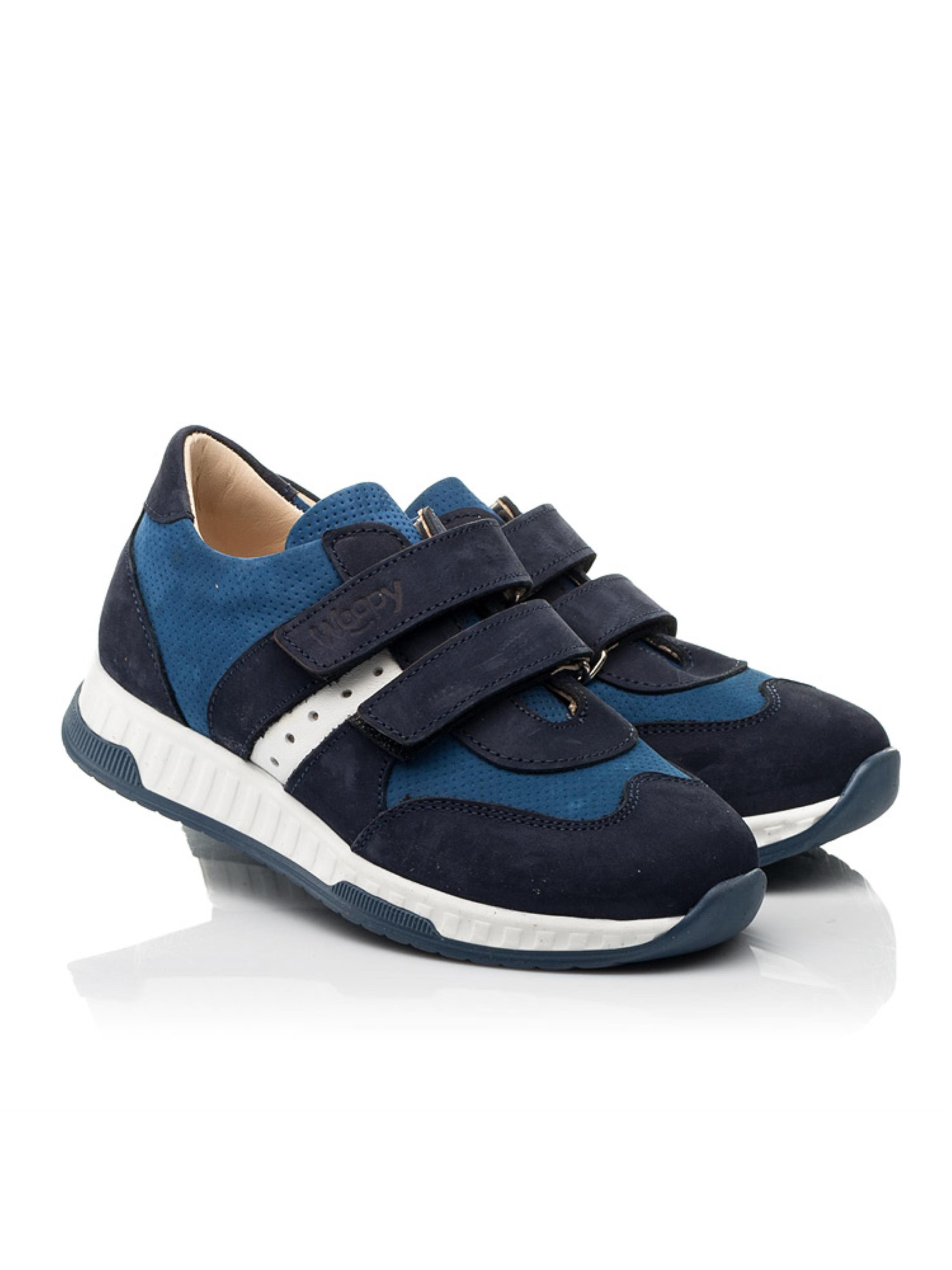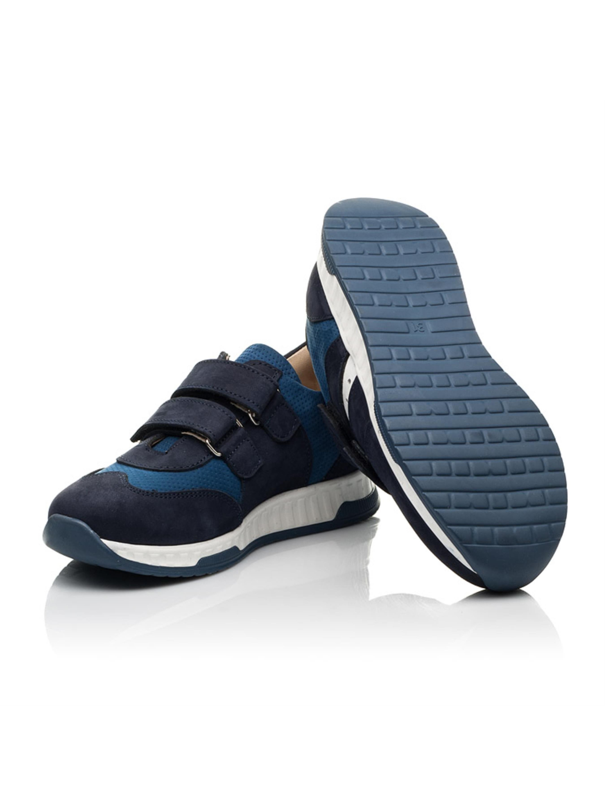 На пике модного Олимпа – грандиозные детские кроссовки для мальчика созданные из натурального нубука синего цвета двух невероятных оттенков. Фактурным дополнением модели выступает применение перфорации в верхних слоях нубука. Контрастная вставка из натуральной кожи белого цвета стильно дополняет дизайн модели. Детские кроссовки для мальчика имеют гибкую и легкую подошву, жесткий задник, супинатор и анатомически правильную стельку. В качестве застежки в кроссовках используются две надежные липучки, которые позволят отрегулировать полноту ножки и значительно облегчат обувание. Такая модель кроссовок, без сомнения, будет пользоваться спросом среди ценителей комфорта.