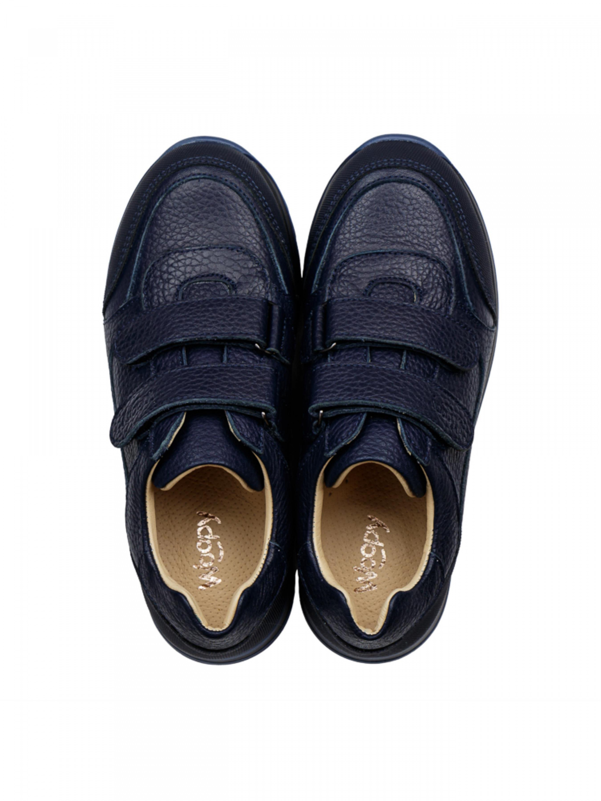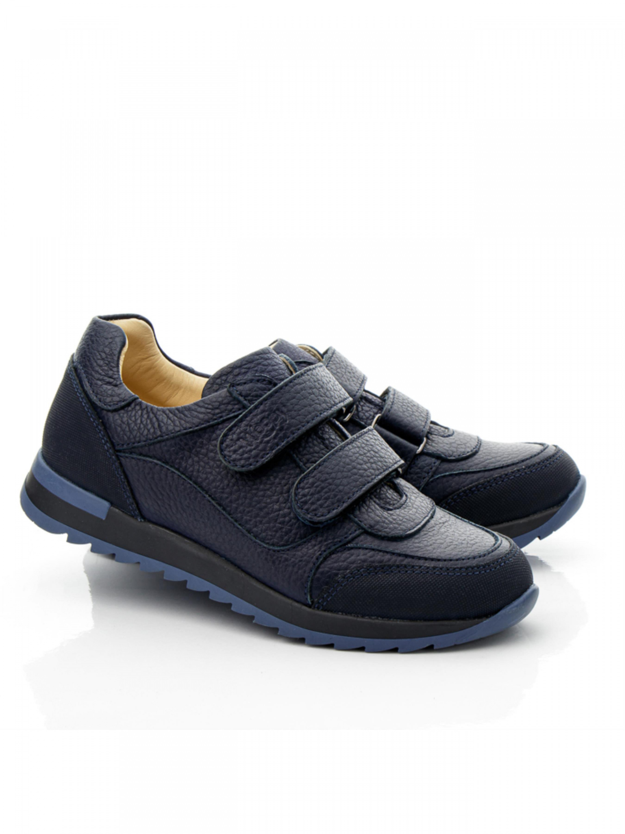 При создании модели обуви мы стремимся учитывать модные тенденции и важные элементы детской обуви, и, конечно, создаем пары из натуральных материалов. Такая модель кроссовок является доказательством мастерства бренда Woopy. Детские кроссовки для мальчика популярного уже несколько лет подряд дизайна мы решили сшить из натуральной гладкой кожи красивого синего цвета. Материал подкладки и стельки – натуральная гладкая кожа. Модель пошита без лишних деталей, сдержанная, лаконичная. Носочек и пятка украшены вставкой из современного искусственного материала "неубивайкой", который защитит обувь от повреждений. Комфорт детским стопам обеспечит гибкая, не скользящая подошва, жесткий задник, анатомически правильная стелька с подушечкой под свод стопы. Способ застегивания – надежные липучки.