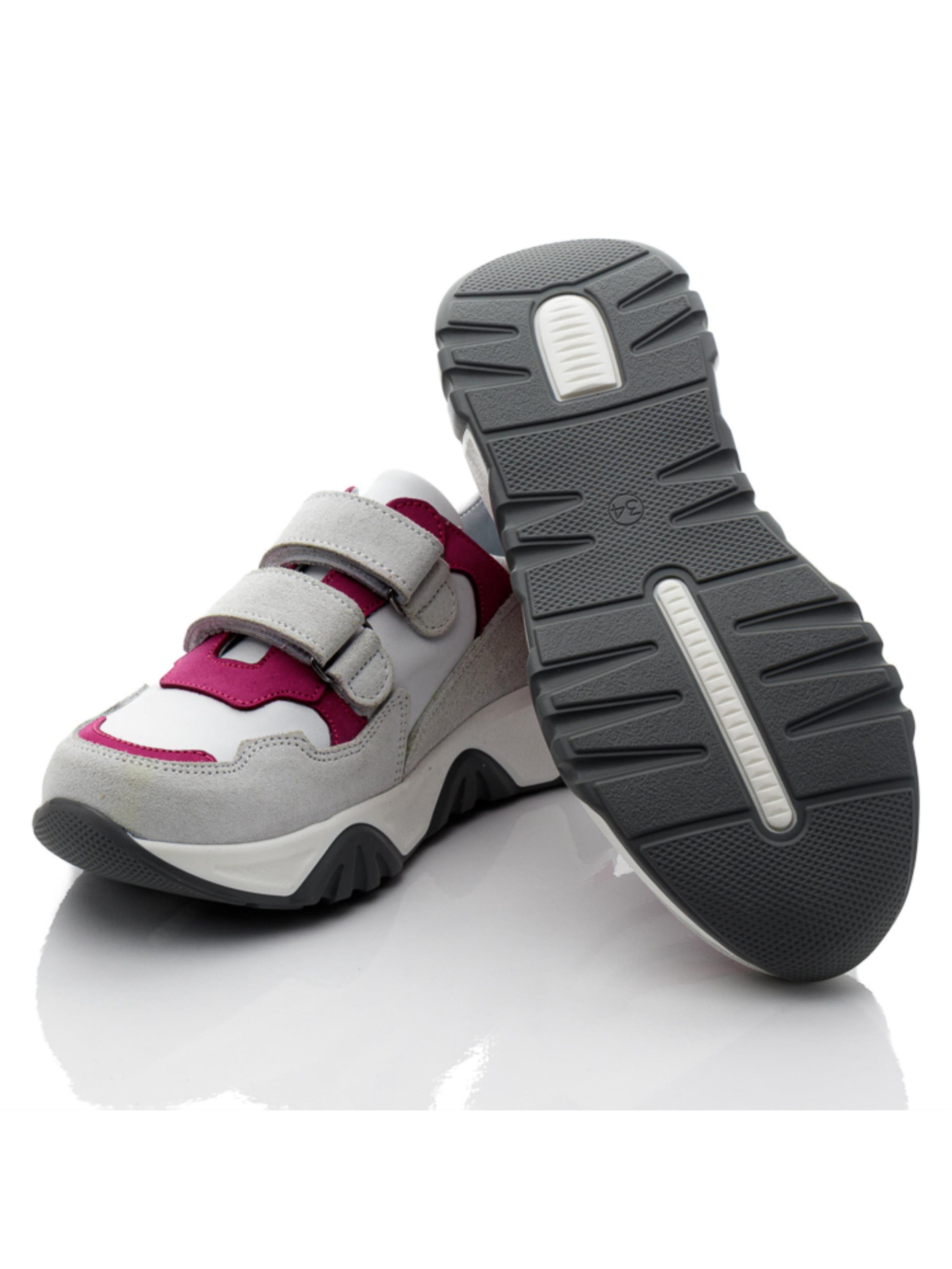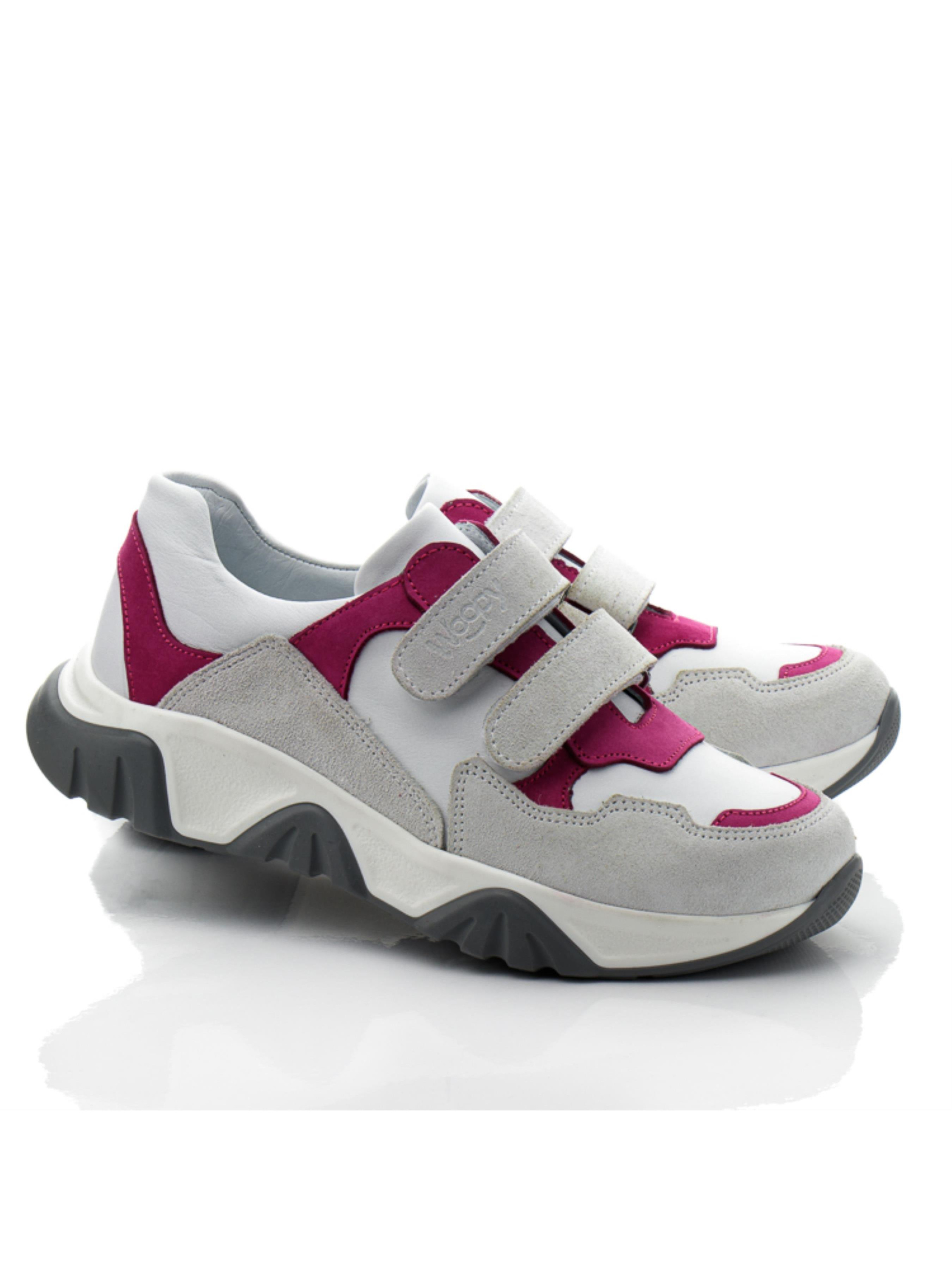 Вы еще в поисках стильной и качественной пары кроссовок для своей девочки? Предлагаем Вам обратить внимание на такую невероятную модель, которая поражает качеством и гарантирует комфорт детским ножкам. Стильные детские кроссовки для девочки пошиты на основе интересного сочетания натуральной кожи белого цвета и натуральная замша серого, малинового цвета нубук. Материал подкладки – натуральная высококачественная кожа. Подошва отлита из качественной резины, не скользкая, трендовая, рифленая. Способ застегивания – две надежные липучки. Для максимального комфорта детских ножек кроссовки имеют анатомическую стельку, поглощающую удары, супинатор и твердый задник.