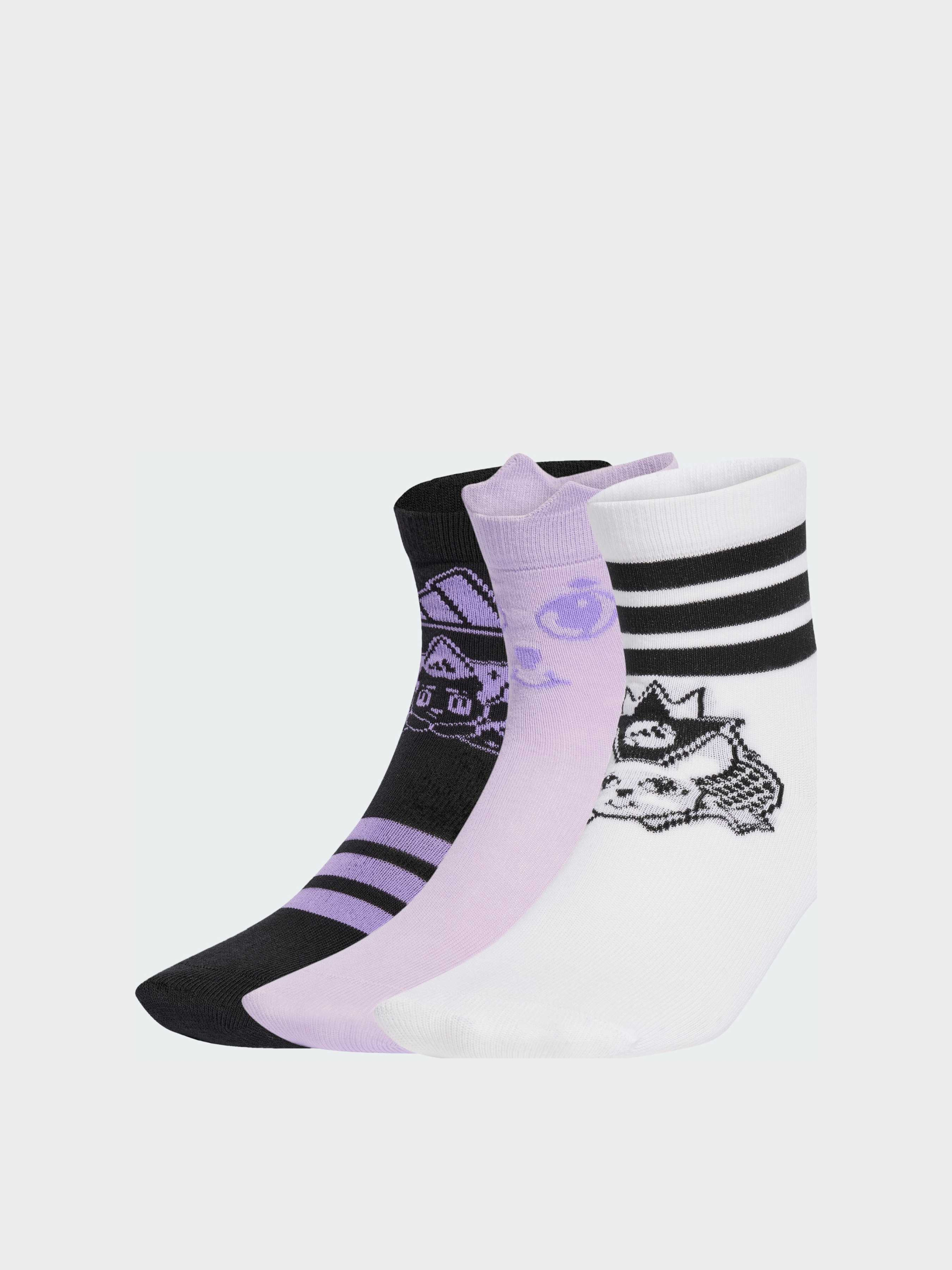 Характеристики 66% хлопок, 30% переработанный полиэстер, 4% эластан Классическая длина до середины икры Три пары в упаковке Описание Добавь ярких красок и веселья в гардероб своего ребенка с детскими носками adidas. Удобная длина до середины икры и забавные разноцветные принты делают их идеальными для любого дня. С этим набором из трех пар ребенок всегда будет готов к новым открытиям.