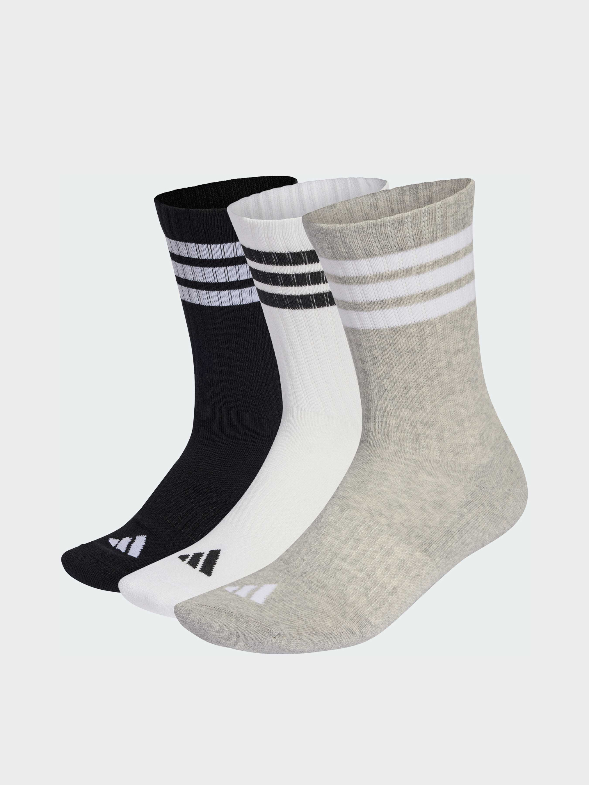 Характеристики 59% хлопок, 37% полиэстер, 3% эластан, 1% переработанный PA6 Амортизирующая модель Классическая длина до середины икры Поддержка свода стопы Три пары в упаковке Описание Позаботься о своих ногах - и они позаботятся о тебе. Эти носки adidas Sportswear Cushioned созданы для мягкого комфорта на каждом шаге. Амортизирующая вставка снижает нагрузку и делает любое движение приятным. Классическая длина и анатомичная поддержка свода стопы обеспечивают надежную посадку и комфорт в течение всего дня. Фирменные три полоски и логотип 3 Bar подчеркивают спортивный стиль adidas. В комплекте три пары - чтобы комфорт сопровождал тебя каждый день.
