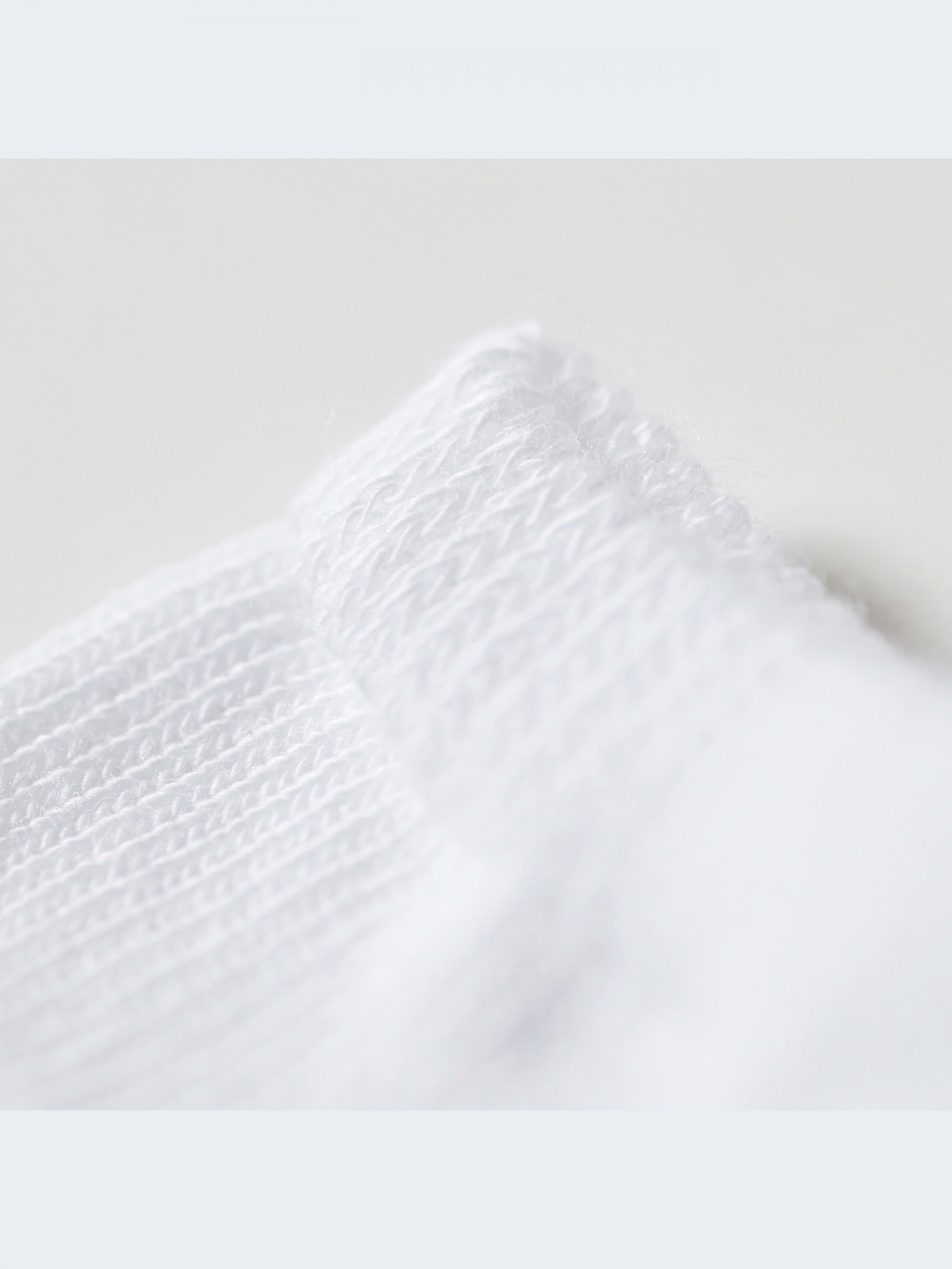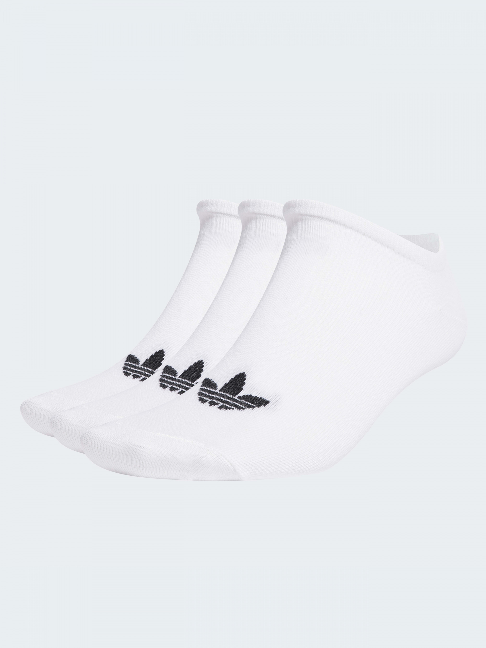 Классические белые носки из эластичного хлопкового трикотажа. Благодаря низкому дизайну полностью закрывается обувью. Модель украшена крупным Трилистником на мыске. Три пары в упаковке.