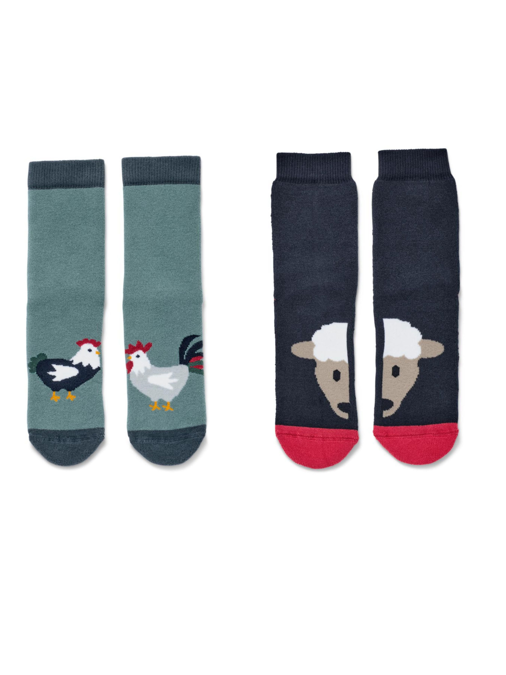 Набор теплых носков, 2 пары. Подошва с противоскользящими выступами. Мягкий махровый интерьер. 2 разных дизайна. Удобные манжеты – без сужений. С эластаном: сохраняет форму, идеальная посадка, высокий комфорт при ношении. Сертифицирован GOTS. Эти носки защищают водные ресурсы. Проверено содержание вредных веществ – посторонними аккредитованными институтами. Состав: 90% хлопок (органический), 9% полиамид (переработанный), 1% эластан (LYCRA®).