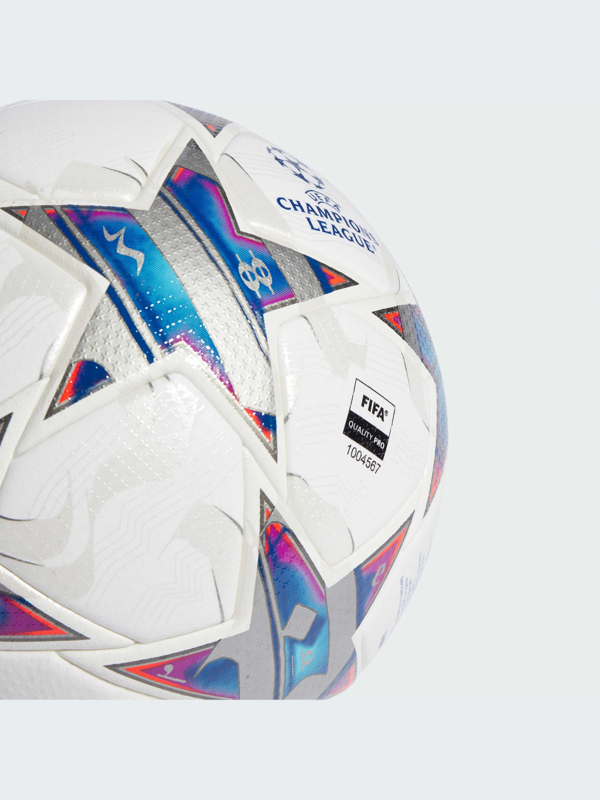 Благодаря музыкальной композиции, от которой мурашки бегут по коже как у игроков, так и у болельщиков, гимн Лиги чемпионов УЕФА вошел в историю футбола, как сигнал о том, что вот-вот начнется столкновение титанов. Когда лучшие игроки европейских футбольных клубов стоят плечом к плечу, слова вдохновляют их, а знаменитый гимн наполняет стадион. Расположенный в центре поля, мяч UCL Pro 23/24 Group Stage Ball оживляет музыку благодаря дизайну, вдохновленному текстом песни. Надпись "Чемпионы", выполненная изящным каллиграфическим шрифтом, расположенная на 12 панелях со звездами. Тонкие музыкальные ноты завершают дизайн мяча, созданного для профессиональной игры и получившего сертификат FIFA Quality Pro.