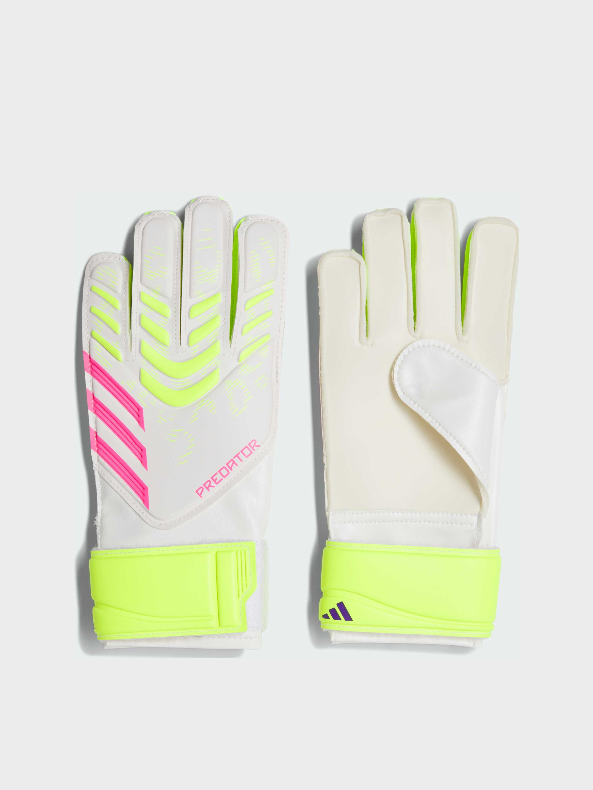 Будь готов к каждому моменту игры с вратарскими перчатками для детей adidas Predator Training. Идеальные для тренировки навыков, они имеют ладонь из мягкого латекса Soft Grip, гибкую тыльную сторону и просторный крой пальцев, что помогает сохранять концентрацию при каждом сейве. Подтяни фиксирующий ремешок на запястье, чтобы найти оптимальное сочетание стабильности и комфорта.