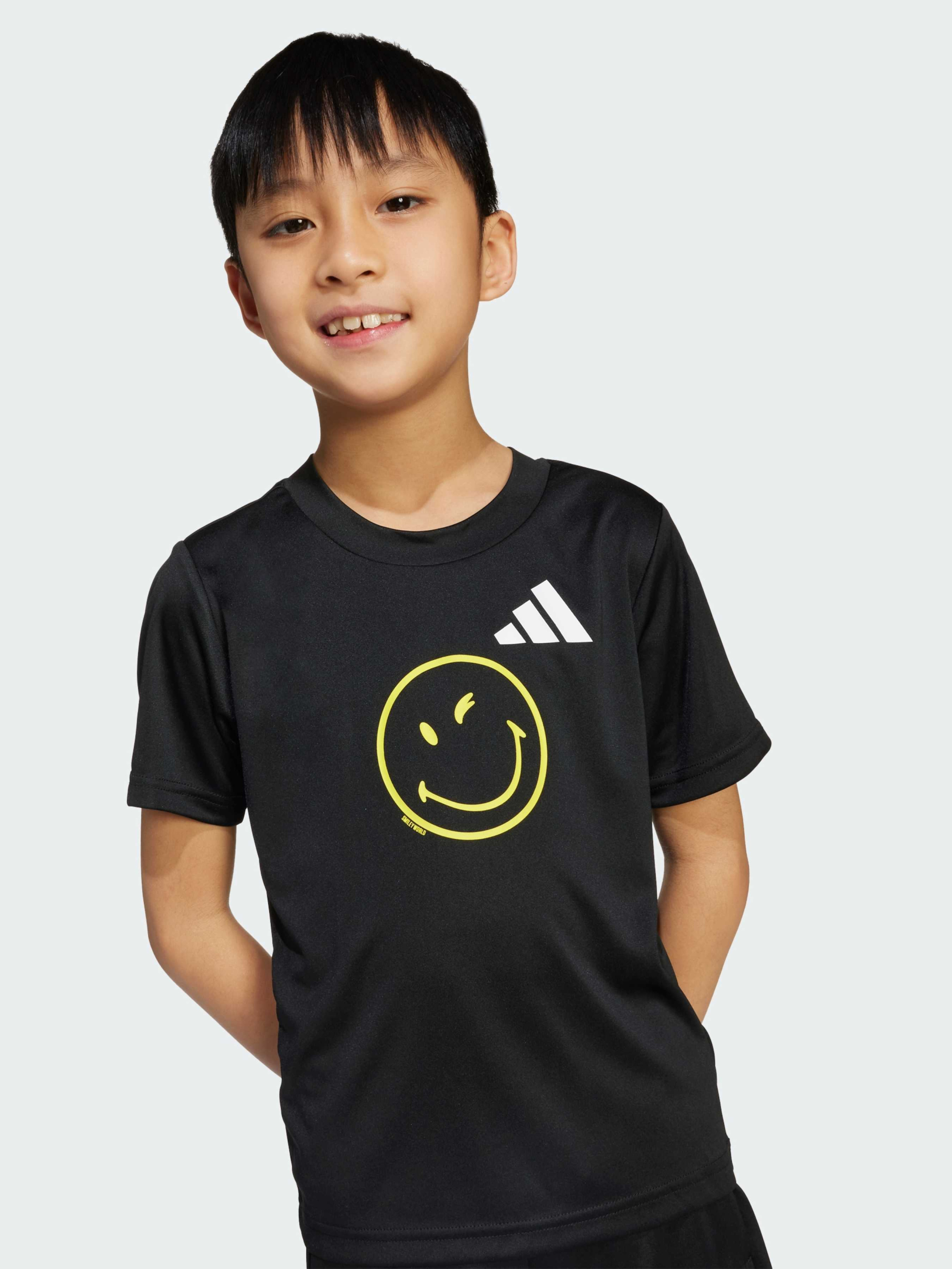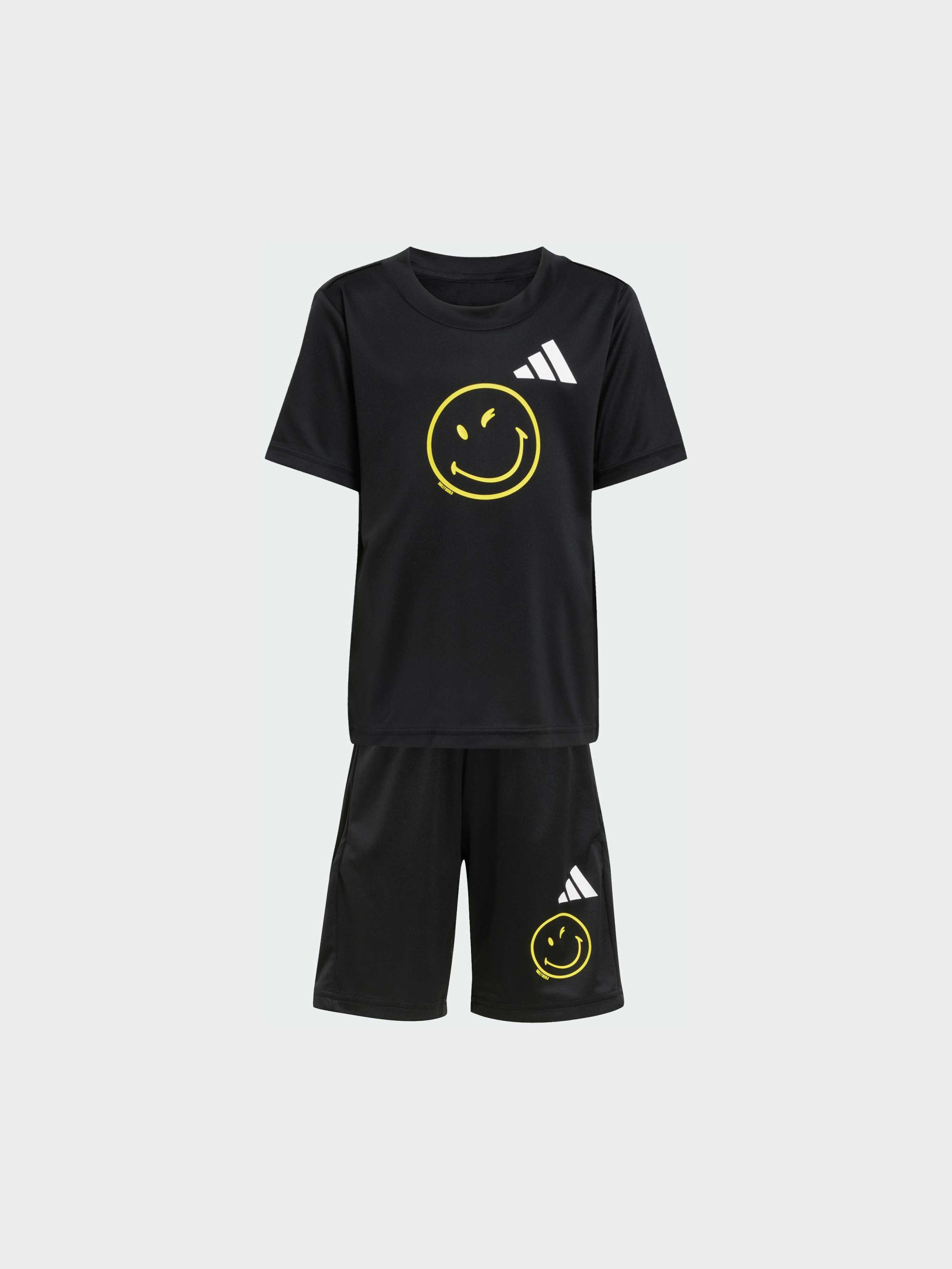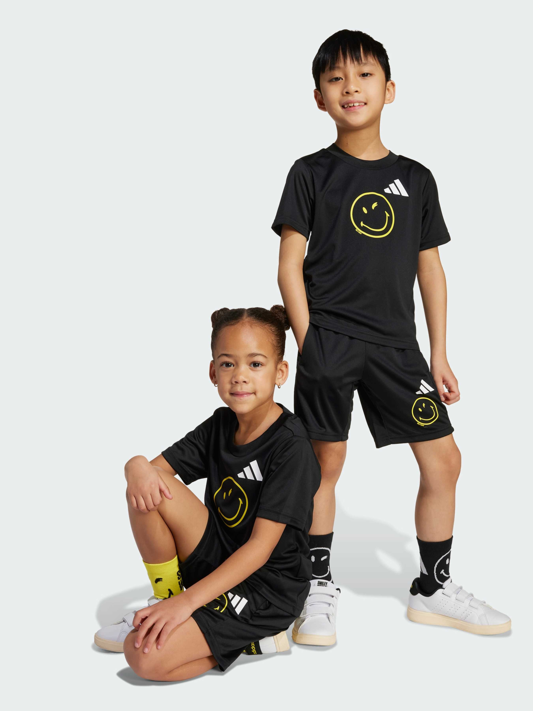 Характеристики 100% переработанный полиэстер CLIMACOOL Круглый вырез горловины Стандартный крой Описание Создавай атмосферу позитива с этим ярким тренировочным комплектом от adidas. Футболка и шорты в сотрудничестве со Smiley сочетают спортивные три полоски и культовый смайлик. Светоотражающие элементы помогут выделиться, а технология CLIMACOOL отводит и рассеивает пот, обеспечивая прохладу, сухость и отсутствие отвлекающих факторов. CLIMACOOL эффективно управляет потом, обеспечивая ощущение свежести благодаря быстросохнущим волокнам, которые дарят телу легкость и комфорт.