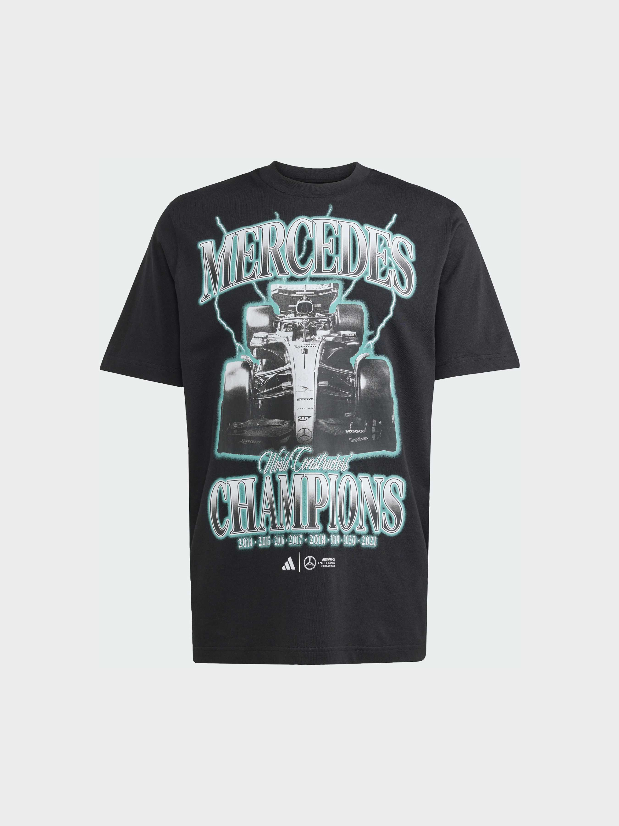 Характеристики 100% хлопок Графика Mercedes на груди Круглый вырез горловины Логотипы Mercedes - AMG Petronas Formula One Team Стандартный крой Описание Вырази свою страсть к adidas Motorsport в стильной футболке Mercedes-AMG Petronas Formula One. Спущенная линия плеча создает слегка расслабленный силуэт, а мягкая хлопковая ткань обеспечивает комфорт в течении дня - будь то просмотр гонки или повседневные дела. Вырази поддержку команде с помощью культового логотипа на груди и крупной графики Mercedes.