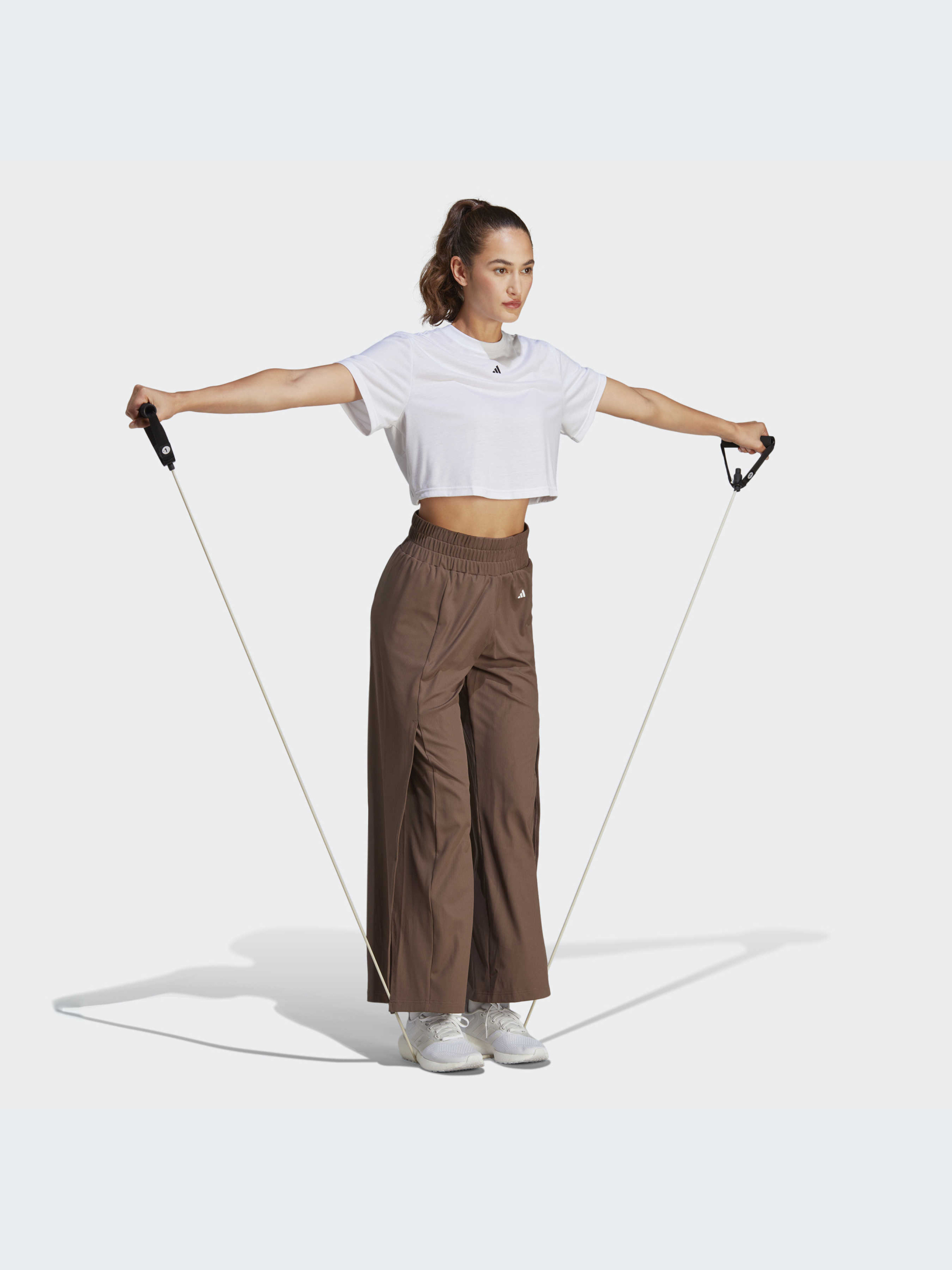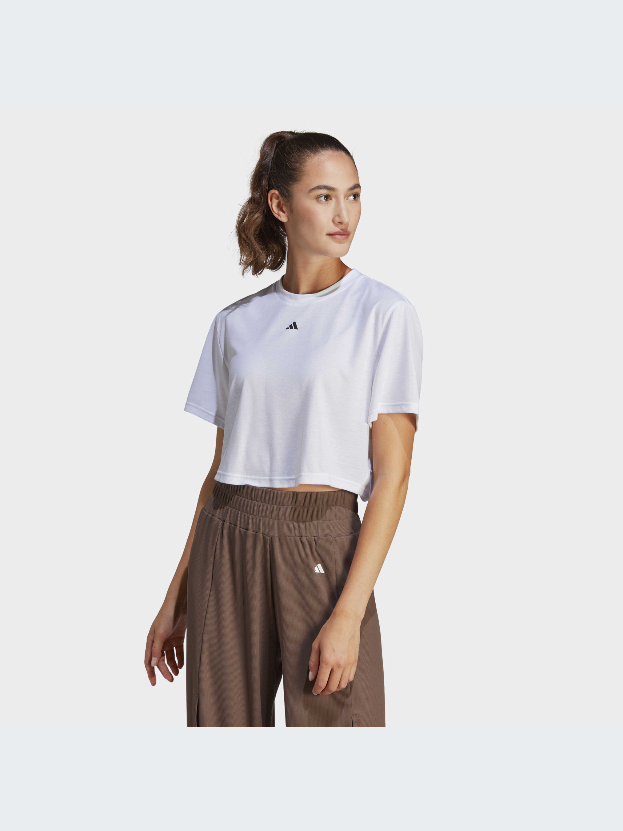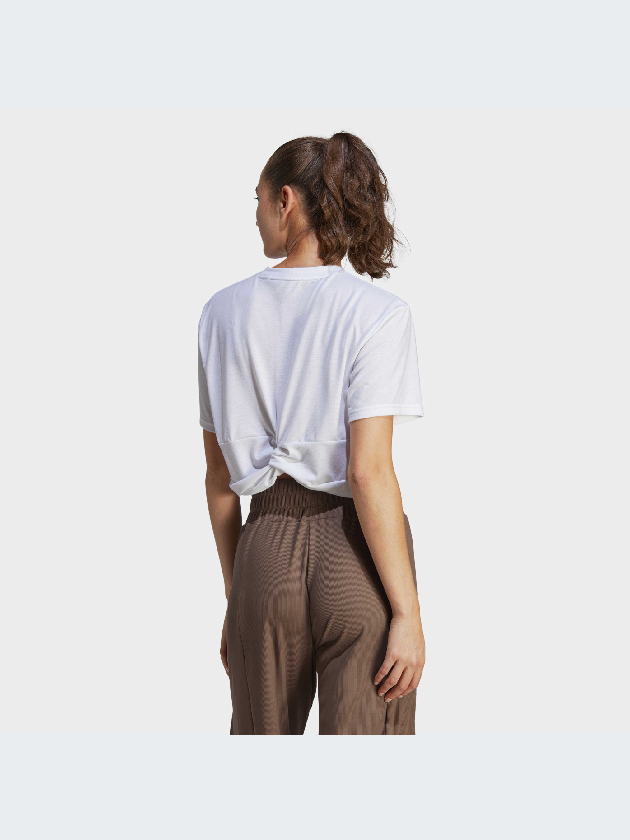Зайди в студию, и остаток дня улетучится. Проникнись моментом в этой тренировочной футболке adidas с узлом на спине. Мягкая ткань и свободный крой дают тебе свободу танцевать, растягиваться и вращаться. Добавь к этому влагопоглощающую AEROREADY, и ты абсолютно защищена, когда интенсивность тренировки станет на ступеньку выше.Этот продукт содержит не менее 70% переработанных материалов и является лишь одним из наших решений по борьбе с пластиковыми отходами.